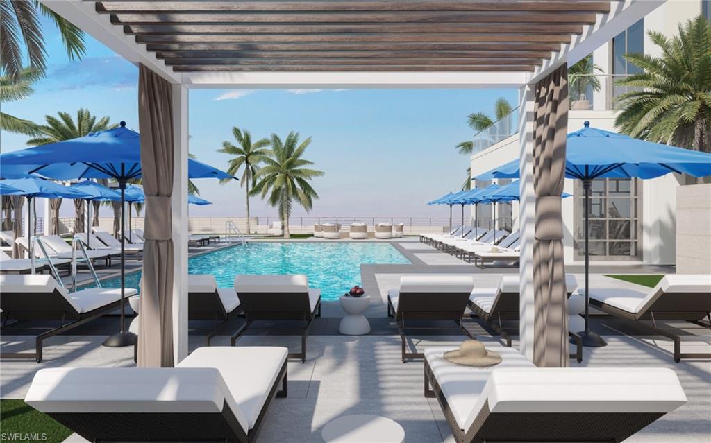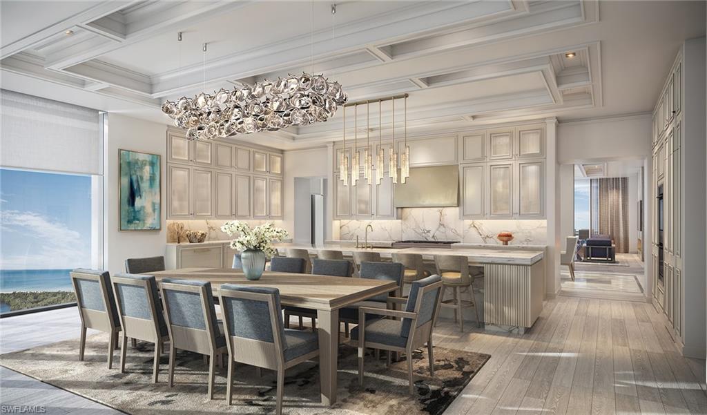 NEW CONSTRUCTION | EPIQUE – PELICAN BAY Introducing Epique, a boutique luxury tower rising 19 stories and offering only 68 expansive residences, designed for those who value exquisite architecture, elevated design, and cutting-edge technology. This stunning Penthouse showcases 12-foot ceilings, 6 bedrooms plus an office, a private theater, exercise room, and an impressive 589 sq. ft. outdoor terrace. Included is an extraordinary 2,300+ sq. ft. private rooftop retreat featuring a private pool and spa, outdoor kitchen, and a vestibule with full bath—creating the ultimate indoor/outdoor lifestyle. Floor-to-ceiling glass walls frame breathtaking panoramic views, while the gourmet kitchen is outfitted with Wolf cooktops with natural gas and Sub-Zero appliances. This residence also includes two private 3-car garages, a rare and exceptional offering in high-rise living. Located in prestigious Pelican Bay, Epique is poised to be the final iconic tower to be completed in the community—truly unlike any other high-rise in Naples and the embodiment of relaxed luxury. Ideally positioned near the beach tram station, residents can enjoy a quick shuttle to the private beach clubs or take a scenic nature walk just minutes away. Epique is a state-of-the-art building offering concierge services, 24-hour staff, a private Dining Club, and an elegant outdoor lounge. Additional amenities include a fully equipped fitness center with Peloton bikes, steam room, sauna, and cold plunge, as well as a beautifully appointed gaming lounge, theater room, conference room, and more. All photos are renderings and do not represent the current standing of the property.