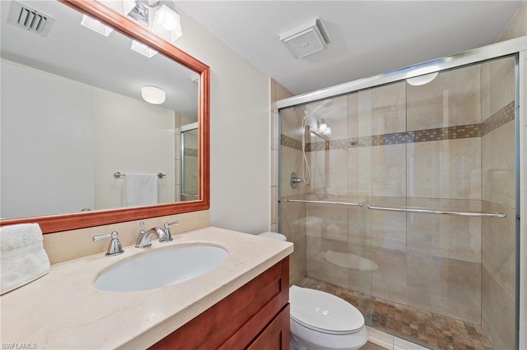 Beautiful 2-bedroom, 2-bath Santa Ana Villa ideally located off the main boulevard in a quiet, private setting with convenient access to Pool #7 — close enough to enjoy, yet perfectly positioned for peace and privacy. Enjoy relaxing views of the landscaped common area from the glass and screened lanai. The home features tile flooring throughout, a new kitchen, brand-new refrigerator, new 40-gallon hot water heater, and a brand-new AC system (2025), offering comfort and efficiency for years to come. Residents enjoy all the outstanding amenities of The Glades Golf & Country Club, including golf, pickleball, tennis, bocce, shuffleboard, multiple pools, clubhouse activities, and the popular 19th Hole restaurant. All this just 10 minutes from downtown Naples’ boutique shopping, fine dining, and the area’s beautiful white sandy beaches.