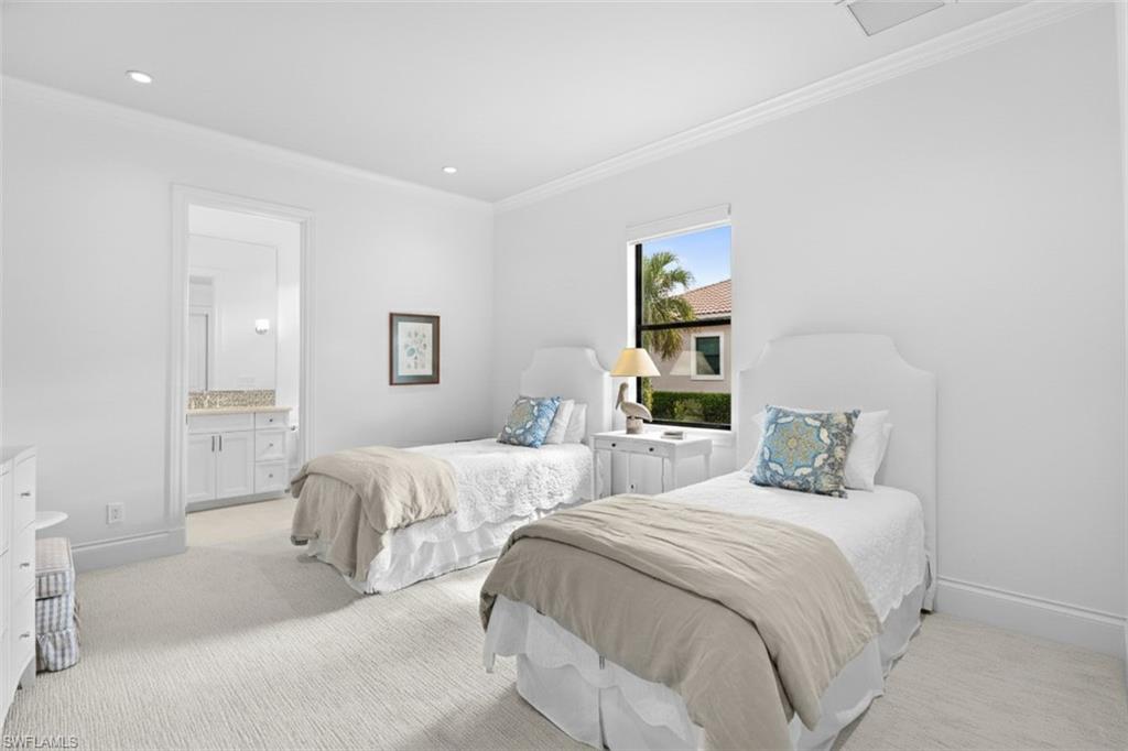 Proudly introducing the Crown Jewel of the world-class Palmira Golf & Country Club, equipped with a very rare IMMEDIATE TRANSFERABLE GOLF MEMBERSHIP. This one-of-one designed Harbourside custom home offers four en-suite bedrooms, two flex and den spaces, and is nestled on one of the most coveted lots within the entire community. The curb appeal of this home is unparalleled, offering a South Beach-like design and a contemporary interior palette with stunning architectural details and abundant natural light. Step outside through your fully pocketing impact glass slider doors and enjoy breathtaking sunsets from your ideal Western exposure overlooking picturesque lake and golf course views through your newly constructed panoramic picture window screen enclosure. Heading back inside, the spacious primary suite features an elegant double door entry with soaring ceilings and French doors leading to your luxurious pool area. Step through another set of double doors into the primary bathroom, which offers dual custom walk-in closets, split vanities with a dedicated makeup area, a contemporary soaking tub, and a spa-caliber walk-in shower with both rainfall and handheld fixtures. The chef’s kitchen is a true showpiece, anchored by a breathtaking imported marble slab, premium Thermador appliances, a handcrafted designer hood, a walk-in pantry, generous storage, and a dining area perfectly framed by the spectacular rear views. In addition, all guest bedrooms feature en-suite bathrooms, and the custom design includes a private VIP suite with a cozy balcony walk-out, perfect for your most cherished guests to enjoy their morning coffee. Framing the front of the home, two beautifully designed split den and flex spaces are positioned on each side of the great room, each capturing picturesque views of the striking driveway and the professionally landscaped front grounds. As a resident of Palmira, you will enjoy access to world-class amenities at the Renaissance Center Club, including a heated lagoon-style swimming pool, a 75-foot Olympic lap pool, and a state-of-the-art fitness center. The community also offers a resident restaurant, a variety of fitness classes, eight lighted tennis courts, five bocce courts, four pickleball courts, and a spacious dog park. A full calendar of social events fosters a vibrant and active lifestyle, while Palmira’s beautifully landscaped grounds, lakes, rolling fairways, and a 27-hole championship golf course set the stage for an exceptional way of life. The list of upgrades is immense, and this home truly must be experienced in person. Schedule your private tour today for an opportunity to secure this incredible property, which is being offered for the first time since its original construction.