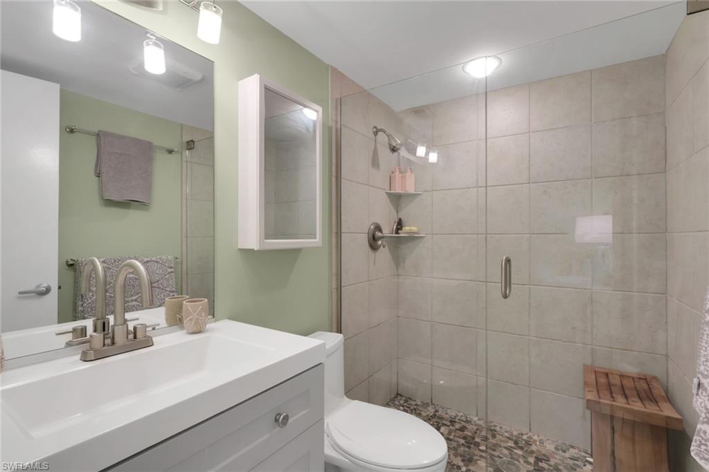 Welcome to easy Florida living in this beautifully maintained, ground-floor 2-bedroom, 2-bath condo in Vista Palms—a friendly 55+ community within the highly desirable Lely Country Club area of Naples. Offered partially furnished and meticulously kept, this spacious 1,126 sq. ft. residence delivers outstanding value in a prime location between downtown Naples and Marco Island. Enjoy peaceful garden views from the expansive 22' x 9' enclosed lanai, adding nearly 200 square feet of flexible living space—perfect for morning coffee, quiet afternoons, or casual entertaining. With ground-floor access, convenience is effortless and stairs are never a concern. Inside, the updated kitchen features stainless steel appliances, granite countertops, and modern cabinetry. Both bathrooms have been tastefully remodeled with contemporary walk-in showers, and each bedroom includes a walk-in closet. A separate laundry room is conveniently located off the lanai. Built in 1977 with solid concrete block construction, the building offers excellent insulation and long-term durability. Residents of Vista Palms enjoy a variety of community amenities, including a heated pool, shuffleboard courts, a social bar area with large grill, and a clubhouse featuring billiards, card rooms, TV lounge, and library. The condo includes assigned covered parking plus ample guest parking. Ideally situated just minutes from Naples’ renowned Gulf beaches, with shopping, dining, and championship golf nearby, this condo is perfectly suited for a full-time residence, seasonal retreat, or investment opportunity. Opportunities like this in such a sought-after location are rare—don’t miss your chance to make this Naples gem your own!