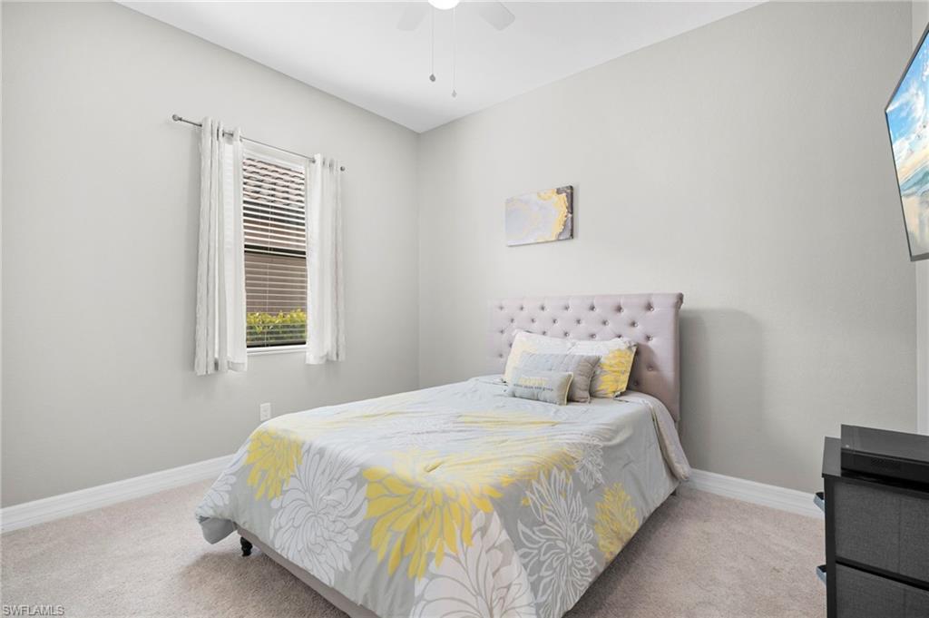 Set against tranquil lake views in highly sought-after Bonita National Golf & Country Club, this beautifully designed and turnkey furnished Stanford floor plan delivers timeless design paired with a smart, highly livable layout. The 4-bedroom, 3-bath home with a 3-car garage offers an open-concept layout ideal for entertaining, complemented by a thoughtfully designed floor plan that delivers both connection and privacy. Features include 20” diagonal tile flooring, granite countertops, hazelnut cabinetry, a timeless kitchen aesthetic, spacious eat-in kitchen, crown molding in the living areas and primary suite, and hurricane-impact windows throughout. One guest bedroom with its own en-suite bath is tucked away in a private corner of the home—separate from the other bedrooms—creating an ideal retreat for guests, extended family, or a quiet home office suite. The primary suite serves as a peaceful escape with a well-appointed bath and generous closet space. Outdoor living takes center stage on the screened lanai, featuring a pool and spillover spa, summer kitchen, and panoramic lake views. Enjoy Florida’s year-round sunshine from your pool deck, host gatherings around the grill, or simply unwind while overlooking the water. Resort-style amenities include championship golf, an aqua driving range, putting green, Har-Tru lighted tennis courts, a full fitness center and spa, and a spectacular lagoon-style pool with waterfall, cabanas, and poolside bar & grill, all anchored by the Grand Clubhouse. Located minutes from the Gulf beaches and top-tier shopping and dining, this turnkey furnished home is truly move-in ready, offering an effortless entry into a lifestyle defined by privacy, luxury, and year-round resort living.