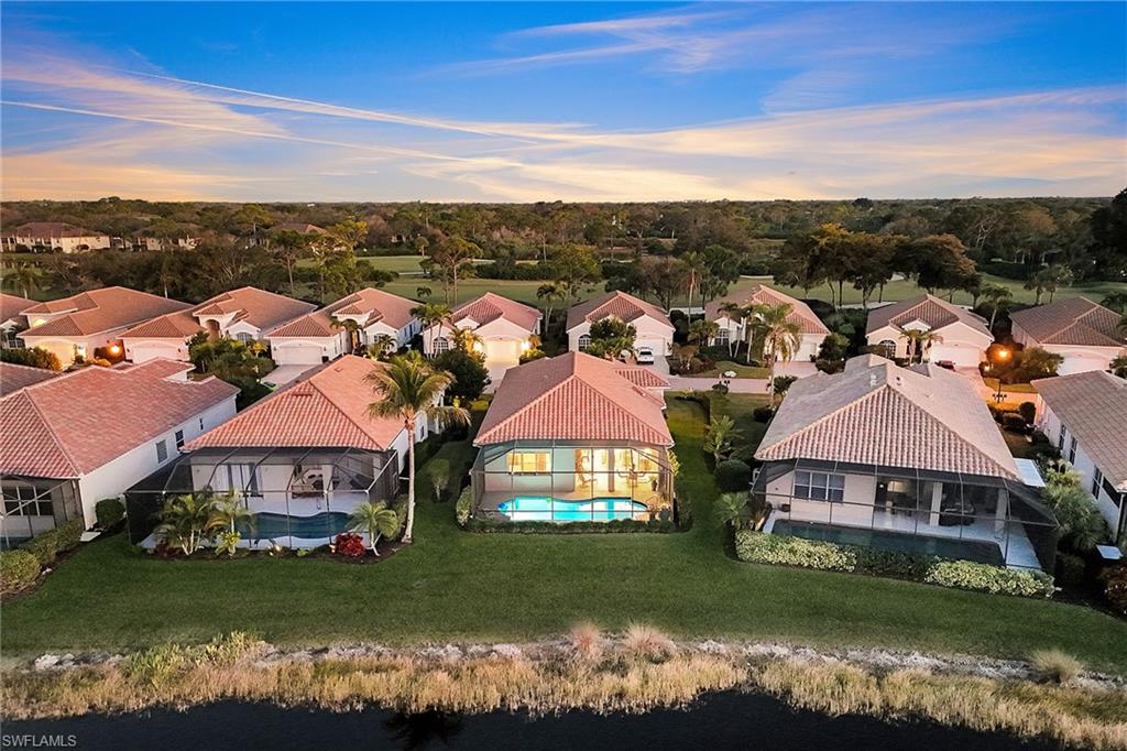 Full lake views create a serene and ever-changing backdrop in this beautifully updated residence in the Capri neighborhood of Pelican Landing. Sunlight reflects across the water throughout the day, while tranquil morning views and colorful evening skies can be enjoyed from the comfort of home. You can take in the expansive lake views from multiple areas of the residence, including the living room, breakfast area and primary bedroom, creating a seamless connection between the interior spaces and the natural setting beyond. The open floor plan was established during a comprehensive renovation in 2017, when the kitchen, baths and flooring were fully remodeled, plantation shutters were added and two interior walls were removed to enhance flow and natural light. The reimagined design offers an inviting environment for gathering or enjoying quiet moments overlooking the water. Notable improvements have continued over time, including a new roof in 2018, a new pool heater in 2020, a new air conditioning system in 2023, and a full re-piping of all water lines along with new bedroom flooring in 2024. A complete list of improvements is available upon request. Residents of Pelican Landing enjoy a gated community lifestyle with access to a private beach park, tennis and pickleball facilities, a fitness center, community center and opportunities for kayaking along Spring Creek. Scenic preserves, recreational paths and thoughtfully maintained grounds contribute to the community’s established coastal character.