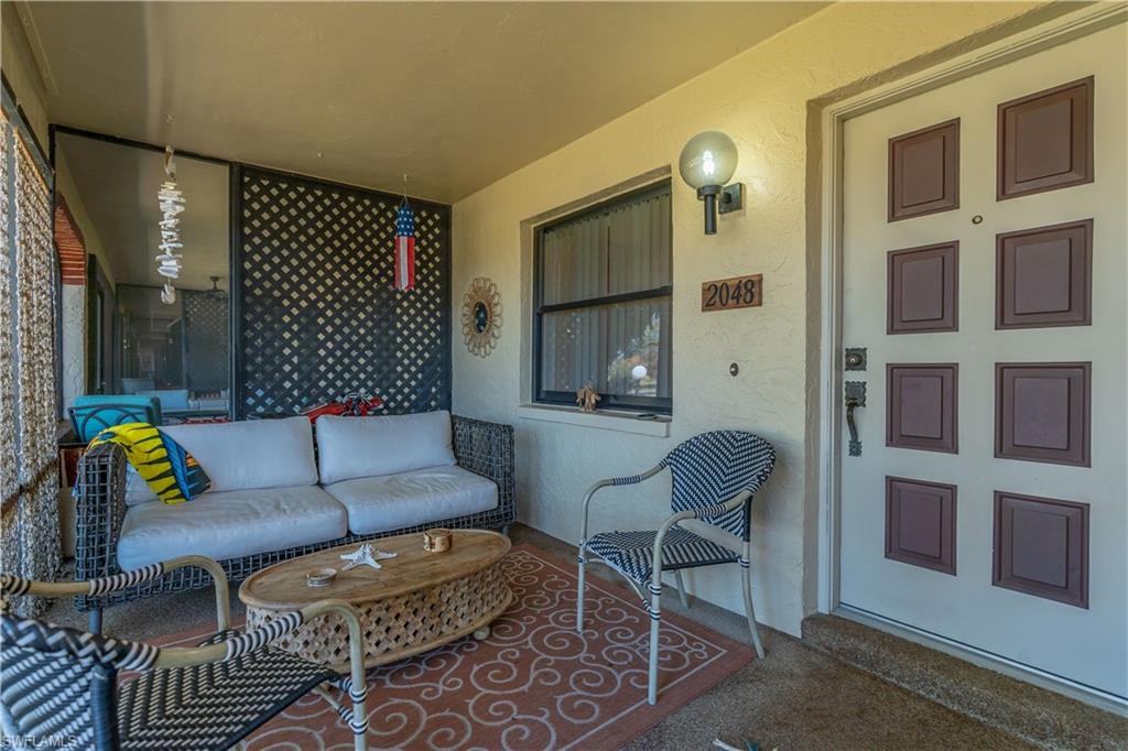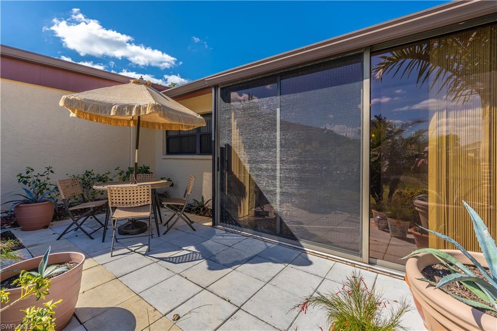 Well-located 2-bedroom, 2-bath end-unit villa-style condo in Boca Ciega Manor, a quiet enclave within the established Lakewood neighborhood of Naples. This 983-sq-ft residence offers a functional, airy layout highlighted by cathedral ceilings, abundant natural light, tile and carpeted floorings, with screened front and back lanais plus an extended rear patio, providing multiple outdoor living spaces. The well-kept end unit features an attached carport with a private storage unit. The outdoor back patio with extended pavers allows the condo owner the rare opportunity to have a grill outside the backdoor of their own unit. Front and back screened lanais offer the epitome of seasonal Florida living - just open the front and back doors and let the cross breeze roll through! Boca Ciega Manor is a low-density, 90-unit community featuring a spacious resort-style pool, spa, and sauna, all set amid mature landscaping. Residents enjoy affordable condo fees that include cable, insurance, trash pickup, and exterior maintenance. Ideally situated just minutes from downtown Naples, 5th Avenue South, and Naples’ renowned white-sand beaches, with quick access to shopping, dining, and everyday essentials. Nearby Sugden Regional Park offers rowing, walking paths, and outdoor recreation, while the broader Lakewood community is known for its sidewalks, mature trees, and optional country club amenities. A prime opportunity for seasonal residents, investors, or buyers seeking a ground floor Naples condo in a central, highly convenient location with strong upside potential.