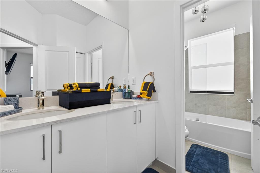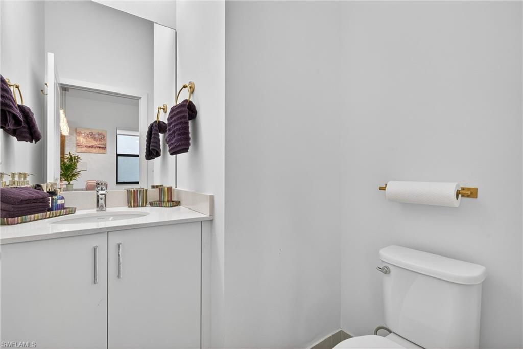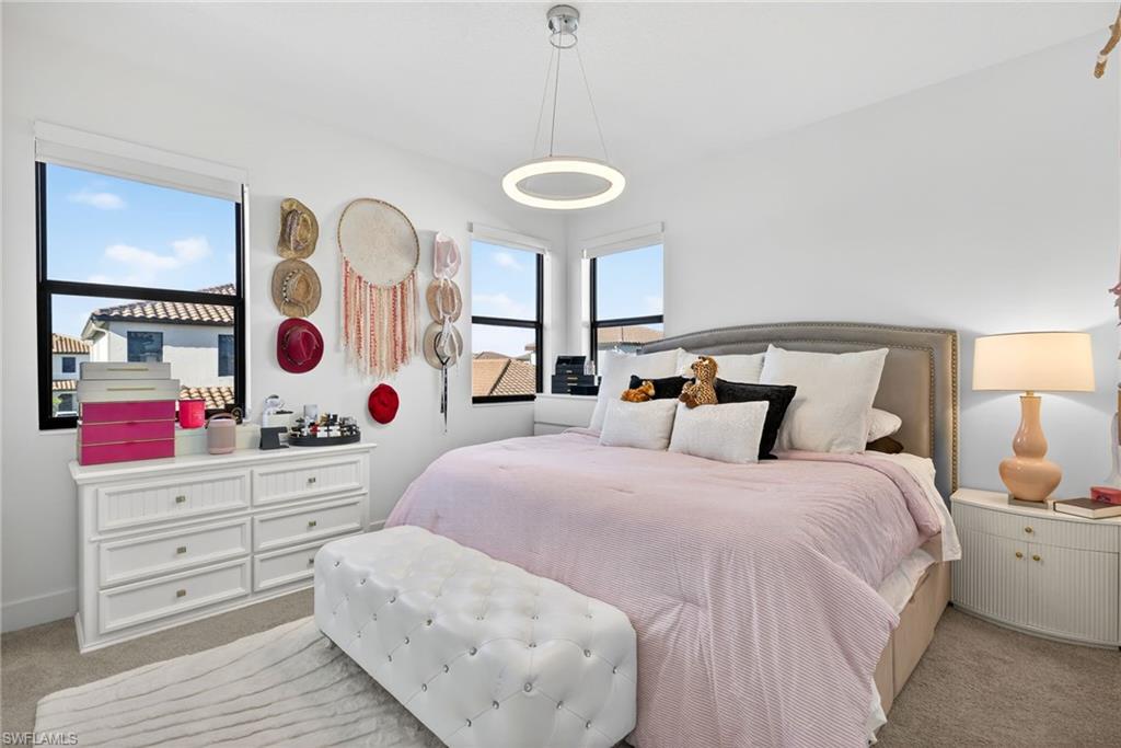 Welcome to 5585 Cobalto Way in Ave Maria! This grand Encinitas 2 story floor plan features 4 bedrooms and 3 1/2 baths. The primary suite is conveniently located on the first floor of of the main living area and boasts a large ensuite bathroom with expansive shower and dual sinks. The kitchen has plenty of quartz counter top space and cabinet storage for any chef! Upstairs we have 3 large bedrooms and a loft which can be used to watch your favorite shows, movies or sports teams or a perfect place for the kids to make their own. Upgrades have been made throughout the home including additional extended pavers around the exterior of the entire home, additional A/C splits added to the primary suite and the garage, beautifully decorated resin floors and cabinets in the garage as well as added storage, upgraded LED light fixtures throughout the home, blackout window treatments and a water filtration system. This home is only 2 years old and features hurricane impact doors and windows as well as a great backyard space that can be turned into your own personal oasis, come see it today!