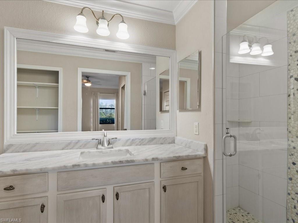 Immediate Full Golf Membership with purchase. Absolutely beautiful lake front condo with gorgeous water views. Two bedrooms and a true Den. This beautiful unit will certainly impress and includes all the wonderful amenities Treviso Bay has to offer. Completely and totally remodeled with new flooring in bedrooms and Den, new cabinets, Quartz countertops, new shower in both baths, paint, light fixtures, all new appliances, backsplash, crown molding with woodworking on walls for accent in main living area, custom closet built ins in Primary bedroom and closet inserts in Guest bedroom, reverse osmosis system and all done in light coastal colors. Treviso Bay boasts a 55,000 square foot clubhouse with restaurant, bar, and numerous club and social events, tennis, lake front beach area, large resort style pool, lap pool, hot tub, pickleball, fire pits, state of the art fitness center with access to personal trainers and fitness classes. Full service spa and bocce round out this amenity rich neighborhood. Located 5 miles to 5th Ave and the Gulf.