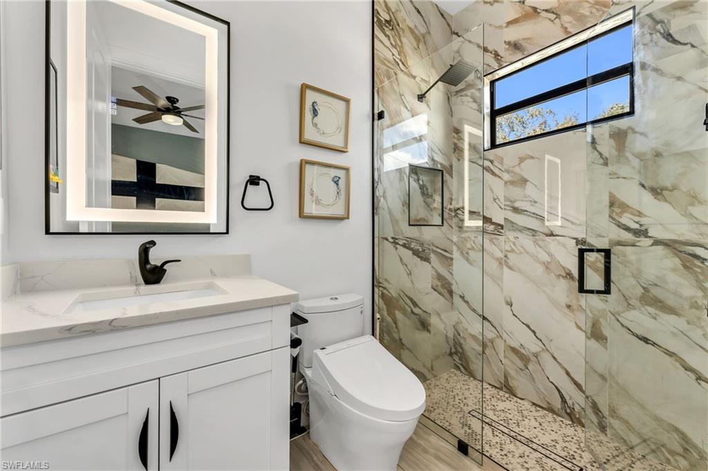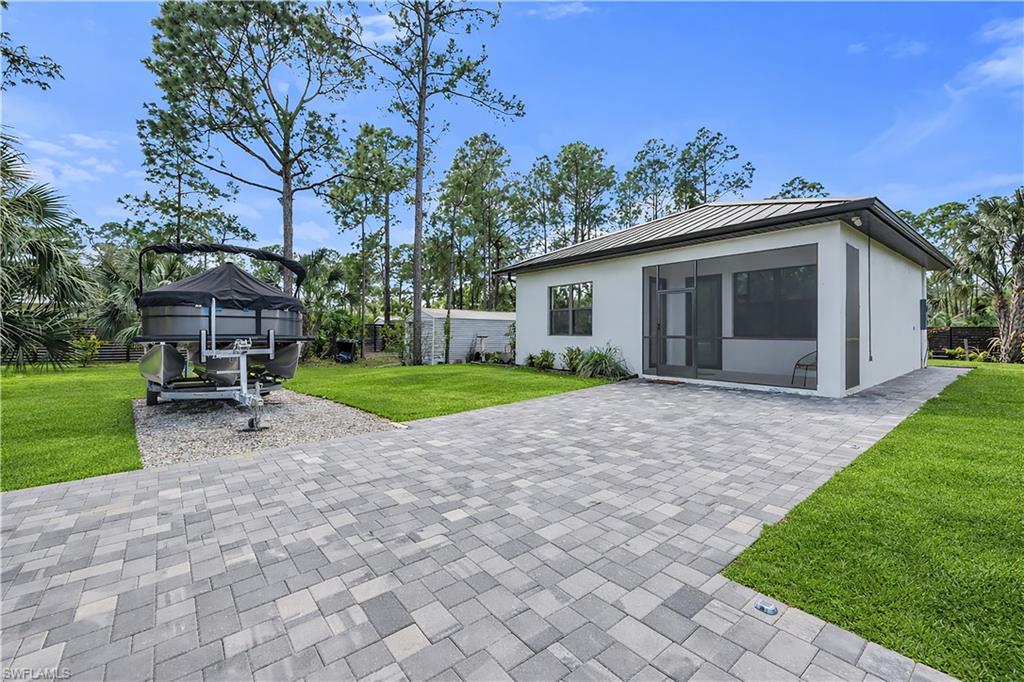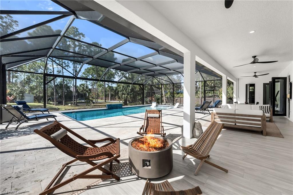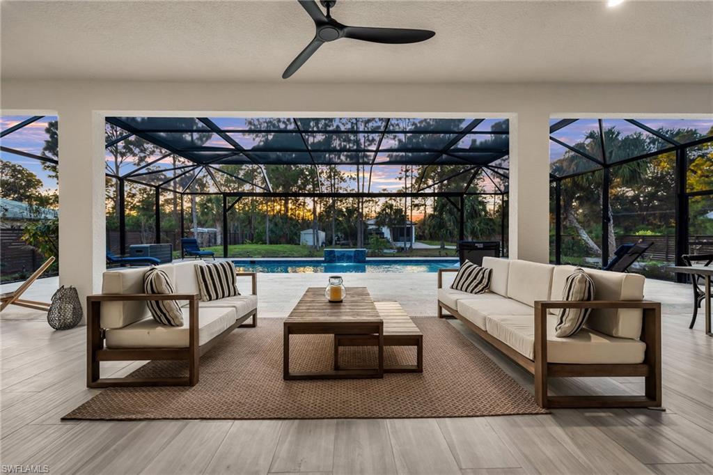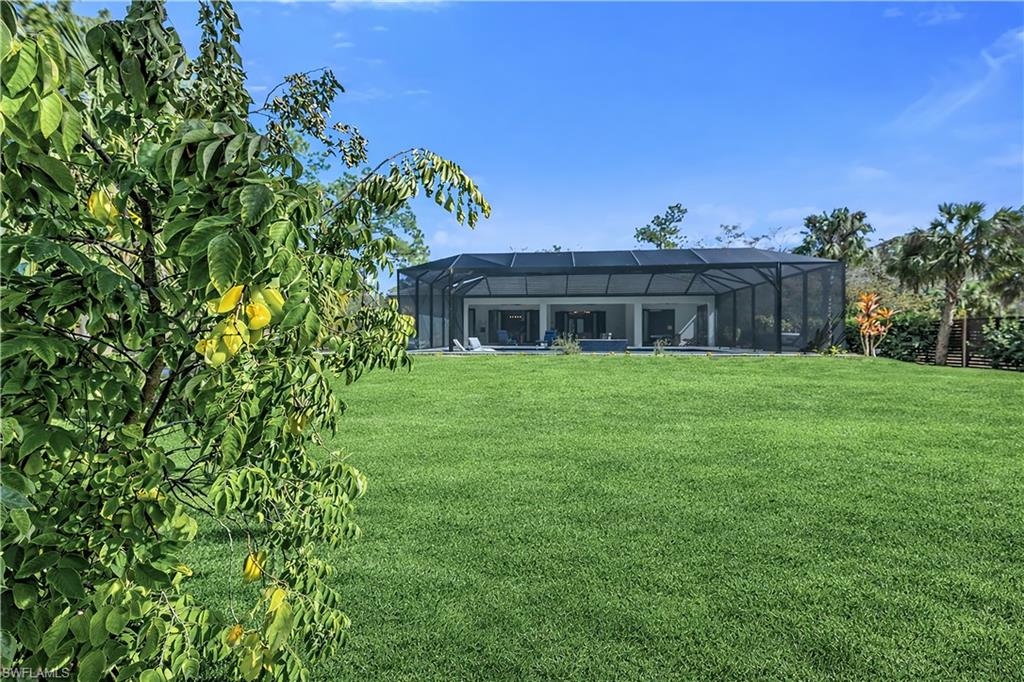 PRICE IMPROVEMENT... Luxurious, sophisticated family compound including a MAIN HOUSE (2,657 Sq. Ft.) plus separate GUEST HOUSE (800 Sq. Ft.) = 3,457 total Sq. Ft. of living space under A/C on 2.6 private acres just off Wilson Blvd. corridor in highly desirable Golden Gate Estates. This multi-generational property offers space, privacy and natural beauty, highlighted by organic food forest throughout the grounds. The main residence features 3 ensuite bedrooms with full baths and bidet toilets, plus flexible space for additional primary suite or in-law configurations. The den/study also includes it's own bathroom and private exterior entrance. Soaring ceilings and oversized impact windows and doors enhance both security and natural light. Enjoy the custom oversized natural heated pool with over 2000 sq. ft of lanai space, designed with an advanced natural filtration system and no chlorine required. Ideal for entertaining, family gatherings and making memories. The chef's kitchen features granite counters with full backsplash, 42' soft-close cabinetry, a very large waterfall island with plenty of storage, KitchenAid stainless steel appliances and an induction cooktop. An oversized undermount stainless steel sink with spray faucet and generous prep space completes the design. The open living area includes a feature wall and double fireplace shared with the dining area. The primary bath offers a large walk-through multi-head shower, a soaking tub, granite countertops with dual sinks and custom his and hers closet systems. Plank tile flooring runs throughout the house for style and durability. A separate 800 sq. ft. guest house includes 2 bedrooms and a full bath with bidet toilet, providing excellent guest or extended-family accommodations. The property is fully fenced with two electronic entry gates for added privacy and security. The grounds are fully irrigated and include 89+ organic fruit trees and extensive raised garden beds with herbs, greens and tropical plantings. Additional features include RV parking with charging station, separate septic systems, separate electric meters for main as well as guest house and ample parking space for additional vehicles, ATV's boats etc. The sellers have invested an additional $1 million dollars in enhancements and upgrades, creating this incredible dream home complex that is conveniently located near schools, shopping, dining, Audubon Corkscrew Swamp Sanctuary, Rookery Bay, Collier boat ramps and the recently completed 150 acre Big Corkscrew Island Regional Park with aquatic center, sports fields, courts and community amenities, including day care. A rare Naples estate offering versatility, privacy, space and definitely resort-style living!