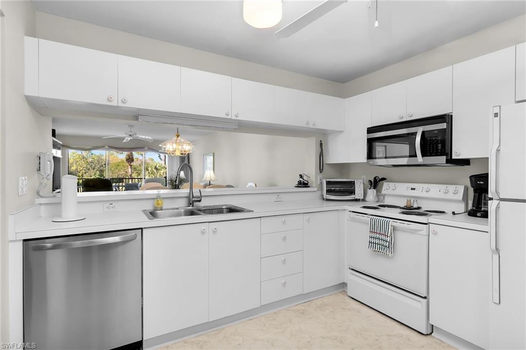 Full Golf Membership Included! Sought-after end-unit condo filled with abundant natural light from windows on three sides. Soaring vaulted ceilings and tranquil preserve and golf course views create a bright, open atmosphere that truly sets this residence apart. Enjoy added privacy, peaceful surroundings, and the convenience of a covered carport. Situated within a gated country club community known for exceptional value, residents enjoy 18 holes of championship golf, an elegant clubhouse with dining and pub, Har-Tru tennis courts, bocce, a resort-style community pool, and a recently updated state-of-the-art fitness center. The neighborhood also features its own pool for added convenience. All of this is close to premier shopping, dining, entertainment, and the stunning sugar-sand Gulf beaches—offering the very best of Southwest Florida’s relaxed country club lifestyle.