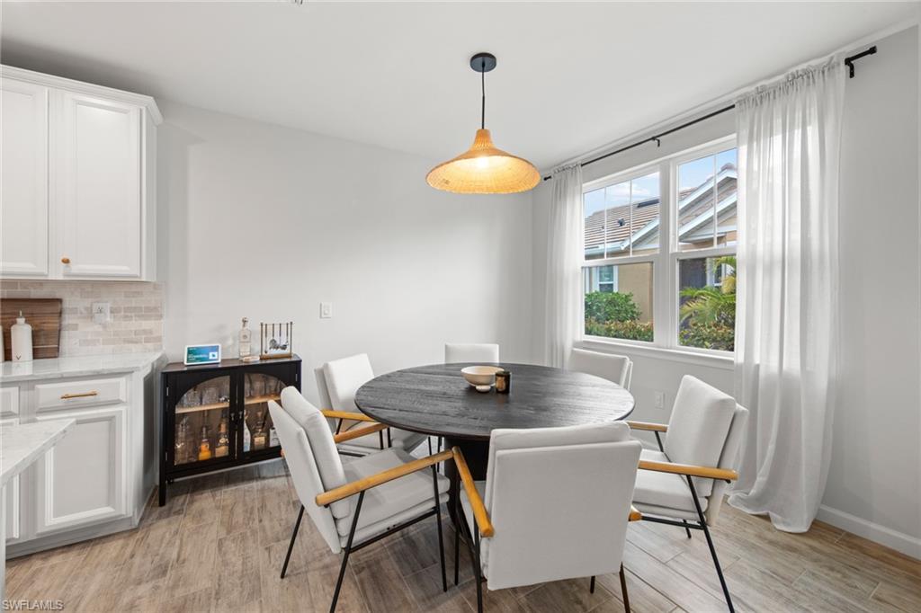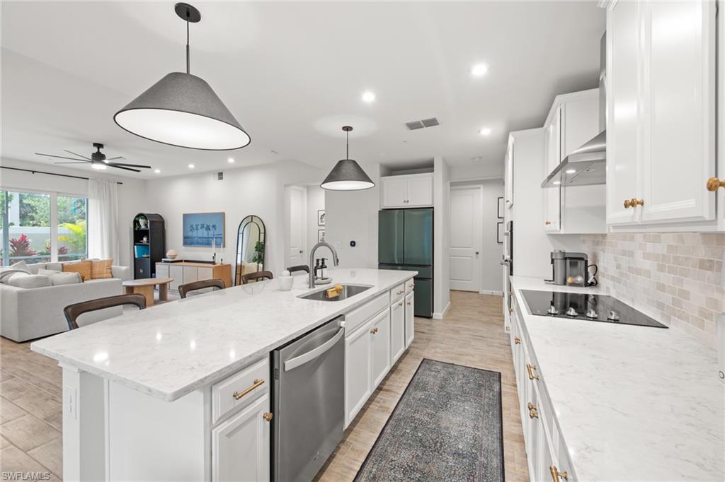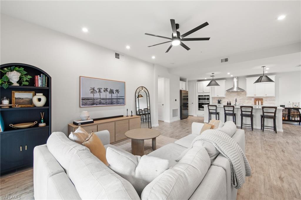 Welcome to this beautifully maintained first-floor, end-unit residence offering modern upgrades, abundant natural light, and an unbeatable Naples location. The spacious Great Room features expansive hurricane-impact sliding glass doors, creating a bright and airy space ideal for relaxing or entertaining. The modern kitchen shines with quartz countertops and sleek contemporary cabinetry, while the screened, covered lanai provides the perfect spot to enjoy Florida living year-round. Additional highlights include an Ecobee smart thermostat and an attached 2-car garage with an epoxy-coated floor. Located in a gated community with resort-style amenities including a pool, hot tub, fitness center, fire pit, and dog park. Just 1.5 miles from the marina and less than 4 miles from downtown 5th Avenue’s dining and shopping. Outside of a flood zone—no flood insurance required. Schedule your showing today!
