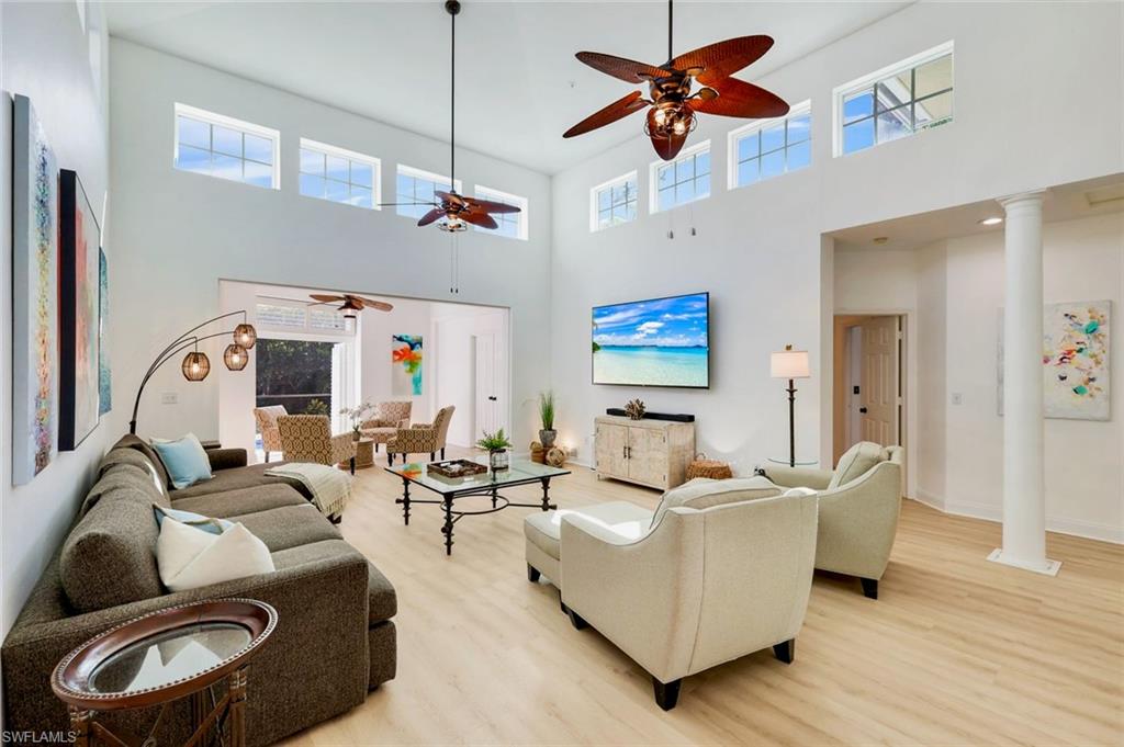 Welcome to the ideal Naples lifestyle in The Mews of Naples, an intimate community of only thirteen homes in the heart of Park Shore. This three bedroom, three bath corner villa is ideally positioned with desirable southern and western exposures that provide exceptional privacy and abundant natural light throughout the day. Designed on one level with a spacious split bedroom floor plan, this beautiful home features high volume ceilings and transom windows that enhance the bright and airy feel. The main living space opens to an inviting sitting area where you can relax and gaze out over the pool, creating a seamless connection between indoor comfort and outdoor living. Step outside to your fully screened, south facing pool and patio, recently resurfaced, and complemented by a beautiful travertine deck. This private outdoor retreat offers the perfect setting for entertaining or relaxing in the Florida sunshine. The expanded paver forecourt driveway provides parking for three vehicles in addition to the attached two car garage. The driveway, walkway, and enhanced landscaping with updated lighting further elevate the home’s curb appeal. The home has been thoughtfully updated with a fully renovated kitchen featuring expanded cabinetry and modern finishes, along with a beautifully redesigned primary bath that offers a spa like experience. New flooring throughout the residence adds to its fresh and cohesive feel. Additional improvements include a newer roof, new air conditioning system, and new water heater. The property is fully hurricane protected with a combination of new impact windows and shutters, providing both security and peace of mind. Offering a convenient lock and leave lifestyle, this residence provides the ease of low maintenance living with the feel of a private single family home. The property is located in a desirable X flood zone for added confidence and security. Park Shore residents enjoy optional membership to the private Park Shore beach park and are just minutes from the boutiques and waterfront dining of Venetian Village, as well as the charm of Fifth Avenue South.