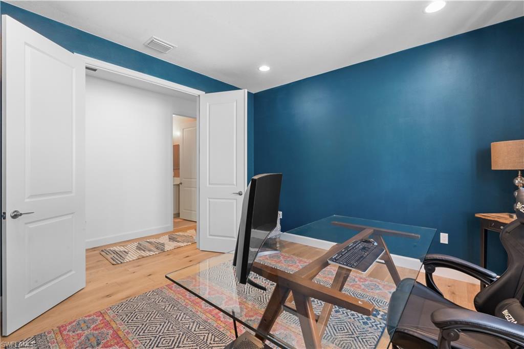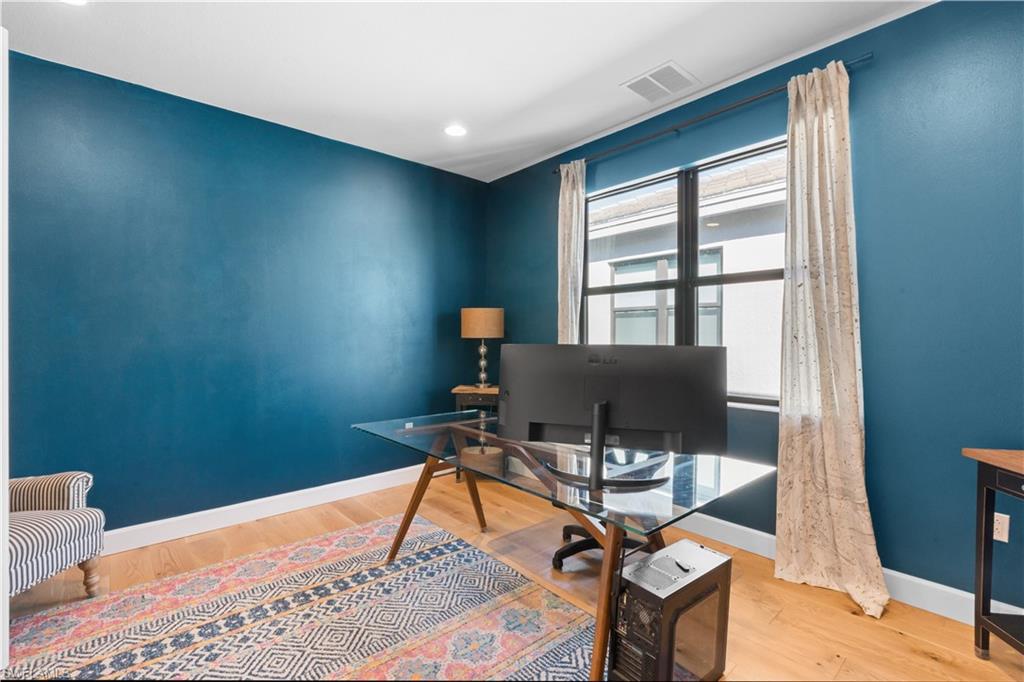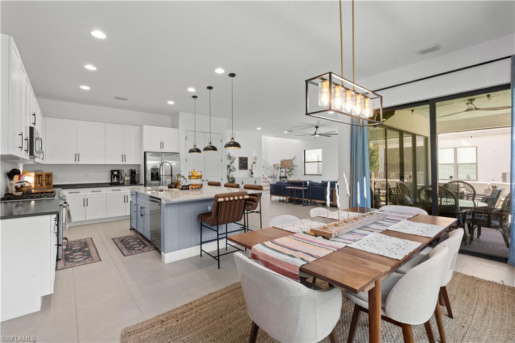 The highly sought-after Olympia floor plan by GL Homes delivers refined luxury designed for the modern, busy family. Recently built and impeccably upgraded, this exceptional residence showcases designer lighting, curated custom wall finishes, elegant millwork, wide-plank white oak flooring, quartz countertops, and a bespoke speakeasy-style wine nook—each detail thoughtfully selected for both beauty and function. The expansive floor plan offers space to gather, work, and unwind with ease. A rare main-level bedroom with a full bath provides ideal flexibility for guests or multigenerational living. Two sophisticated family rooms—one upstairs and one downstairs—allow everyone their own retreat, while a large private office with French doors creates a quiet, work-from-home haven. In total, the home features 4 generously sized bedrooms, 5 full bathrooms, and nearly 4,000 square feet of beautifully appointed living space!! Outdoors, the private western-facing backyard is framed by mature flowering trees and offers a deep, grassy lawn—perfect for play, pets, or sunset entertaining. A 3-car garage with mudroom entry keeps daily life organized, while soaring ceilings and oversized closets add to the home’s airy, luxurious feel. Additional highlights include natural gas cooking, hurricane-rated doors and windows, low HOA fees, fencing permitted, and no flood insurance requirement—practical luxuries that truly matter. Set within an amenity-rich, resort-style community, residents enjoy a pool and spa, yoga room, indoor sports court, fitness center, fire pits, playground, tennis, bocce, and pickleball. Ideally located just minutes from I-75, RSW Airport, FGCU, Hertz Arena, Publix, Miromar Outlets, and Gulf Coast beaches—this home offers seamless living for families who value time, comfort, and elevated design.