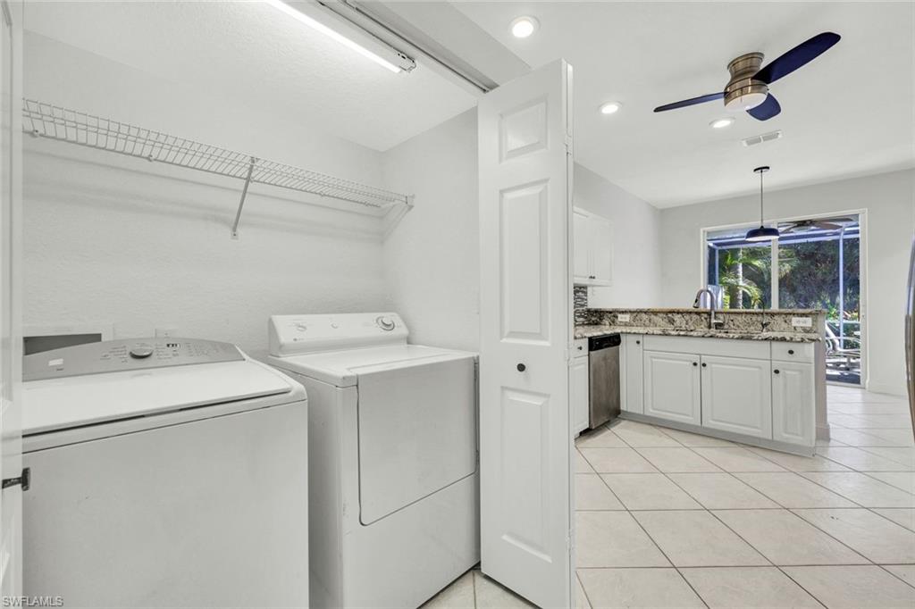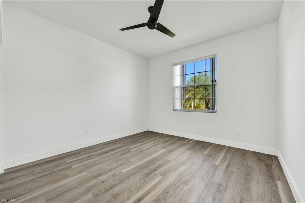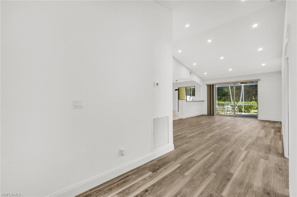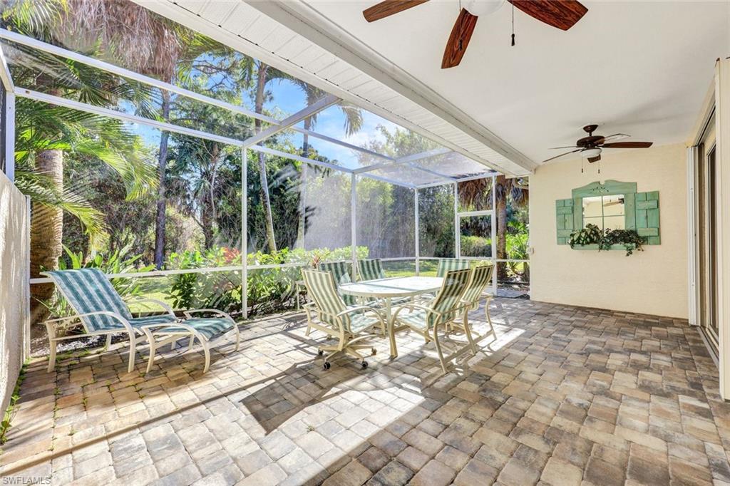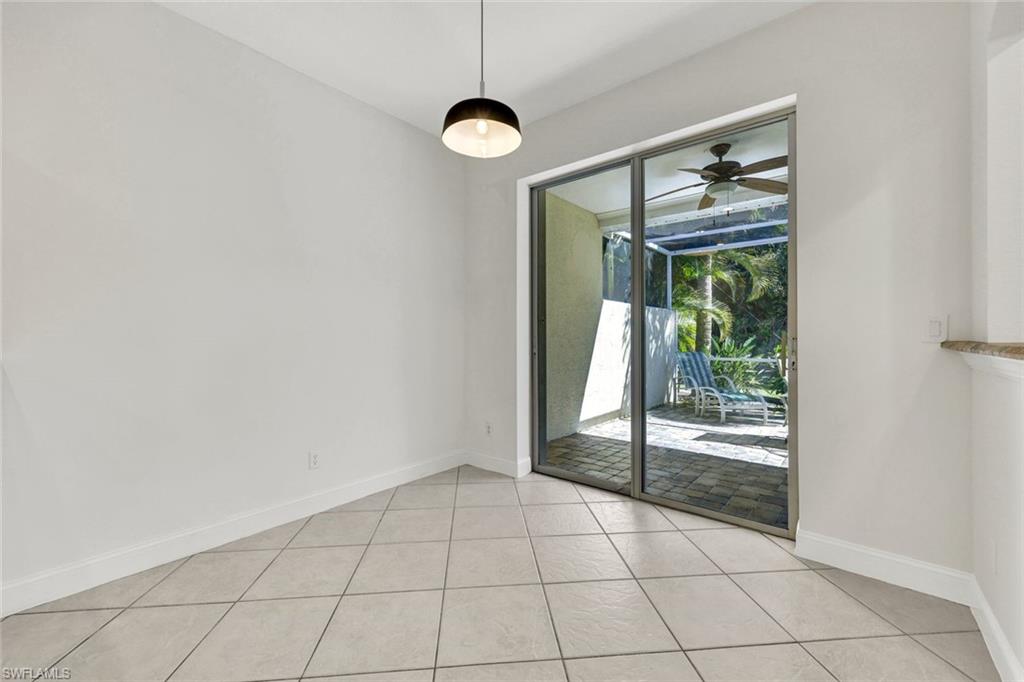 Welcome to this beautifully updated villa in the desirable gated community of The Shores at Berkshire Lakes. This light and bright 2-bedroom + den, 2-bath, 2-car garage residence features high ceilings, an open layout, and fresh interior white paint throughout, providing a clean canvas for it's next owner. Recent upgrades include renovated bathrooms with walk-in showers, laminate wood flooring in the main living areas and bedrooms, a tile roof installed in 2019, accordion hurricane shutters, and a tankless water heater. Enjoy true Florida living from the spacious, fully screened pavered lanai and patio, perfect for relaxing or entertaining. Residents of The Shores enjoy resort-style amenities including a large heated lakeside pool with tranquil fountain views, fitness center, clubhouse with ballroom, billiards and card rooms, library, pickleball and tennis courts, bocce and a playground — all within a beautifully maintained gated community with low HOA fees that include cable, internet, lawn care and more. Centrally located just minutes to shopping, dining, beaches, and Downtown Naples’ famous Fifth Avenue South. Move-in ready and competitively priced—an exceptional opportunity in one of Naples’ most convenient locations.