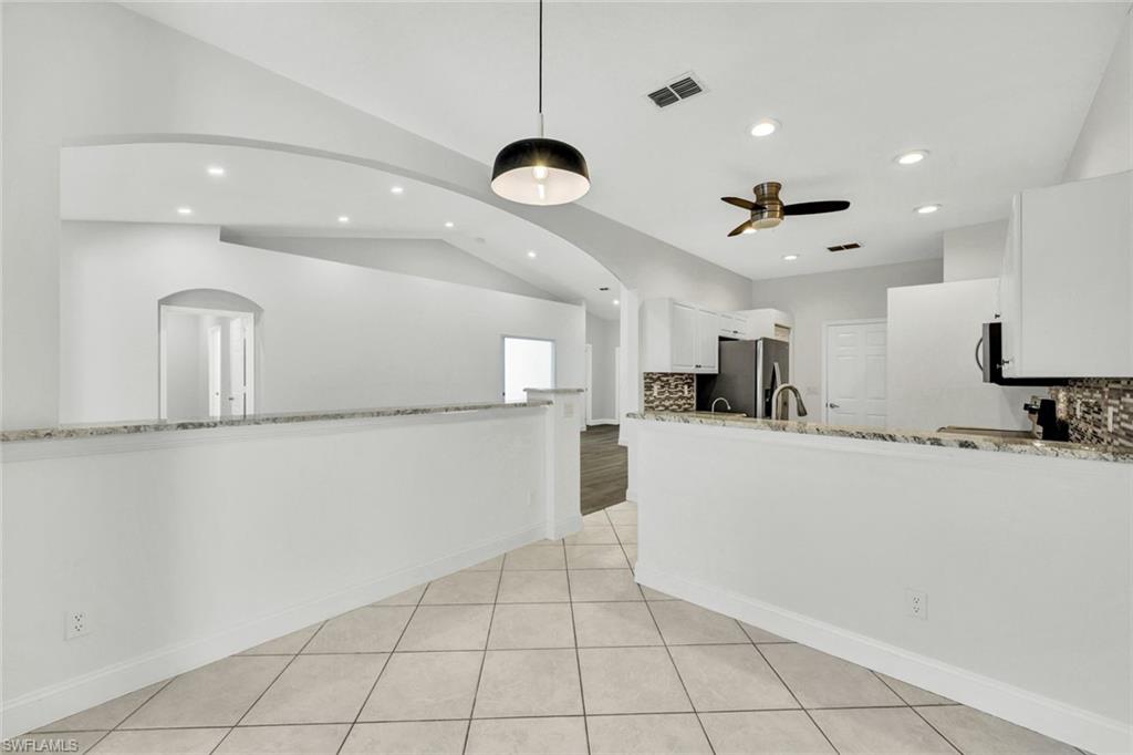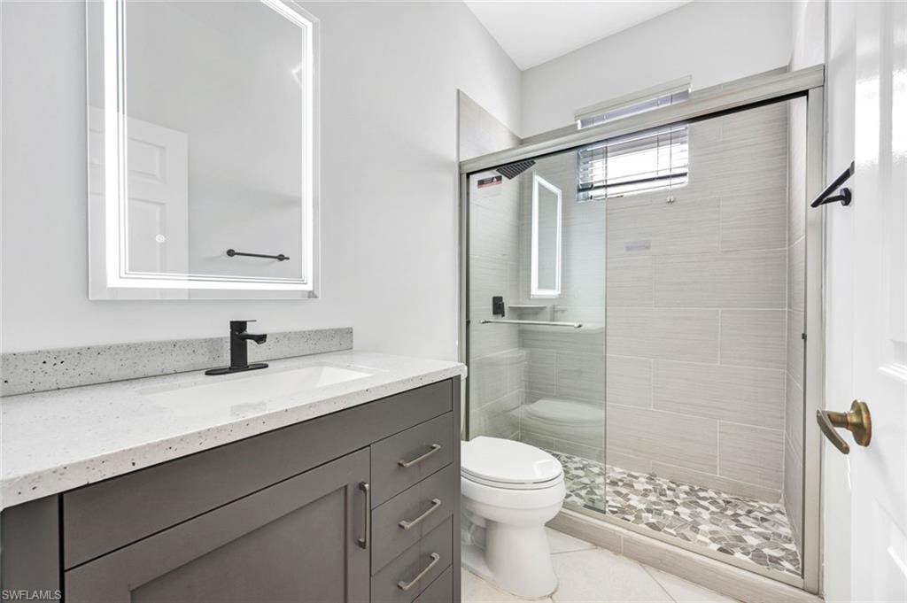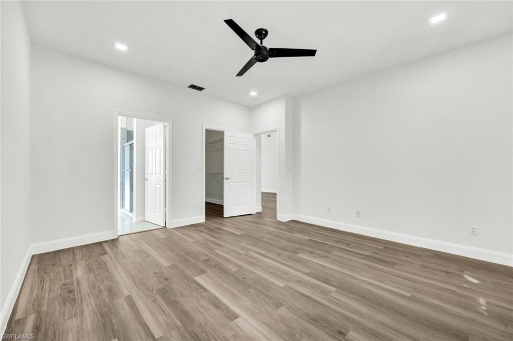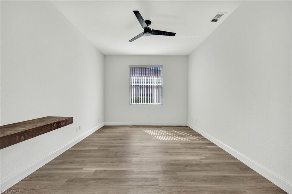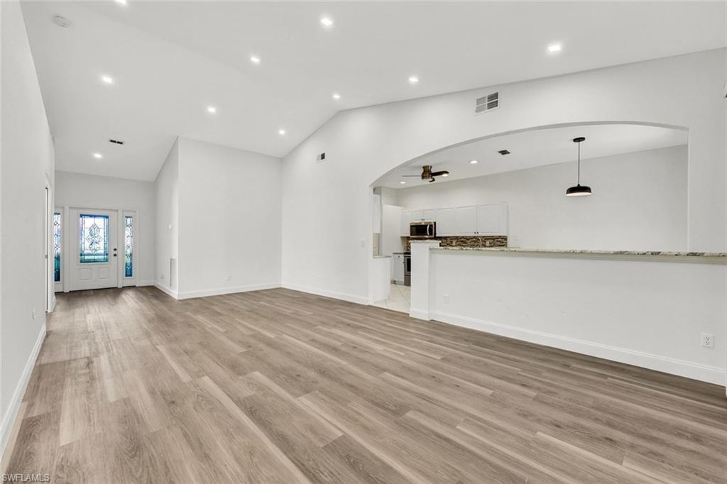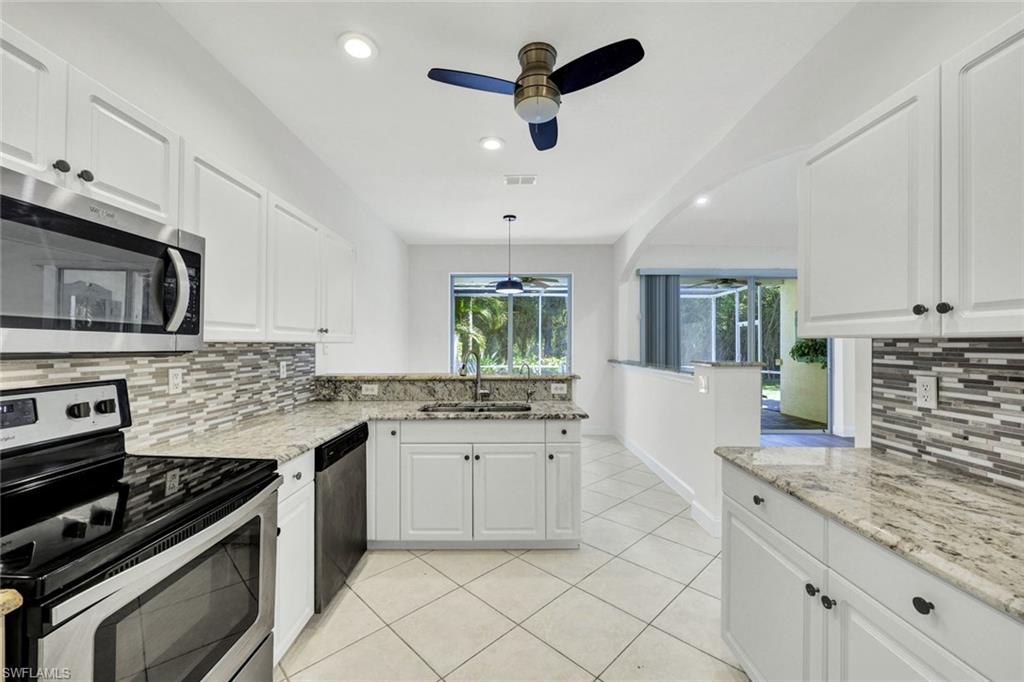 Welcome to this beautifully updated villa in the desirable gated community of The Shores at Berkshire Lakes. This light and bright 2-bedroom + den, 2-bath, 2-car garage residence features high ceilings, an open layout, and fresh interior white paint throughout, providing a clean canvas for it's next owner. Recent upgrades include renovated bathrooms with walk-in showers, laminate wood flooring in the main living areas and bedrooms, a tile roof installed in 2019, accordion hurricane shutters, and a tankless water heater. Enjoy true Florida living from the spacious, fully screened pavered lanai and patio, perfect for relaxing or entertaining. Residents of The Shores enjoy resort-style amenities including a large heated lakeside pool with tranquil fountain views, fitness center, clubhouse with ballroom, billiards and card rooms, library, pickleball and tennis courts, bocce and a playground — all within a beautifully maintained gated community with low HOA fees that include cable, internet, lawn care and more. Centrally located just minutes to shopping, dining, beaches, and Downtown Naples’ famous Fifth Avenue South. Move-in ready and competitively priced—an exceptional opportunity in one of Naples’ most convenient locations.