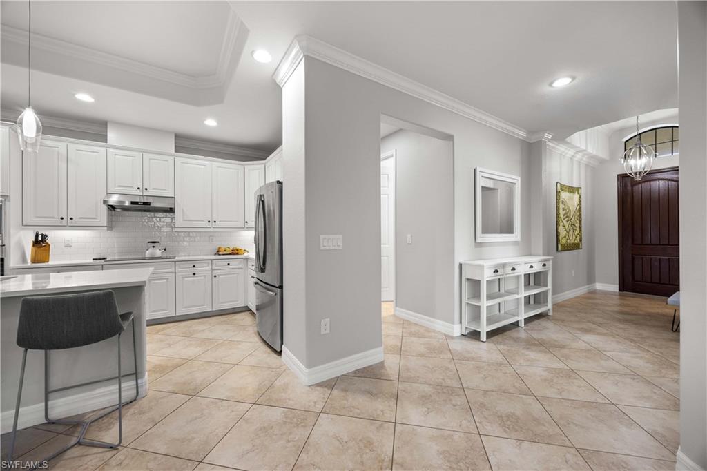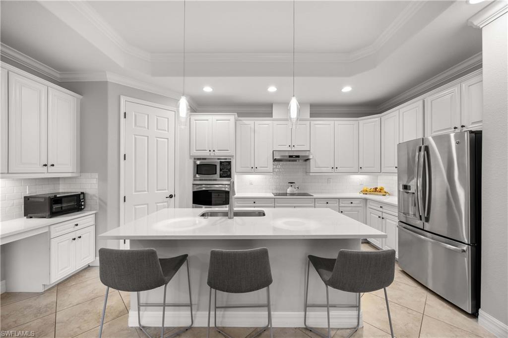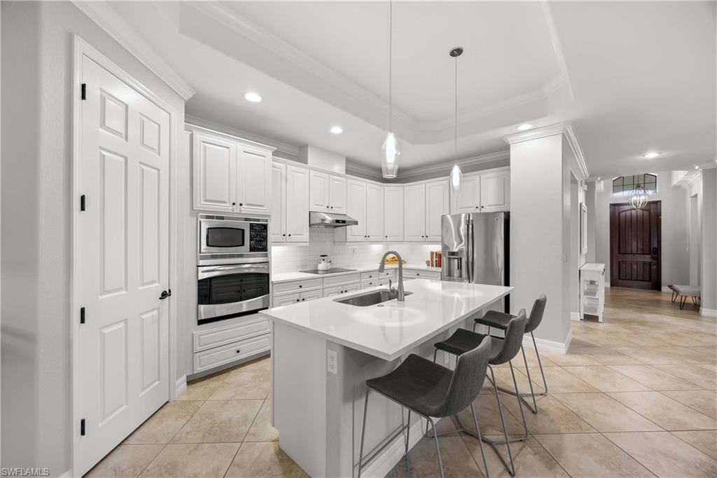 Welcome to this beautifully updated Sophia model in the highly sought-after community of Treviso Bay, offering 2,035 square feet of thoughtfully designed living space and a deeded TPC golf membership. This 3-bedroom + den/office, 3-bath single-family home blends comfort, style, and resort living. The open-concept floor plan features tile flooring throughout with luxury vinyl in the den, creating a seamless and modern feel. The kitchen has been tastefully refreshed with painted cabinetry, new quartz countertops, a new induction cooktop and hood, and flows effortlessly into the main living and dining areas—perfect for entertaining. Each bathroom has been upgraded with painted cabinets, new quartz counters and new Toto toilets. A new hot water heater (January 2026) adds peace of mind. Step outside to your private oasis where the saltwater-converted pool and spa overlook a tranquil lake view. The lanai features new screens and a fully equipped outdoor kitchen with a new 36” grill, ideal for enjoying Southwest Florida’s indoor-outdoor lifestyle year-round. Additional highlights include a 2-car garage and all the luxury amenities Treviso Bay is known for, including championship TPC golf, resort-style pool, fitness center, tennis, dining, and more. Experience the best of Naples living in this move-in-ready golf home.