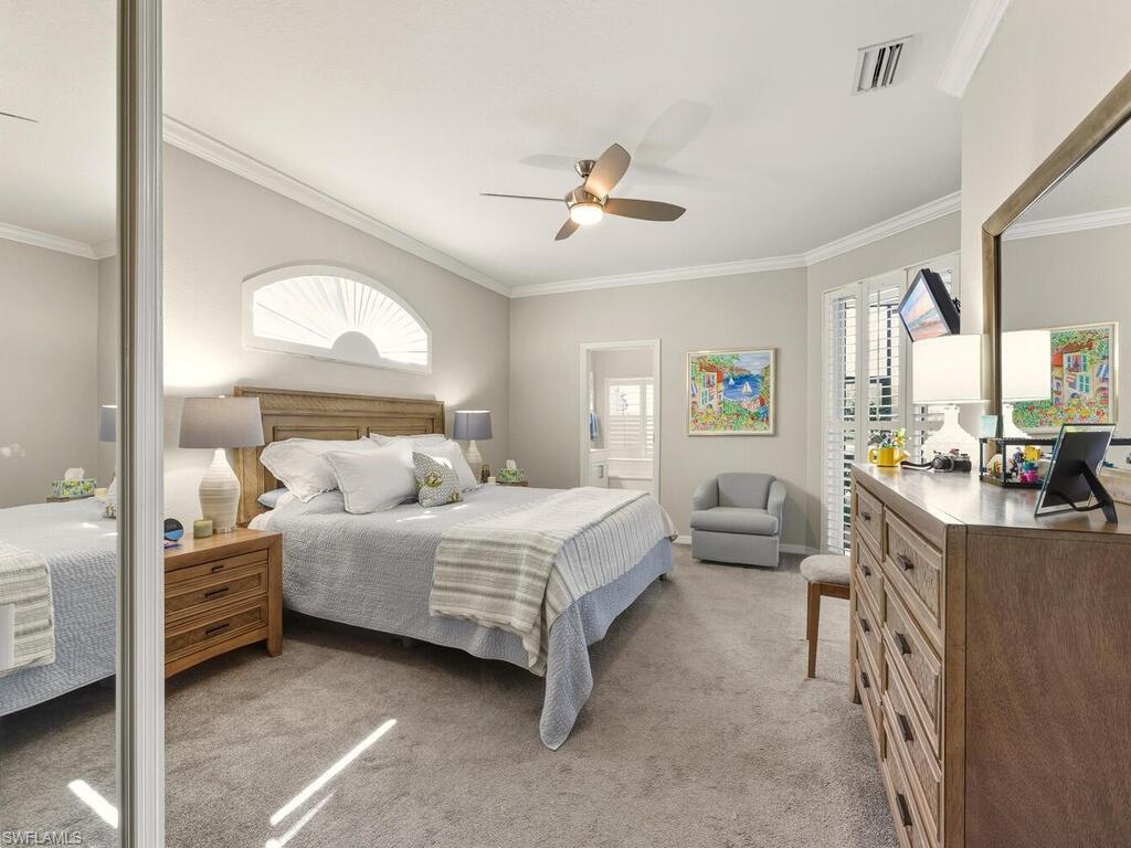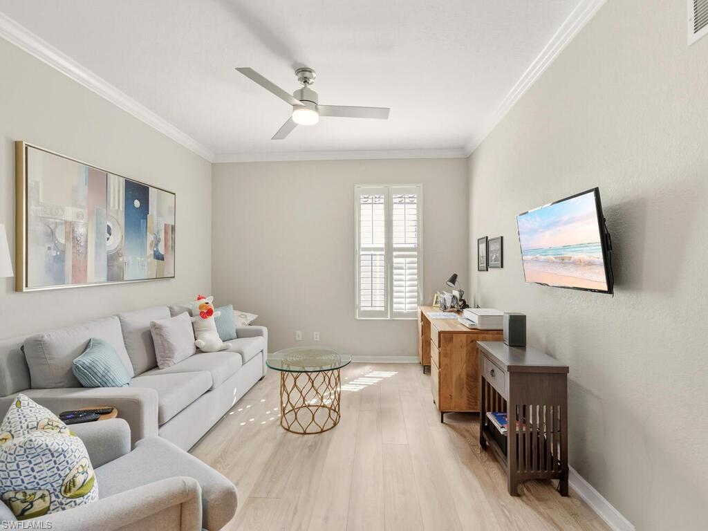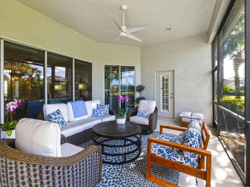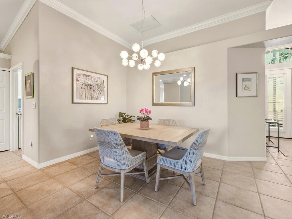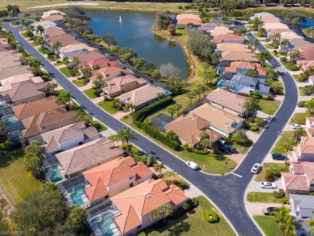 Welcome to 10000 Isola Way located in the Tivoli community of the renowned Miromar Lakes Beach & Golf Club! With a warm and inviting feeling as you enter, this home offers 2 bedrooms plus a den, 2 baths, living area with adjacent dining area, kitchen with eat-at bar as well as separate eating area and attached 2 car garage. The den gives you many options and can be a 3rd bedroom, combination with home office, craft room or so much more! With SW exposure, you will love the natural light that fills the interior during the day and the stunning sunsets. The lanai is the true highlight, offering a peaceful water view with a feature fountain! Looking for future potential? Owners have the option to build a private pool/spa or extend the lanai to create additional outdoor entertaining space personalized to you. Combined with a 2024 roof, buyers can enjoy both flexibility and confidence in this investment. Tivoli residents have full access to the resort-style amenities that Miromar Lakes offers - from miles of sand beaches on 700 acres of freshwater lakes with various water sports, tennis, pickle ball, bocce, putting green, kids play area, 2 marinas, full service spa & fitness center, infinity pool with spa, to the main clubhouse with dining, inside/outside bars, private dining room, library to the always popular Blue Water Beach Grill with outdoor dining and the perfect view. Miromar Lakes Golf Club is an optional membership. Miromar Lakes is just a short distance to RSW Airport and a multitude of shopping, dining and entertainment venues. Don't miss this opportunity for a fabulous resort lifestyle!
