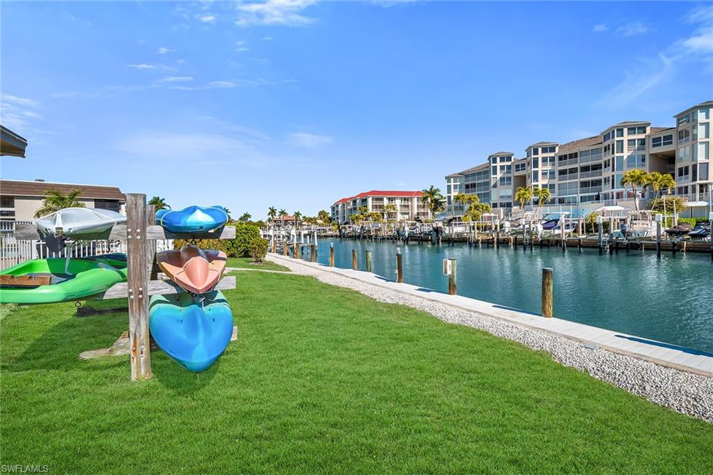Located within the desirable Crow’s Nest waterfront community, this first-floor corner residence delivers the rare combination of direct Gulf access, an assigned boat dock, and tranquil canal views from two screened lanais. Designed for effortless coastal living, the waterfront setting allows you to step outside and enjoy boating, fishing, or sunset cruising with ease, while the corner positioning enhances privacy, natural light, and the feeling of a private retreat. The thoughtfully designed floor plan offers two bedrooms and two baths with a light, inviting interior palette that complements the surrounding water views. Tile flooring and carpeting flow throughout, paired with crown molding in the main living areas to add architectural polish. The living room opens seamlessly to a screened lanai through expansive glass sliders, creating a natural extension of the indoor living space and an ideal setting for relaxed gatherings overlooking the canal. The kitchen is both functional and charming, featuring a tray ceiling, white cabinetry, tile countertops with a matching backsplash, a bar counter for casual seating, and a pantry for added storage. Adjacent to the kitchen, the dining area is framed by glass sliders leading to a screened lanai, where peaceful canal views provide a picturesque backdrop for everyday meals or evening entertaining. The primary bedroom offers a serene retreat with direct access to a screened lanai through glass sliders and a spacious walk-in closet. Its ensuite bath is well-appointed with a double vanity and a walk-in shower finished with floor-to-ceiling tile and frameless glass doors. The guest bedroom also enjoys glass slider access to a screened lanai, offering comfort and privacy for visitors, while the nearby guest bath features a shower-tub combination with a glass door. The laundry area includes a washer, dryer, and utility sink for added convenience. For added peace of mind, one screened lanai is equipped with electric storm shutters, while the second lanai features manual shutters, providing seasonal protection and flexibility. Residents enjoy access to a community pool, perfect for relaxing after a day on the water. Just minutes from Marco Island’s pristine beaches, upscale boutiques, fine dining, parks, museums and golf courses, this home offers the ideal blend of coastal luxury and an active waterfront lifestyle. Whether kayaking, paddleboarding, biking, tennis, pickleball or enjoying time on the beach, the island lifestyle is right at your doorstep, with the executive airport nearby for effortless travel.