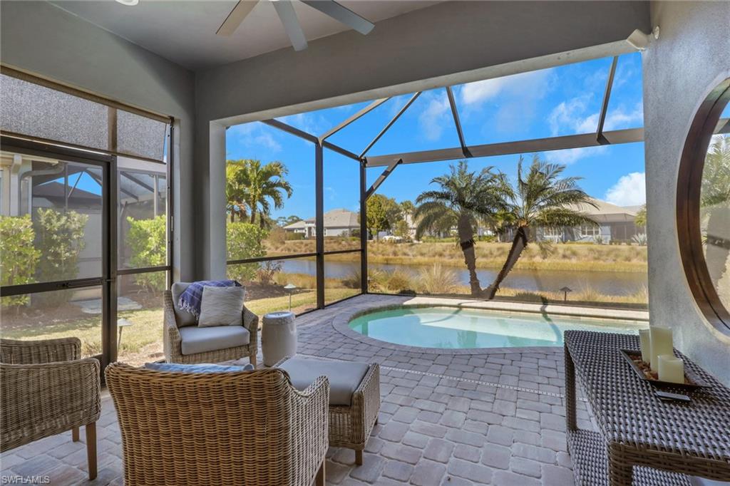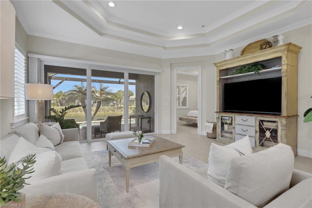 Nestled within the exclusive gated community of The Isles of Collier Preserve, this beautifully appointed and rarely available Petunia model villa offers a sophisticated blend of luxury, comfort, and serene water views. Impeccably maintained and offered fully turnkey with designer furnishings by Clive Daniel, this 2-bedroom plus den, 2-bath residence with a private pool showcases refined coastal elegance throughout. The open-concept floor plan flows effortlessly from the gourmet kitchen to the dining area and spacious great room, creating an inviting setting ideal for both entertaining and everyday living. The kitchen is thoughtfully upgraded with granite counter tops, 42-inch premium soft-close cabinetry, under-cabinet lighting, a generous center island, and a top-tier stainless steel appliance package. Elevated design details such as plantation shutters, tray ceilings, crown molding, and designer lighting enhance the home’s upscale appeal, while modern conveniences include an air-conditioned garage with epoxy flooring, impact-resistant windows and doors, Ring security system, ceiling fans, floor outlets, recessed lighting, and pre-wiring for cable and chandeliers. The versatile den, complete with French doors and a sleeper sofa, offers flexibility as a home office or additional guest space. Step outside to the expansive screened lanai featuring a sparkling heated saltwater pool and brand new “noseeum” screens—an ideal retreat for relaxing or entertaining while enjoying tranquil water views. Residents of The Isles of Collier Preserve enjoy an unparalleled resort lifestyle with a walk-in resort pool, lap pool, fitness center, 14 pickle ball courts, tennis and bocce courts, kayaking, scenic nature trails, bike paths, dog parks, and community boat rides along the Cypress Waterway. The vibrant social calendar and the onsite Overlook Bar & Grill provide exceptional opportunities for dining and connection without ever leaving the neighborhood. Located just minutes from the US Open Pickle ball Center and downtown Naples’ iconic Fifth Avenue South, with world-class beaches, fine dining, boutique shopping, and cultural attractions nearby. This villa combines the best of relaxed coastal living with resort style living for the ultimate Naples lifestyle!