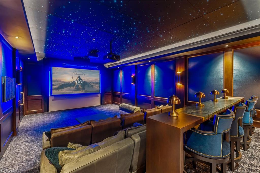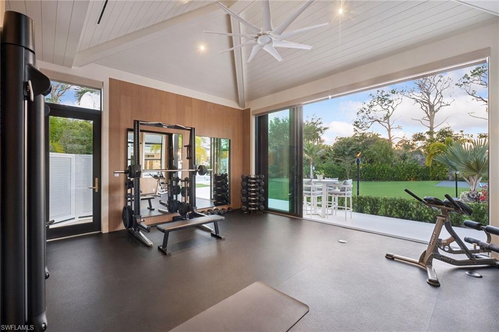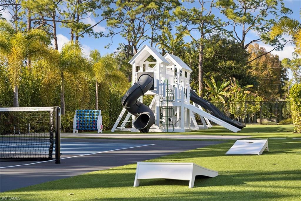 A statement in modern luxury, this estate combines thoughtful design, exceptional craftsmanship, and resort level amenities rarely found in residential living, including one of the area’s very few private pickleball courts. Positioned on 1.37 private acres with coveted southern exposure, it balances grand scale with warmth and everyday livability. Outdoor living unfolds as a private resort environment with nearly 4,000 square feet of additional outdoor space finished in premium maintenance free turf for year round enjoyment. The outdoor amenities include a custom 100 yard three hole golf course, private pickleball court, cold plunge, playground, pool, spa, outdoor kitchen and a beautifully designed fire pit for gathering and entertaining. A five car garage accommodates collectors or additional storage, and the fully fenced and gated property ensures exceptional privacy. Interiors are masterfully composed with bespoke cabinetry, layered materials, custom furnishings, and designer lighting throughout. No detail was overlooked. Soaring ceilings and abundant natural light enhance the interiors while framing tranquil views of the surrounding grounds, creating a seamless connection between indoor and outdoor living. The layout is equally suited to intimate daily living and large scale entertaining. Lifestyle driven indoor amenities include a fully custom movie room with a multi sport simulator designed for a variety of sports experiences, a professionally built out gym complete with cold plunge and outdoor showers, and an additional game room for family entertainment. Thoughtfully created as a one of a kind estate, this exceptional lifestyle property allows its new buyer to move in immediately and enjoy every amenity from day one, delivering effortless luxury living in the heart of Pine Ridge Estates, conveniently located just two miles to the beach and moments from the premier shopping and dining at Waterside Shops. A property of this scale and quality must be experienced firsthand to be truly be appreciated.