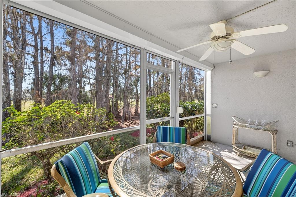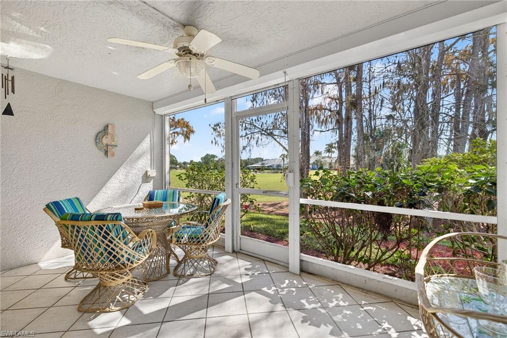 Welcome to effortless Florida living in this exceptionally maintained first-floor condo with a detached garage, located in the highly desirable Chatham Square community and offering a full golf membership at Glen Eagle Golf & Country Club. This inviting residence features two bedrooms plus a den, two full baths, and 18-inch tile laid on the diagonal throughout, creating a bright, clean, and cohesive feel. Thoughtful upgrades include decorative plantation shutters on every window and roll-down exterior storm shutter for added security. Major mechanicals have been updated, including the air conditioner, water heater, washer, and dryer, providing peace of mind for years to come. Unwind on your screened lanai, sip your morning coffee, and enjoy peaceful sunrise views in your own private retreat. Don’t miss this opportunity to own a piece of paradise in one of the best-valued golf communities in Southwest Florida. Glen Eagle is perfectly located less than 4 miles from downtown Naples, where you’ll enjoy Fifth Avenue’s fine dining, boutique shopping, art galleries, and the stunning Gulf beaches