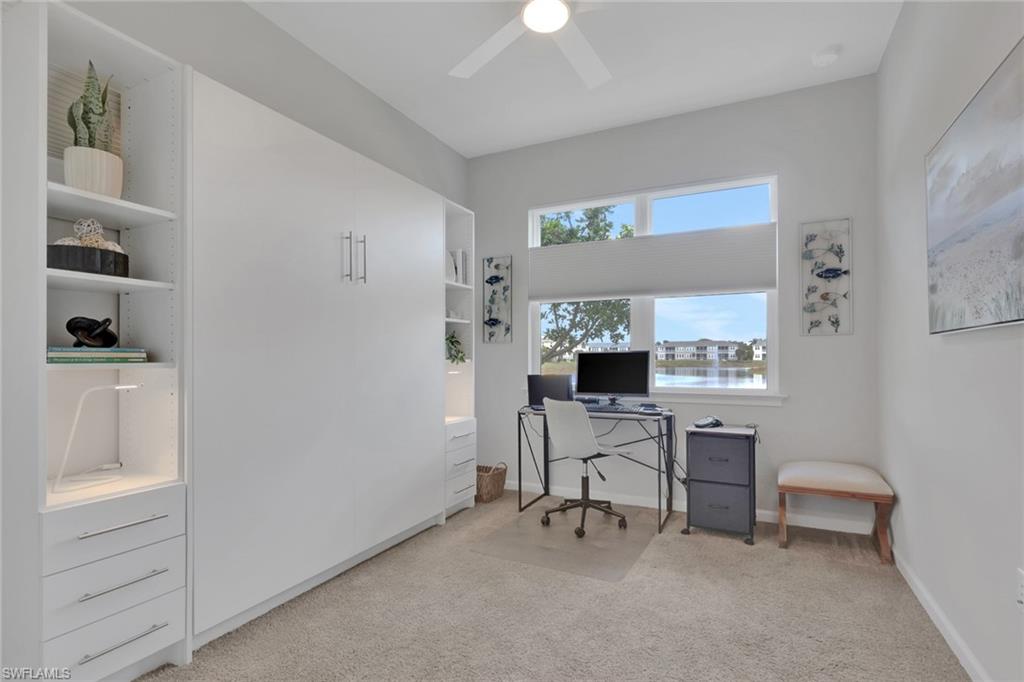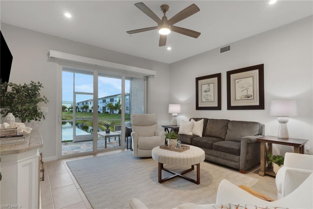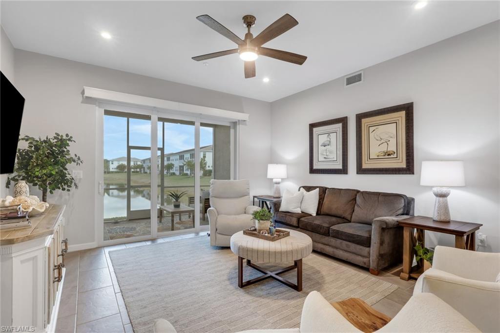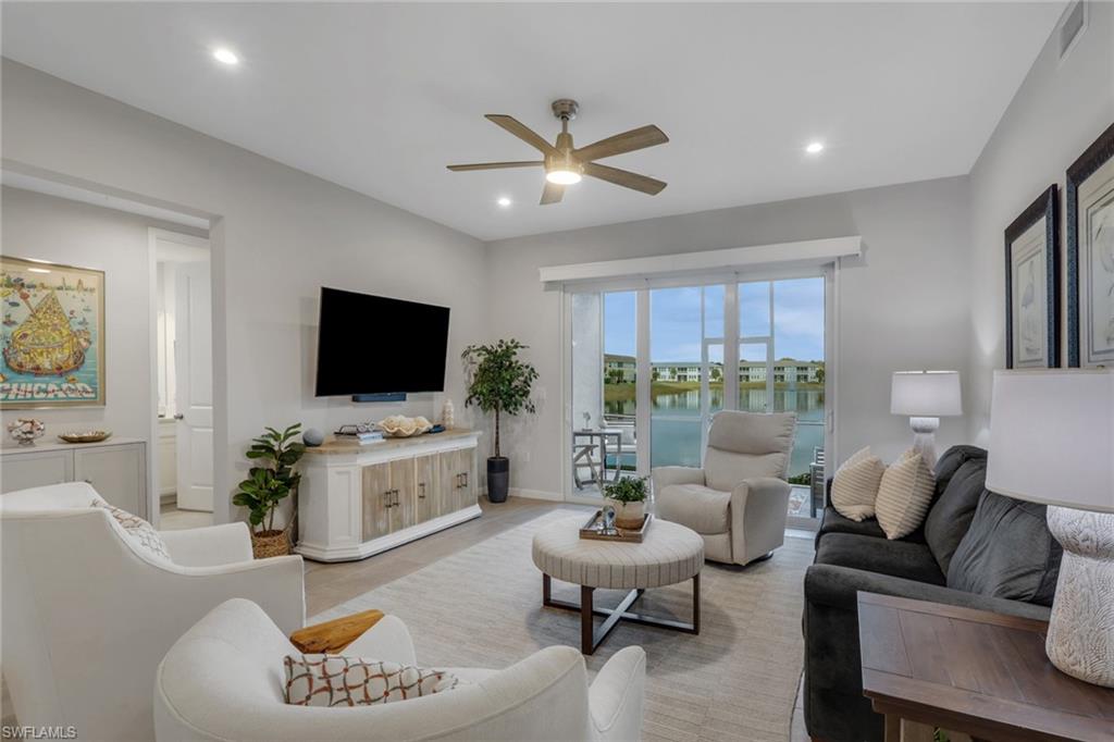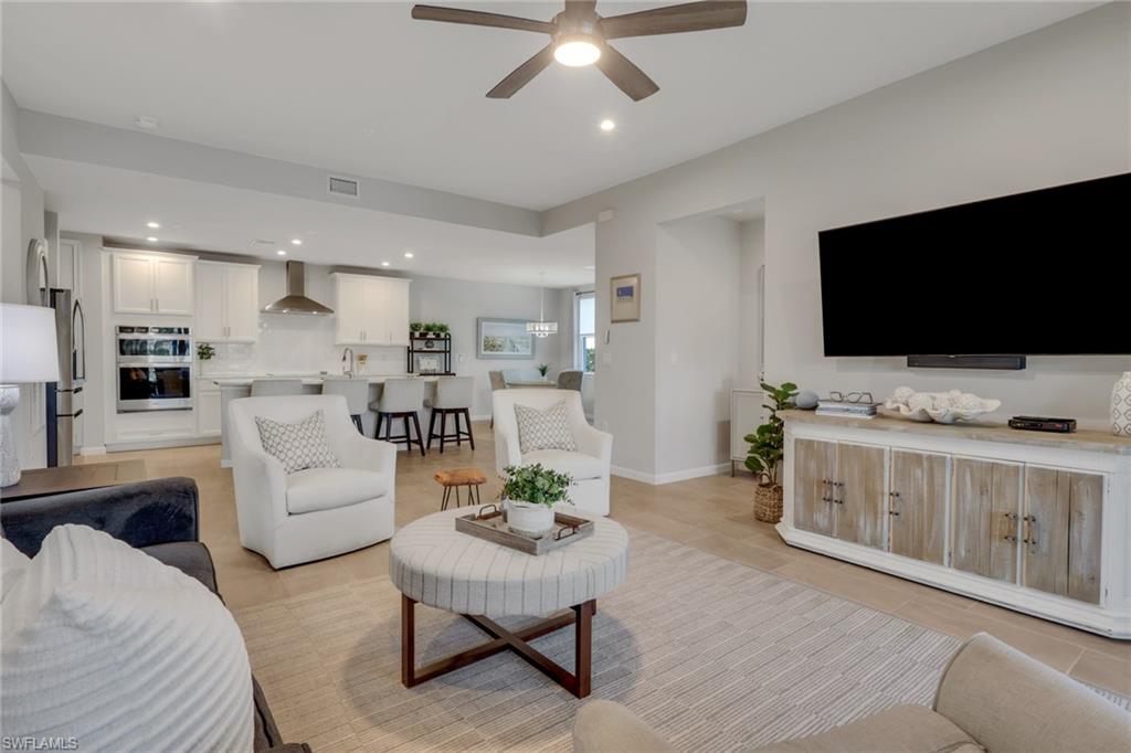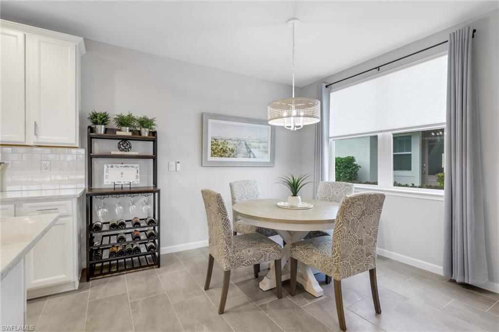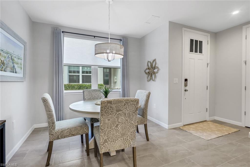 Welcome to your pristine lakefront coach home in the gated community of Arboretum, ideally located just minutes from 5th Avenue South, the Gulf’s white sand beaches, and the very best of downtown Naples living. This beautifully appointed first-floor Carmel plan is offered fully furnished and move-in ready, presenting an effortless opportunity to step into the Naples lifestyle. Featuring two bedrooms, two baths, and a spacious two-car garage with a custom epoxy floor, the residence blends comfort, convenience, and coastal contemporary elegance. From the moment you enter, abundant natural light and tranquil lake views create a serene and inviting ambiance. The open-concept design seamlessly connects the kitchen, dining, and living areas, offering an ideal setting for both relaxed everyday living and entertaining. The gourmet kitchen is thoughtfully designed with quartz countertops, 42-inch premium cabinetry, a stylish backsplash, an electric cooktop, built-in wall oven and microwave combination, French door refrigerator with custom drawer and dual ice maker, and a large center island that serves as the heart of the home. The primary suite provides a peaceful retreat with generous closet space and a beautifully designed walk-in shower. Step outside to the screened lanai, where tropical landscaping and shimmering water views create the perfect backdrop for morning coffee or evening relaxation. Meticulously curated details throughout the home include custom remote-controlled blinds, elegant designer light fixtures, three ceiling fans, hurricane-rated doors and windows, a pocket screen entry, and volume ceilings that enhance the bright, airy feel. In addition to the spacious 2 car garage, the long driveway and nearby guest parking allows plenty of parking for visitors. Arboretum residents enjoy exceptional amenities just steps away, including a community clubhouse, resort-style pool, state-of-the-art fitness center, fire pit, grilling stations, and a dog park. Thanks to its elevated position, the community experienced no hurricane damage during the last three major storms, and flood insurance is not required. Ideally situated near the Naples Botanical Garden, Celebration and Sugden Parks, the new Boardwalk trail, and the Naples Pickleball Center—home of the US Open Pickleball Championships—you’ll also enjoy fabulous dining just outside your doorstep, including The Med, Seventh South, Rebecca’s, and The Real McCaw. This residence delivers the perfect combination of location, lifestyle, and value. Move right in and start living your best life in Naples!