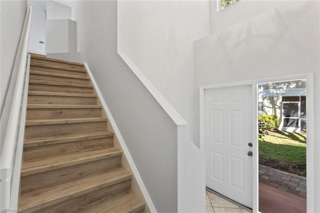 Welcome home! This bright second-floor end unit in Carlton Lakes offers extra privacy, abundant natural light, and a peaceful setting in the desirable enclave of Cypress Pointe at Carlton Lakes. This 3-bedroom, 2-bath home offers 1,928 square feet, vaulted ceilings, and a well-designed open floor plan. Its location makes it a great choice for full-time living, a winter retreat, or a rental investment, especially with access to a highly sought-after A-rated school district. The kitchen opens to the living area, creating an easy, comfortable flow. The split bedroom layout gives all occupants plenty of privacy, and the attached garage adds everyday convenience and extra storage. The primary suite features a rare private view you can enjoy each morning. The home includes two outdoor lanais to make the most of Florida living. The main screened lanai faces southwest, bringing in natural light all day and sunset skies in the evening, overlooking a lush setting with a fountain view. The second lanai provides bonus flex space for a reading nook, office, or quiet retreat. You are steps away from the Andover Drive pool and just around the corner from the main clubhouse, where residents enjoy a large community pool with swim lanes, tennis courts, a basketball court, small gym, playground, and fishing pier, all surrounded by scenic landscaping. Living in Carlton Lakes gives you easy access to Seed to Table for fresh groceries, farm-to-table foods, or weekly social events. This prime North Naples location offers convenient access to everything Southwest Florida living has to offer, including beaches, shopping, dining, and parks. The community is located west of I-75 with quick access to RSW Airport. The homes feature newer roofs, and the quarterly HOA fees include water, cable, internet, and access to all community amenities. A rare combination of privacy, location, and value in one of North Naples’ most desirable gated communities. Some images are virtually staged for illustrative purposes only!