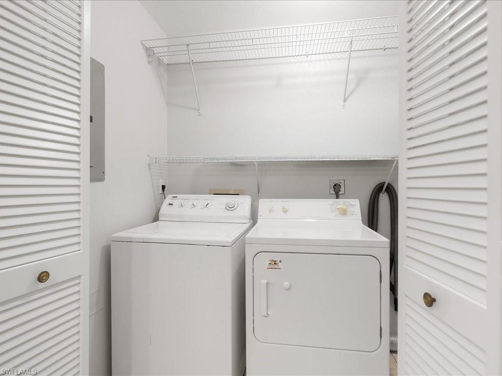 LOWEST PRICE IN REGENT PARK (NORTH NAPLES.) Regent Park Villas is truly one of North Naples' best-kept secrets. This quiet, low-density complex features villa-style casita homes in an absolute prime location close to everything. Full of possibilities, this two- bedroom, two full bath home is super clean and situated on a large lake with Southern exposure. It features both front and rear screened lanais, all tile flooring throughout as well as a newer washer, dryer, water heater and HVAC still under warranty. Both bedrooms have walk-in closets. And the second bedroom has access to the second full bath with a pocket door off the main living area for added privacy. All openings are protected with hurricane shutters. This property also includes covered parking (carport space) as well as extra storage. Villas II residents have use of three heated pools (including one right across the street) as well as the Regent Park Master Association pool and lighted tennis/basketball courts. The low HOA fee includes water, sewer, roofs, exterior paint, insurance on the building, landscaping, irrigation, reserves and professional management. No hurricane damage, not located in a flood zone, owner propane barbeque grills allowed and not a 55+ complex.