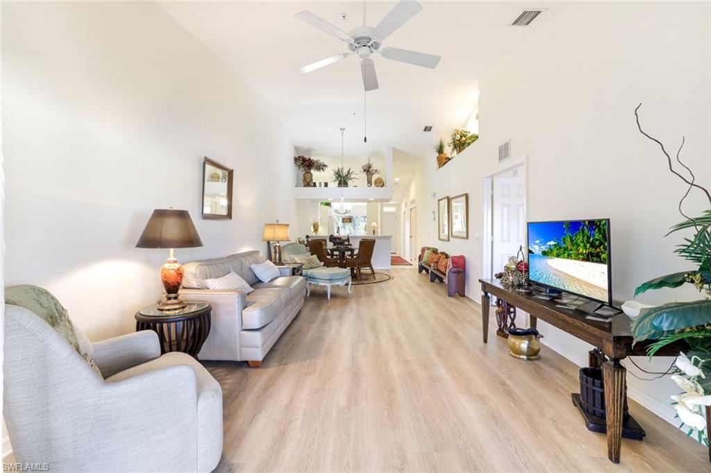 Enjoy breathtaking lake view from this beautifully maintained 2-bedroom, 2-bath second-floor condo in the highly desirable Falling Waters community. Featuring vaulted ceilings and an open, airy floor plan, this residence offers a light and bright living space perfect for relaxing or entertaining. The home has been meticulously cared for over the years and features tile and engineered hardwood flooring throughout — no carpet. The kitchen includes newer appliances, and the spacious screened lanai is the perfect place to unwind while taking in the amazing water views. Additional highlights include a detached oversized one-car garage and strong investment potential. Falling Waters is a pet-friendly community conveniently located just minutes from Downtown Naples, world-class dining, shopping, and the beautiful Gulf beaches. Whether you're looking for a full-time residence, seasonal retreat, or investment opportunity, this property checks all the boxes.