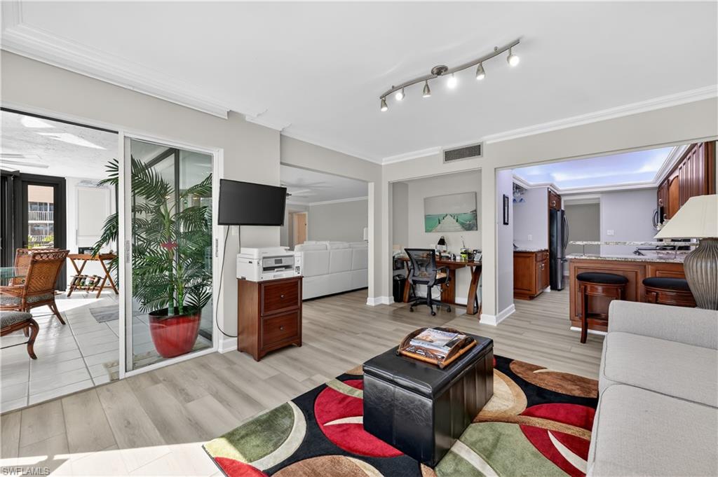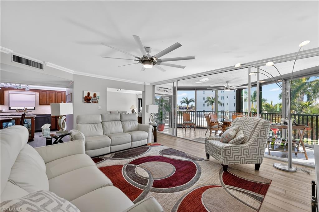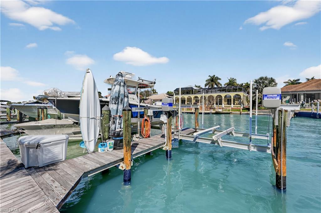 MARCO ISLAND "SALT-LIFE" BEACH-BOATING-FISHING-SUNSHINE & UPSCALE ISLAND LIFESTYLE! STUNNING DECORATOR REMODELED ($300,000+/-) 3 BEDROOM, 2 BATH, W/PRIVATE DEEDED BOAT DOCK (24) & UNDERCOVER PARKING! OPEN WATER IS LITERALLY OUT IN 5 MINUTES TO OPEN WATER. Big OPEN FLOOR PLAN, all "Wood Plank" Cortex Vinyl flooring in halls, living room, 3rd bedroom, kitchen and carpeting in Master and guest bedrooms. All "IMPACT" STORM RESISTANT WINDOWS & SLIDERS, for total storm protection and comfort and all windows with ELECTRIC CONTROLLED BLINDS. "CHEFS" completely new remodeled kitchen: Custom Wood Cabinets, Level 5 Granite Tops, All Samsung High End Stainless Steel Appliances, Tile Backsplash and (2) Separate Eat-At-Counters for family kitchen gathering. Lanai is completely enclosed, tiled and A/C. ALL ASSESSMENTS ARE PAID, ALL "SIRS" ENGINEERING OF BUILDING ARE COMPLETED WITH FLYING COLORS (2025), BUILDING ALSO HAS A NEW ROOF AND NEWER DOCKS AND SEAWALL. South end of the Island is "best in location" with low traffic, close to all the best restaurants, shopping, entertainment and for boating and fishing, out in minutes. HOME COMES WITH ONE YEAR "HOME WARRANTY" FOR TOTAL BUYER COMFORT. This Condo Home is a "Premier Group" BEST VALUE WATERFRONT CONDO BUY!