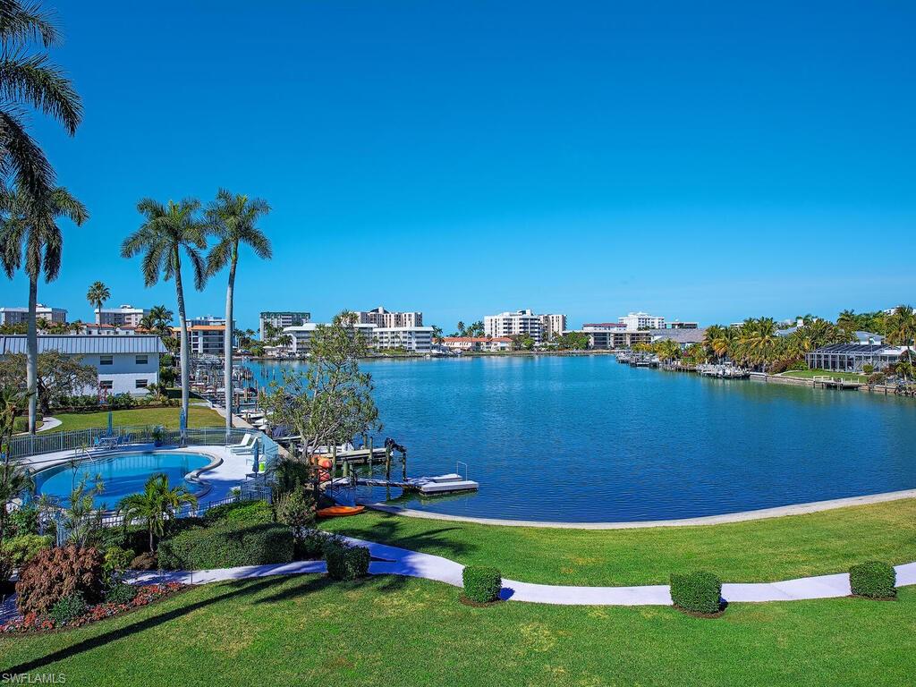 This penthouse unit features one of the most beautiful views in Naples. No need for renovations here. This 2 bedroom, 2 bath unit features Hardwood floors, renovated kitchen and baths and exceptional views. Best of all are the wonderful neighbors and community feel. Comes with instant best friends built in. Community pool and extra units available to rent at a nominal fee for family and friends. Boat docks can be leased for a nominal fee when available. Million dollar view priced to sell.