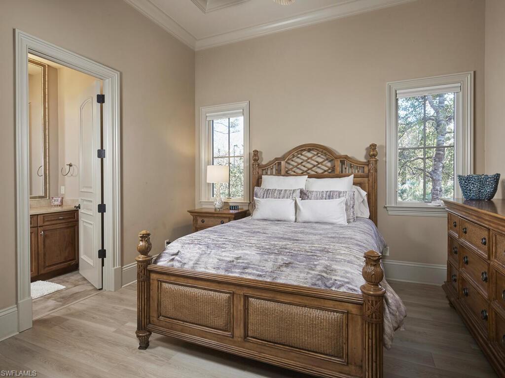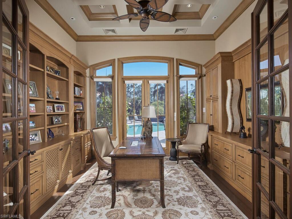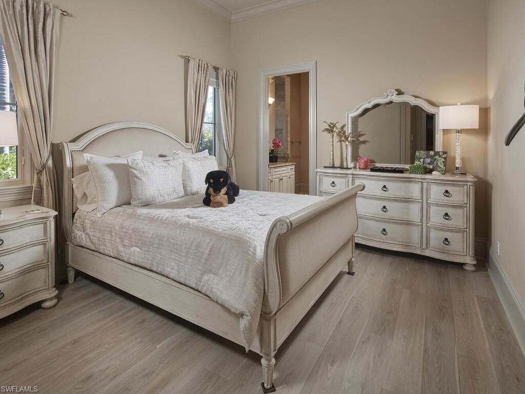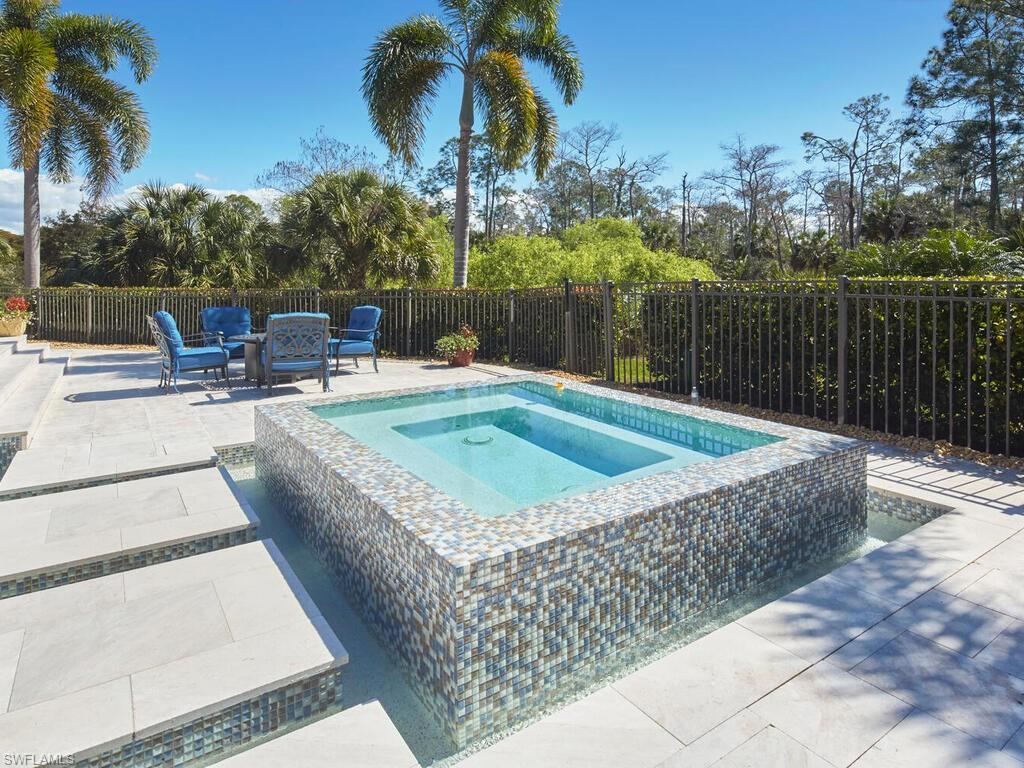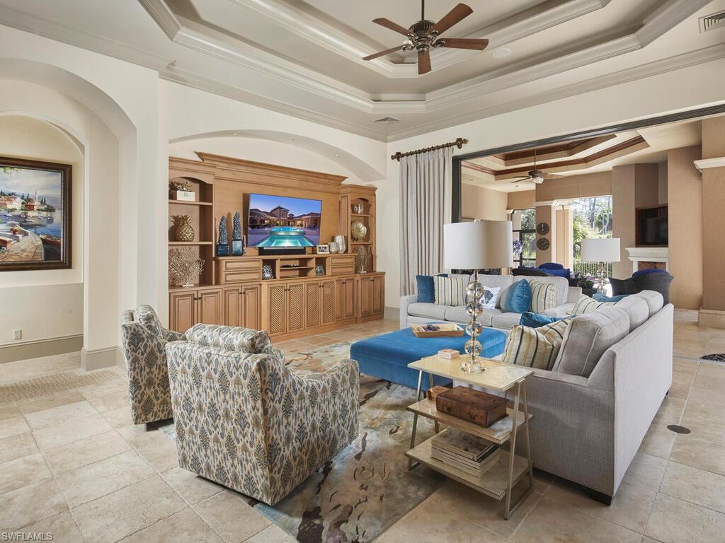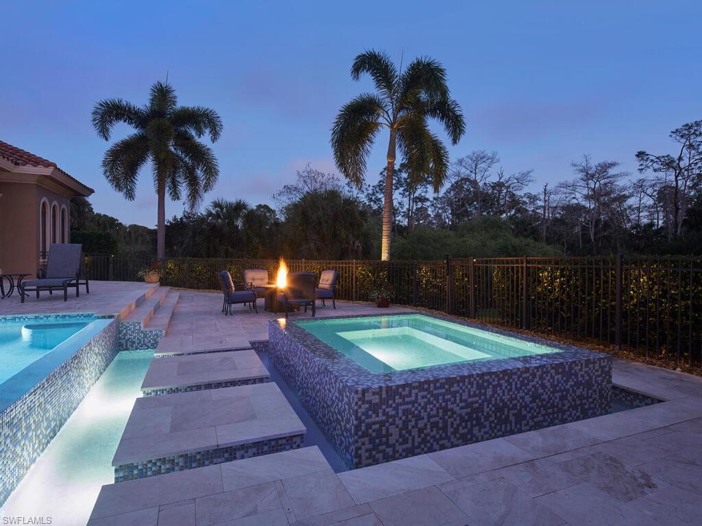 Golf membership slot available immediately! Custom McGarvey Estate with preserve views, renovated pool and spa, impact windows, whole-house generator and luxury amenities. This 4 Bedroom, 4.5 Bath + Den home spans an impressive 4,850 square feet of refined living space, designed for both grand entertaining and every day comfort. From the moment you enter, you are welcomed by soaring ceilings, expansive windows, and an open-concept floor plan filled with natural light. The formal Living and Dining areas flow seamlessly into a spacious Family Room, creating an ideal setting for gatherings. The Chef's Kitchen is a true showpiece featuring premium appliances, custom cabinetry and elegant finishes that blend beauty with functionality. Each of the 4 generously sized Bedrooms offers privacy and comfort. The additional Den provides a versatile space perfect for a Home Office, Library or Media Room. Step outside to a spectacular living oasis where the recently renovated (2023) pool and spa await you. All of this overlooks a serene preserve offering peaceful views and exceptional privacy providing an exceptional backdrop for enjoying morning coffee or evening sunsets. This elegant estate perfectly balances sophistication, comfort and the beauty of nature - offering living at its finest. Mediterra is one of SWFL's most desirable communities having it's own beautifully appointed private Beach Club, two Tom Fazio Championship Golf Courses, state-of-the-art Fitness Center, extremely active tennis and pickleball groups, bocce, eight miles of nature trails that meander through the community and much more.
