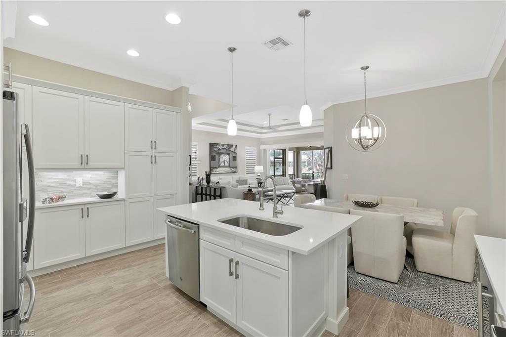 Experience refined coastal luxury in this exceptional, highly customized Dahlia villa, located in The Isles of Collier Preserve. This residence exudes the charm of a single-family home, that offers privacy, with meticulously upgrades to blend elegant design with modern comfort. The light-filled interior features porcelain tile flooring, plantation shutters, and new custom fans in each room. The upgraded laundry room makes doing laundry a joy. Retreat to the serene bedrooms, each equipped with closet systems. The primary bedroom closet has a built-in dressing table. Outdoor living is elevated with a pool and spa, a covered seating area, and a picture-screen lanai framing. Enjoy the peaceful western lake views. Lush custom landscaping enhances the home’s curb appeal and tranquil setting. This exceptional villa offers luxury, functionality, and serene water and sunset views within one of Naples’ most desirable gated communities. The Isles offer is set in an exceptional nature preserve. The amenities and active coastal living harmoniously blend. This villa can be purchased at additional cost with most all furnishings. The Isles of Collier Preserve is conveniently located less than 5 miles from world famour 5th Ave and Olde Naples, where you can indulge in a culinary adventure at renowned restaurants and explore charming shops, beaches. The Isles offers lifestyle living at its finest featuring a clubhouse designed with old Florida in mind. Amenties included a state-of-the-art fitness center, resort and lap pools, 14 pickleball courts, 6 tennis courts, bocce courts and a kayak launch. The Overlook Bar and Grill with its strunning water and sunset views makes any lunch or dinner an exceptional expericence. Make this home yours today.