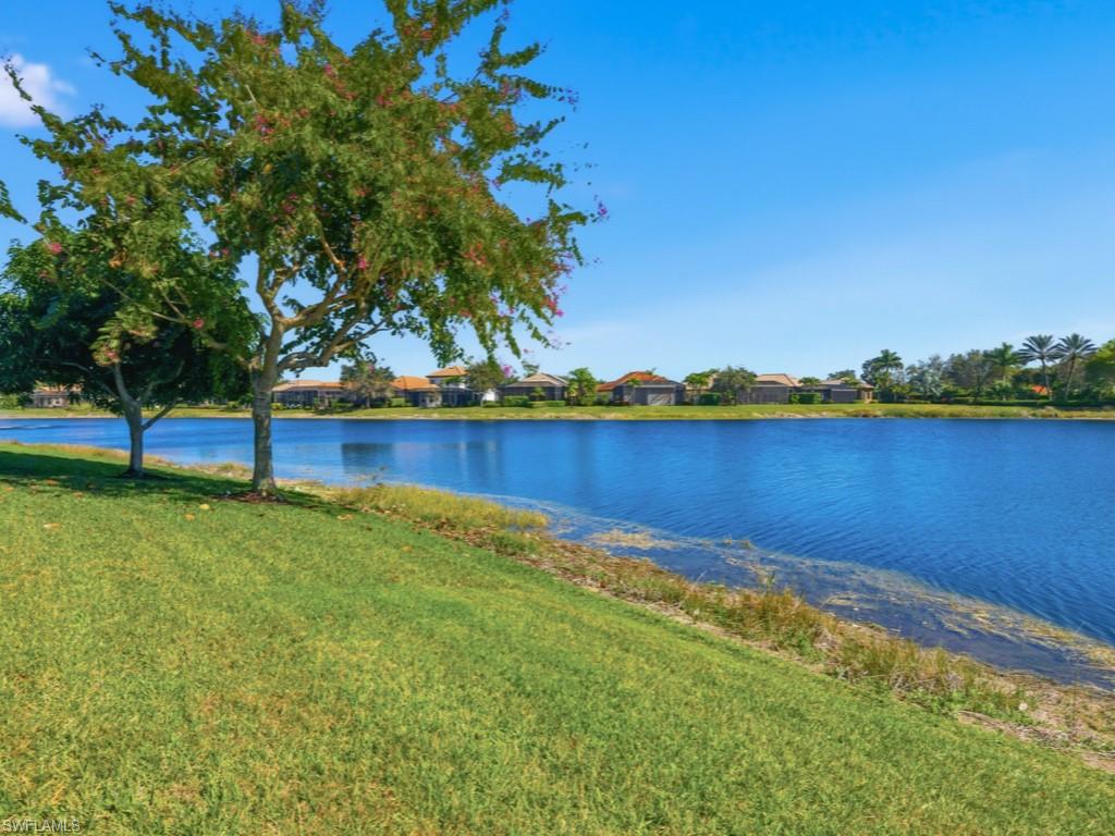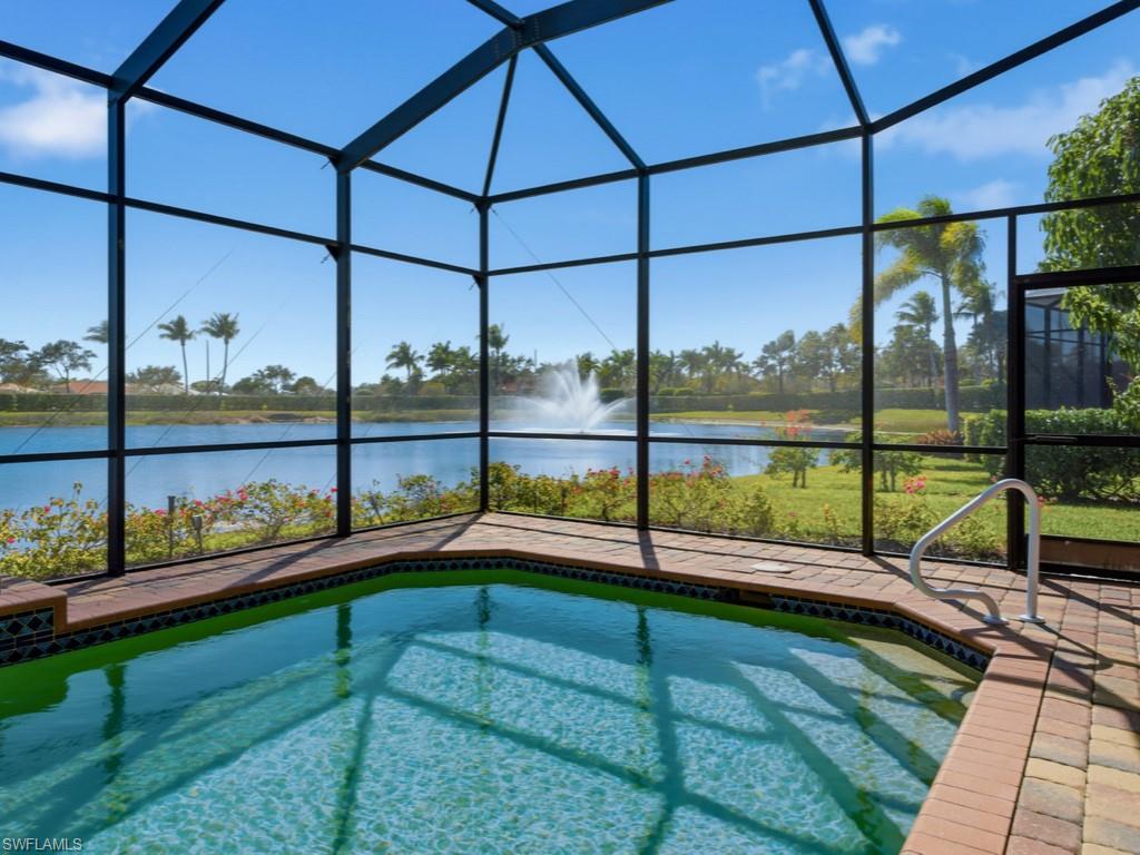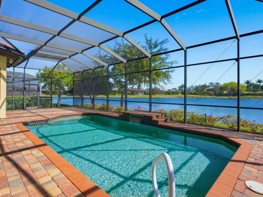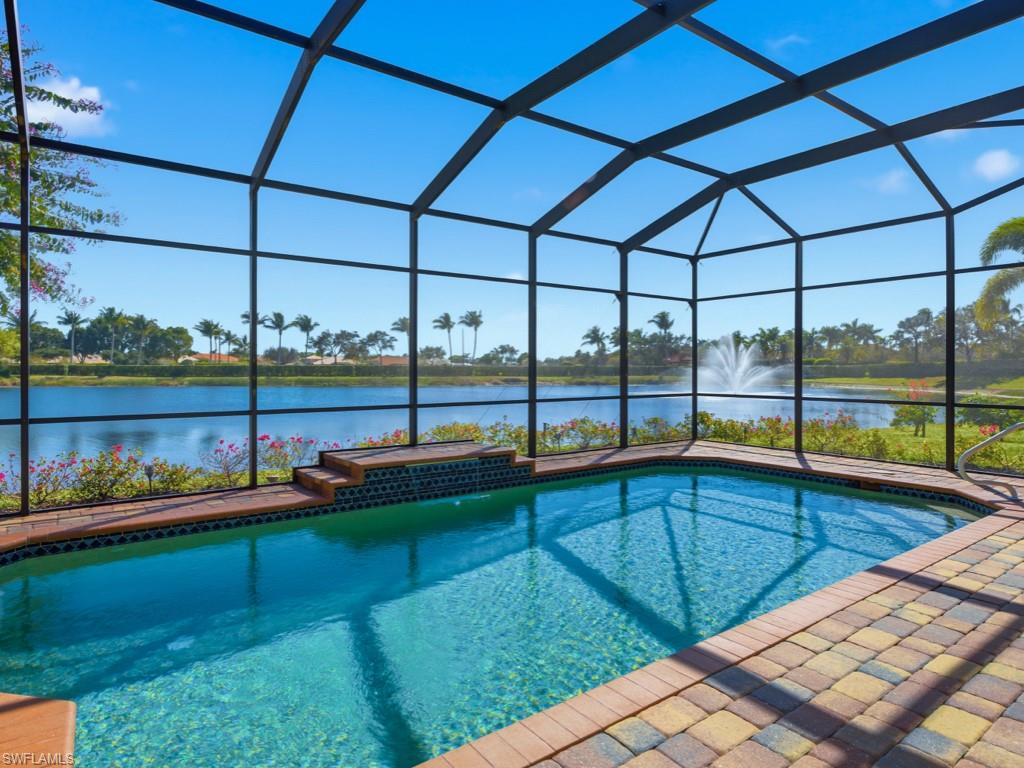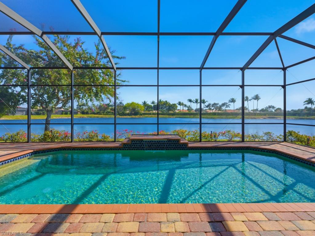Discover refined WATERFRONT LIVING in the exclusive, gated enclave of LAKOYA at Lely Resort!! Perfectly positioned on a PREMIUM LAKE VIEW LOT with desirable southeast exposure, this elegant four bedroom, two bath residence built in 2012 by Stock Signature Homes showcases volume ceilings, impact windows, and expansive interiors filled with natural light. Large windows frame sweeping, private lake views and tranquil natural scenery, where wildlife and lush surroundings create a peaceful backdrop. The thoughtfully designed floor plan includes a formal dining area and a beautifully remodeled kitchen appointed with premium appliances, flowing seamlessly into the spacious living area with custom hosting station and bar. Each bedroom features custom built-in closets, and one guest room includes a built-in Murphy bed for added versatility. The private backyard is a tropical retreat with beautiful landscaping and three fruit trees. The screened lanai features a saltwater, solar-heated pool, outdoor kitchen, and serene fountain views, all enhanced by the home’s southeast-facing orientation. A full-house generator and spacious three-car air conditioned garage provide comfort and convenience. Residents enjoy membership to the Players Club and Spa, while Lely Resort offers championship golf and is minutes to downtown Naples and Gulf beaches in Naples.