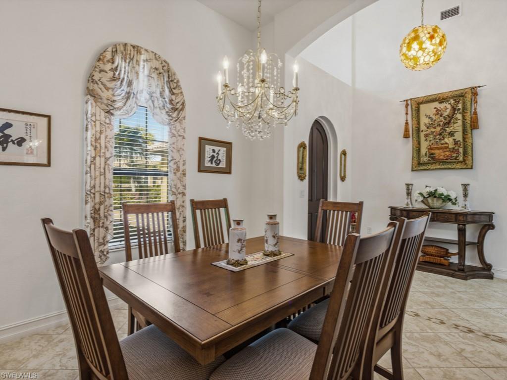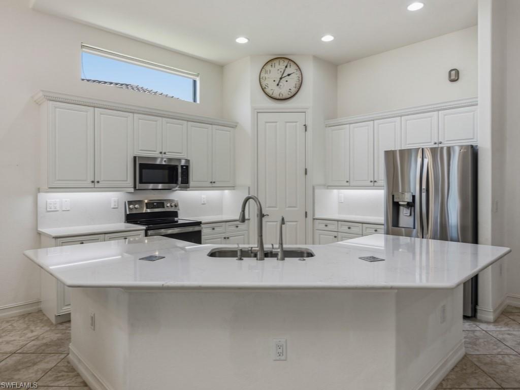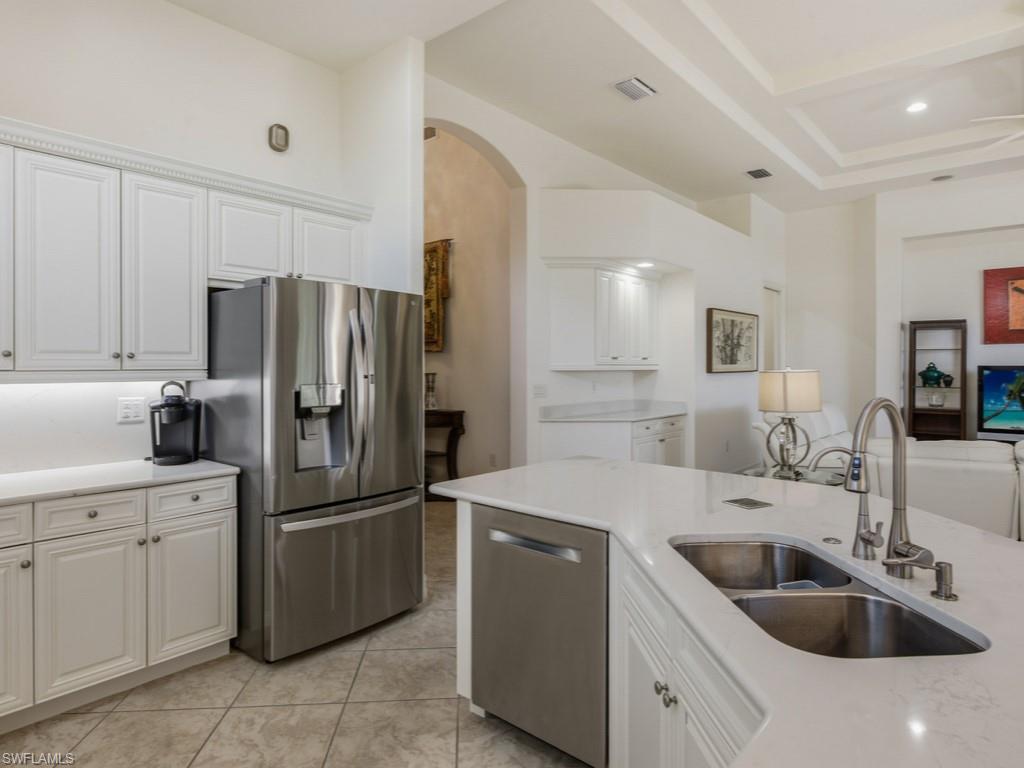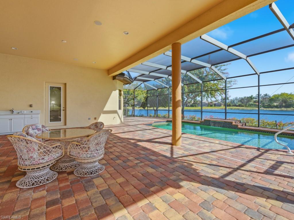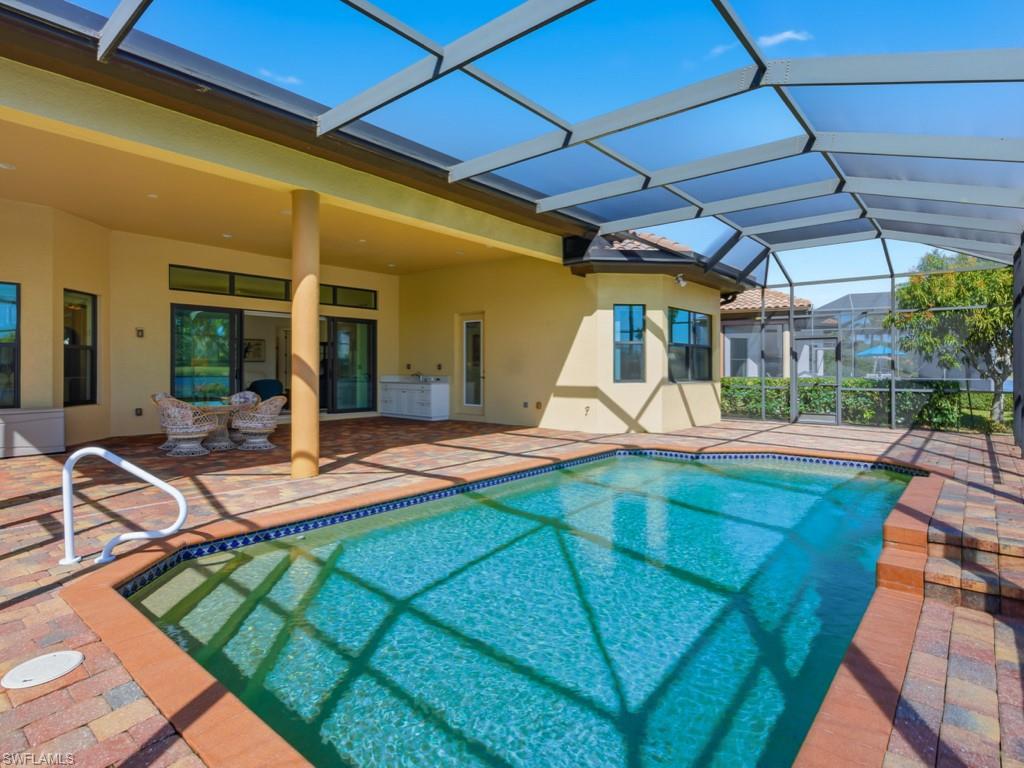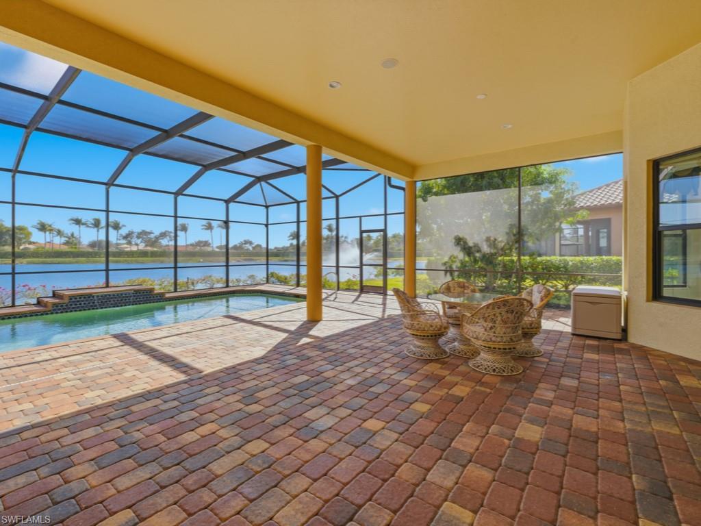 Discover refined WATERFRONT LIVING in the exclusive, gated enclave of LAKOYA at Lely Resort!! Perfectly positioned on a PREMIUM LAKE VIEW LOT with desirable southeast exposure, this elegant four bedroom, two bath residence built in 2012 by Stock Signature Homes showcases volume ceilings, impact windows, and expansive interiors filled with natural light. Large windows frame sweeping, private lake views and tranquil natural scenery, where wildlife and lush surroundings create a peaceful backdrop. The thoughtfully designed floor plan includes a formal dining area and a beautifully remodeled kitchen appointed with premium appliances, flowing seamlessly into the spacious living area with custom hosting station and bar. Each bedroom features custom built-in closets, and one guest room includes a built-in Murphy bed for added versatility. The private backyard is a tropical retreat with beautiful landscaping and three fruit trees. The screened lanai features a saltwater, solar-heated pool, outdoor kitchen, and serene fountain views, all enhanced by the home’s southeast-facing orientation. A full-house generator and spacious three-car air conditioned garage provide comfort and convenience. Residents enjoy membership to the Players Club and Spa, while Lely Resort offers championship golf and is minutes to downtown Naples and Gulf beaches in Naples.