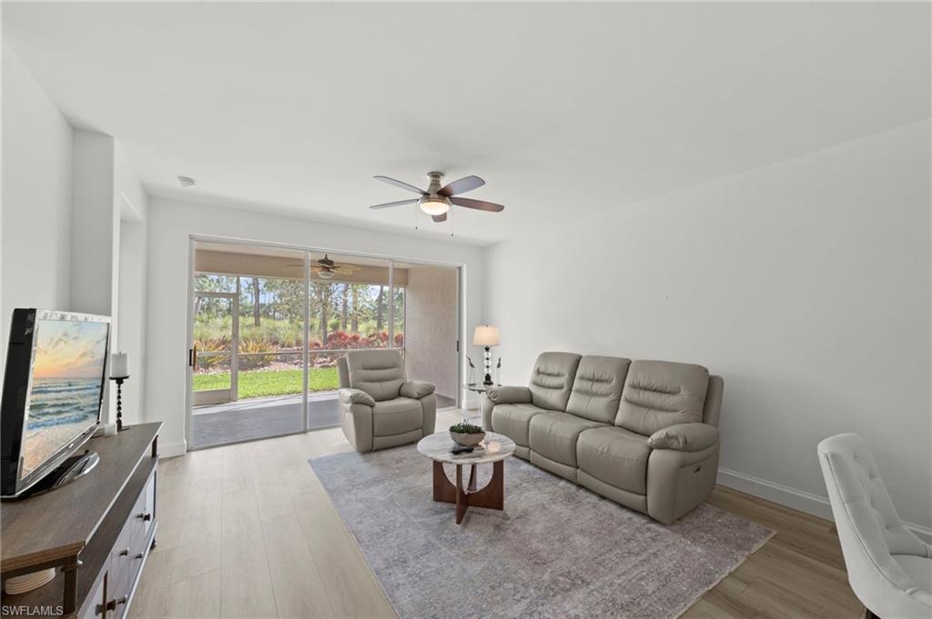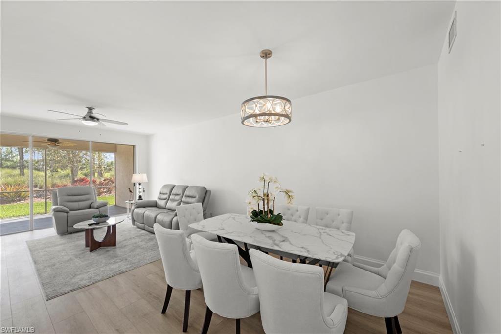 Beautifully renovated first-floor 2-bedroom, 2-bath condominium in Spring Run at The Brooks, offering an exceptional combination of upgraded interior finishes, functional improvements, and the highly sought-after bundled golf lifestyle in Estero. This move-in-ready residence has been thoughtfully reimagined with quality updates throughout, creating a more modern, open, and efficient living environment. Interior renovations include luxury vinyl tile (LVT) throughout and 5-inch baseboards, providing a clean, cohesive look and an updated feel from room to room. The kitchen area has been completely redesigned and reimagined to enhance both style and everyday functionality, with the addition of extra cabinetry for improved storage and a new kitchen island that adds workspace, seating potential, and a natural gathering area. The laundry space was also improved with a stackable washer and dryer configuration, allowing for more usable interior space and better overall flow within the unit. Both bathrooms have been updated with new vanities, adding to the home’s refreshed and well-maintained appeal. From the living areas and lanai, enjoy private water and golf course views, providing a relaxing backdrop and a true Southwest Florida lifestyle setting. The unit is also ideally located next to the community pool, offering convenient access to one of the neighborhood’s popular amenities. Spring Run at The Brooks is widely recognized as one of Southwest Florida’s premier bundled golf communities, featuring private golf membership, a renovated clubhouse, and an enhanced outdoor amenity area including an outdoor bar. In addition, owners in Spring Run and The Brooks have the opportunity to join The Commons Club, which, offers additional membership options and amenities for Brooks residents. The Commons Club membership opportunities are for Brooks residents only (including Gold/Silver/Bronze options) and amenities such as a private Beach Club, Health & Lifestyle Center, Enrichment Center, dining, and pickleball. Prime Estero location near shopping, dining, entertainment, Coconut Point Mall, boating and the beach.