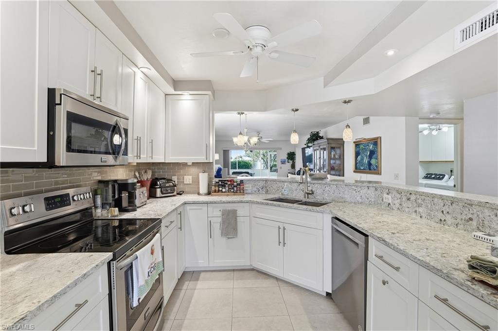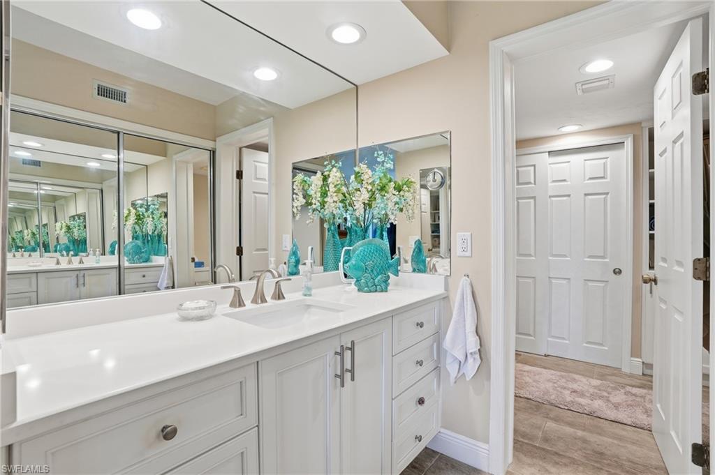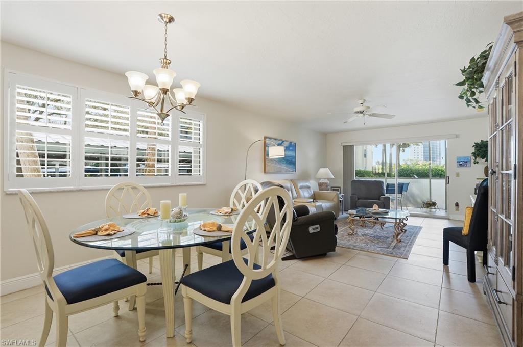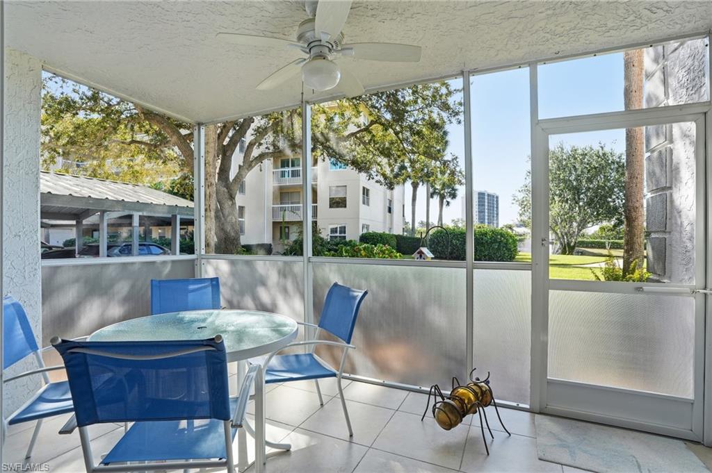 RARELY AVAILABLE...CORNER UNIT...STEPS TO THE POOL...CORNERSTONE RENOVATION...COVERED PARKING RIGHT OUT YOUR DOOR...NEVER FLOODED EVER..BEING SOLD TURNKEY! Welcome to 360 Horse Creek Drive, Unit 101, an immaculate two-bedroom, two-bath corner residence offering 1,380 square feet of living space and 1,490 total square feet, including a newly screened lanai with lake and fountain views. The corner location provides extra windows and abundant natural light throughout. The screened lanai offers convenient access to a nearby community pool, ideally positioned close for enjoyment while maintaining privacy. Covered carport parking is located directly next to the residence for easy, stair-free access. The kitchen features quartz countertops, stainless steel appliances, white soft-close cabinetry, recessed lighting, and a breakfast area. The primary suite includes lanai access, a walk-in closet, and a fully renovated primary bath (2024) with custom tile, glass shower enclosure, upgraded vanity, and fixtures. The guest bathroom has also been updated with a new vanity and glass-enclosed tub. Additional features include an open floor plan with immediate outdoor views, tile flooring throughout, plantation shutters, a laundry room, new electrical panel (2022), and full re-piping (2022). Located in the gated North Naples community of Wiggins Bay, Princeton Place residents enjoy optional membership to the Tarpon Cove Club, offering a waterfront restaurant, tiki bar, fitness center, tennis and pickleball courts, a beach shuttle, and boat docks. The property is conveniently located near Delnor-Wiggins Pass State Park and Vanderbilt Beach, with shopping, dining, and entertainment at Mercato just minutes away, and the airport approximately 25 minutes away. Surrounded by scenic walking trails, established neighborhoods, multi-million-dollar homes, and a private golf course across the street.