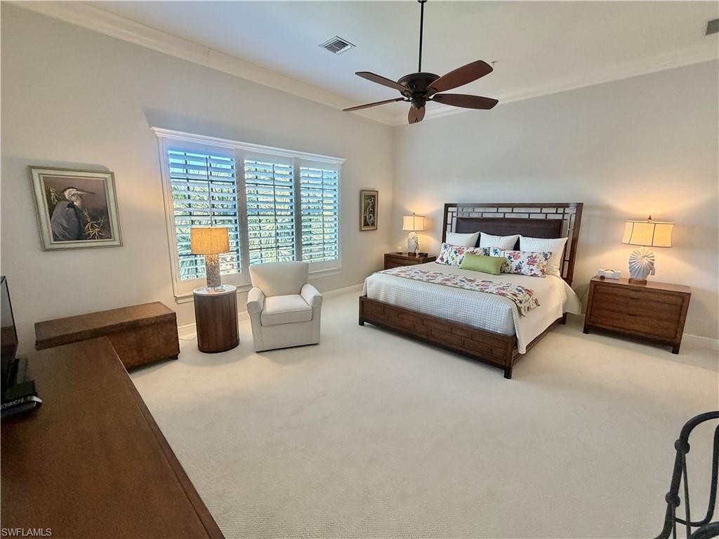 Don’t miss this exceptional opportunity to own a rarely available coach home in Treviso Bay, built by Taylor Morrison. This highly sought-after Francesca model offers 3 bedrooms plus a den, 2.5 baths, and an expansive 3,337 square feet of air-conditioned living space (4,094 total square feet). Designed with elegance, comfort, and security in mind, this well-maintained two-story residence features: Private elevator Dramatic 24-foot foyer with electric winch for easy chandelier cleaning Soaring 13.5-foot and 11.5-foot ceilings Solid-core doors and plantation shutters throughout Hurricane-impact glass, plus hurricane shutters on the back lanai and front door for added protection Also includes Gas Hot Water Tank, Gas Dryer and Gas Cook Top. Security alarm system Hardwood staircase Custom desk and built-in cabinetry in the den Double-door entry Wet bar — perfect for entertaining Enjoy a prime location just steps from one of the community’s six pools. Treviso Bay is an amenity-rich, gated, resort-style community offering access to the renowned TPC Treviso Bay. As a non-golf property owner, you can enjoy TPC golf privileges during the off-season (May through October). Residents also enjoy access to the LeBrezza Clubhouse, Country Club, six pools, full service spa, fitness center, tennis, pickleball, basketball courts, and beautifully maintained grounds. Centrally located in Naples, the property is just minutes from the area’s renowned beaches, shopping, dining, and golf courses. AMAZING SUNSETS CAN BE VIEWED FROM LANAI..... Experience luxury living in one of Naples’ most desirable communities.
