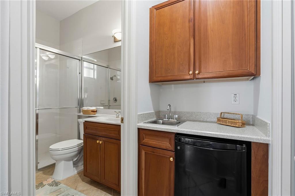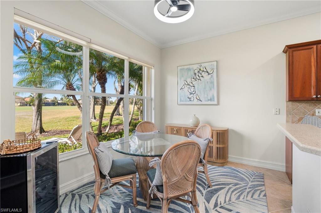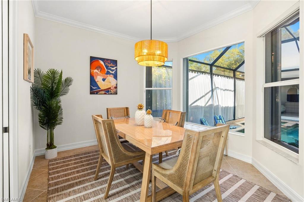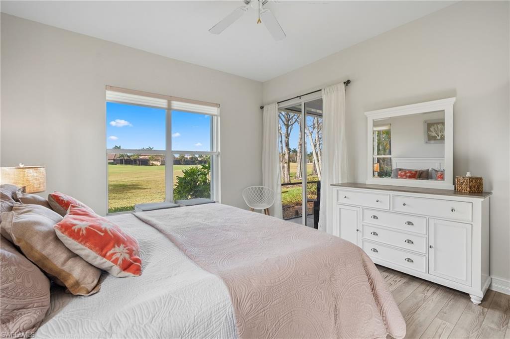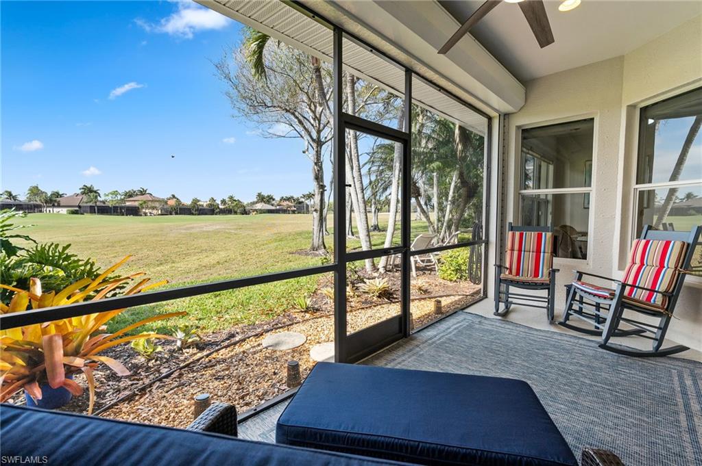 VIEWS, VIEWS, VIEWS!!!! Enjoy breathtaking, forever golf course views from this immaculate 3-bedroom, 3-bath residence in the highly desirable and pet friendly gated community of Masters Reserve at Lely Resort. Bright, and airy this open-concept floor plan showcases expansive fairway views and seamless indoor-outdoor living. The eat-in kitchen features Corian countertops, new appliances, walk-in pantry, breakfast bar, and a separate dining area ideal for both casual mornings and elegant entertaining. The spacious great room is highlighted by soaring 16-foot ceilings and opens to a private outdoor retreat complete with a sparkling saltwater pool, spa, and generous patio for western views of spectacular sunsets over the Mustang Golf Course designed by Lee Trevino.. The primary suite offers a peaceful sanctuary with dual walk-in closets and generous en-suite bath featuring a soaking tub, walk in shower and dual vanities. A separate private casita with French doors opening to the pool area includes a kitchenette and full bath, providing exceptional flexibility as a guest suite, home office, media room, or creative space. Additional upgrades in this Stock Development built home includes a new roof (2024), new A/C (2024), freshly repainted interior, newly painted pool cage, epoxy garage floor and new washer and dryer. Located in a no-flood zone for added peace of mind and hurricane shutters throughout. Enjoy immediate membership at award-winning Players Club & Spa that features resort-style pools, fine dining, a tiki bar and grill, state-of-the-art fitness facilities, a full-service spa, tennis and pickleball courts, bocce, and a vibrant calendar of social events designed for an active Southwest Florida lifestyle. Ideally located near Naples and Marco Island and just minutes from pristine Gulf beaches, world-class shopping, and renowned dining destinations. With low HOA fees, this property delivers the best of luxury living, functionality, and location in Southwest Florida. THIS IS A MUST SEE!!!