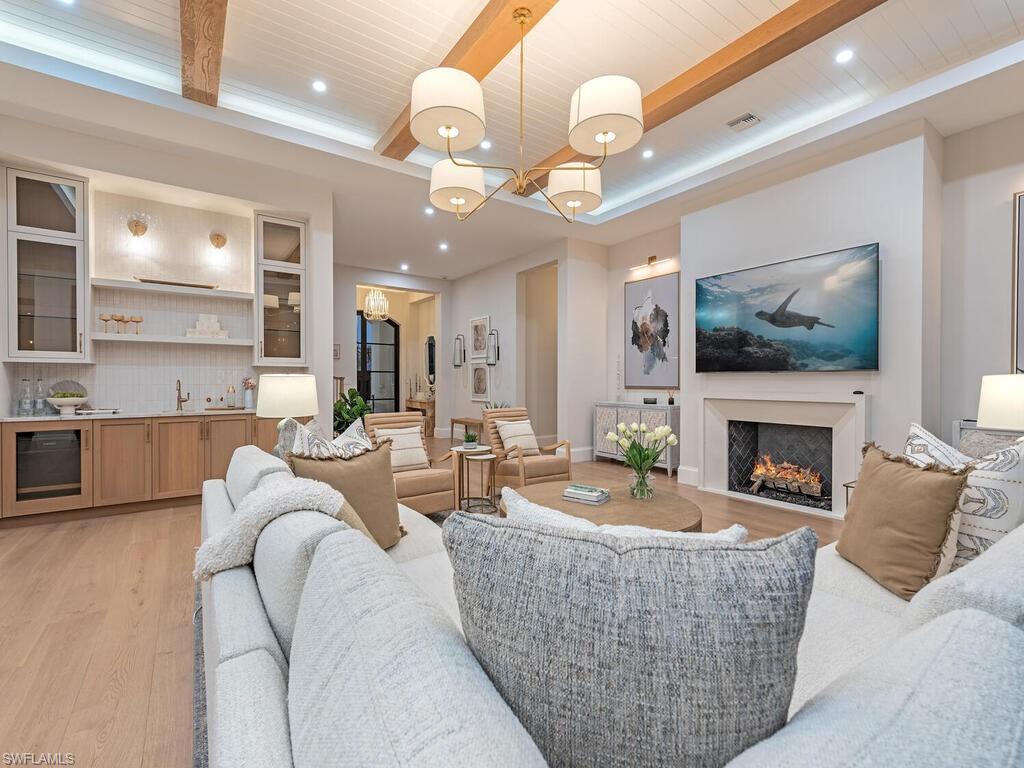An exceptional achievement in elevated coastal architecture, this newly completed Park Shore residence captures the essence of refined Naples living. Crafted by T.B. Price Builders with architectural vision by T. Boyatt and interiors by R & Co. Designs, this Sand Dollar 2025 winning home reflects architectural distinction with a thoughtful commitment to sustainability. Encompassing approximately 5,135 square feet, the layout features five luxurious en suite bedrooms and a private den, curated to enhance natural light and showcase lush surroundings. European wide-plank flooring, quartzite surfaces, and custom coffered ceilings introduce warmth, timeless craftsmanship, and eco-conscious sourcing. The coveted southern exposure fills the outdoor living areas with all-day light, highlighting the fully appointed summer kitchen and resort-style setting ideal for al fresco sunset gatherings. Inside, a chef-caliber kitchen showcases Sub-Zero, Wolf, and Dacor appliances, seamlessly blending performance with sleek elegance, while impact-rated Andersen windows optimize energy efficiency. Dual first-floor offices, a private elevator, and a versatile upper-level retreat add functionality and flexibility. Energy-efficient systems and environmentally mindful finishes underscore a residence designed for both luxury and longevity, just moments from Venetian Village, Waterside Shops, and Fifth Avenue South.