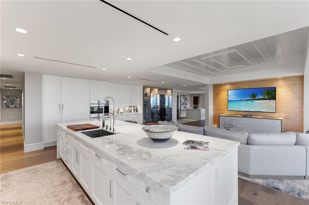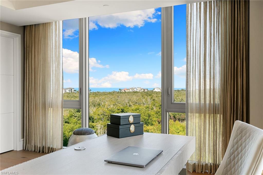 Rarely available end-unit condominium, offering forever unobstructed Gulf views from the entire northwest side of the building, with floor-to-ceiling windows framing breathtaking views to the west and northwest overlooking the Gulf and serene eastern views of the golf course. High above the Gulf, Mystique is the newest gem in Pelican Bay’s skyline, offering majestic vistas of the sparkling blue waters and mesmerizing sunsets. Recently reimagined by a renowned interior designer, this home showcases a refined design palette, blending luxury and tranquility in a spacious open floor plan, ideal for entertaining and relaxation. Enter into this exceptional residence and be welcomed by a series of refined finishes that exemplify casual elegance. The chef-inspired kitchen is outfitted with exquisite Carrara marble countertops, Wolf and Sub-Zero appliances, and sleek white cabinetry, while the beauty of Legno Bastone Italian wood floors flows throughout. The primary suite offers a private retreat with panoramic Gulf views from the bedroom and the spa-like bath. Complete with five-bedroom suites and abundant storage, this home is designed for comfortable living at every level. Includes EV charger. Mystique isn’t just about stunning aesthetics, it’s about an elevated lifestyle. Enjoy the convenience of 24/7 concierge services, making every need effortless. As a resident of Pelican Bay, you gain access to an array of world-class amenities, including private beachfront dining, beach access with chair and umbrella service, tennis and pickleball courts, fitness center, and miles of scenic recreational and biking paths. Just minutes from Artis-Naples and upscale Waterside Shops, Mystique offers a balance of peaceful living and easy access to culture and shopping. Accept this invitation to experience a life of unparalleled luxury, beauty and convenience.
