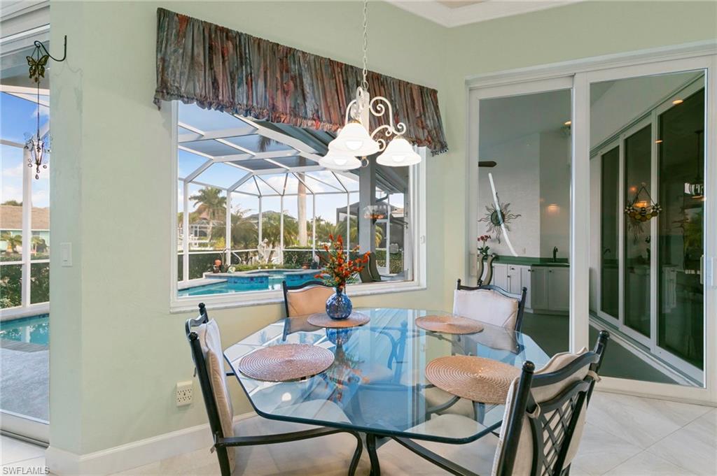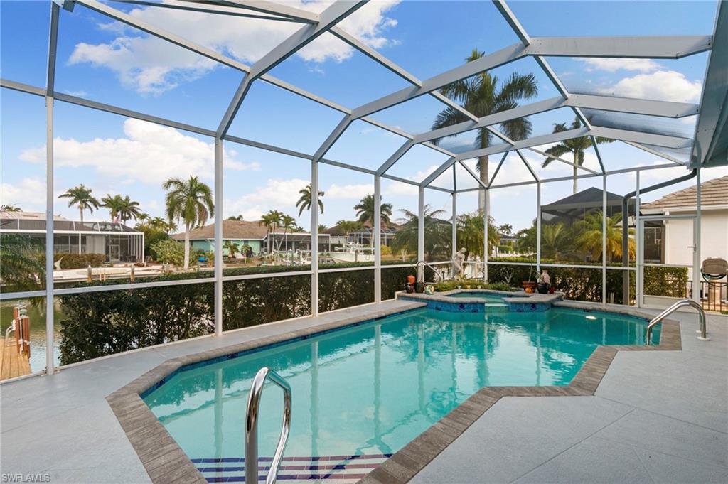 Exceptional Marco Island waterfront residence offering magnificent water views and direct access to the Gulf or Marco River. This beautifully designed 3-bedroom, 2.5-bath home also features two versatile dens, ideal for a home office, media room, or additional guest space. Architectural details include tray and vaulted ceilings, recessed lighting, and expansive impact glass pocket sliders along the rear of the home that seamlessly blend indoor and outdoor living while showcasing the stunning waterfront backdrop. Designed for both beauty and durability, these impact-resistant sliders flood the interior with natural light while providing enhanced storm protection and energy efficiency. The open layout maximizes natural light and captures serene water views throughout the main living areas. Step outside to your private oasis featuring a solar-heated pool and spa — perfect for year-round enjoyment. Electric shutters provide added convenience and storm protection, offering peace of mind. Being offered furnished, this home presents a truly move-in-ready opportunity, allowing you to immediately begin enjoying the coveted waterfront lifestyle. With Gulf access, breathtaking views, impact-rated glass features, and thoughtfully designed living spaces, this Marco Island residence delivers the ultimate Southwest Florida waterfront experience.