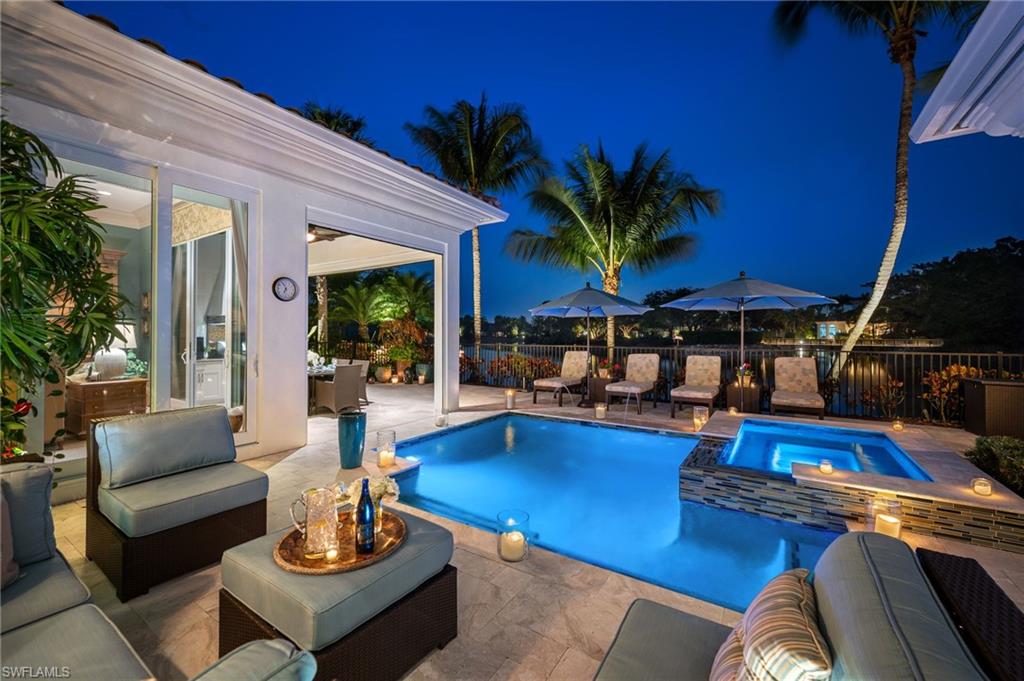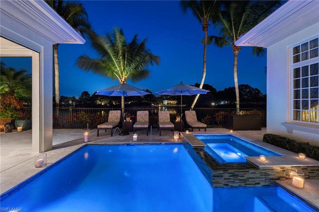 Tucked within a quiet, interior enclave of Grey Oaks Country Club, this distinguished lakefront residence offers a rare blend of privacy, architectural presence, and sweeping natural beauty. Set against expansive water views overlooking Banyan Island’s protected bird sanctuary, the home captures a sense of calm that is both immediate and enduring. Originally designed as a model home, the residence reflects thoughtful craftsmanship and timeless design. Nearly every principal room is oriented toward the lake, allowing natural light to pour through impact sliding glass doors and frame tranquil vistas of water, sky, and preserve. Volume ceilings—including dramatic 16-foot ceilings in the living and dining rooms and soaring ceilings in the primary suite—enhance the sense of openness, while neutral tile flooring and refined millwork create an atmosphere of understated sophistication. The living spaces are equally suited to intimate evenings and elegant entertaining. The formal dining room offers an impressive setting for hosting, while the family and living rooms flow seamlessly to the expansive screened lanai. Recently redesigned with a travertine deck, the outdoor space features a sparkling pool and spa, automated screens, and a fully appointed summer kitchen—all positioned to maximize the long, private lake views. The kitchen is beautifully appointed with custom cabinetry, generous storage, and premium finishes, complemented by a charming morning room with a built-in window seat. A large private office with custom built-ins and French doors opening to the courtyard provides an inspiring and quiet retreat. Four spacious bedroom suites, each with high ceilings and walk-in closets, offer comfort and privacy for family and guests. The primary suite serves as a serene sanctuary, complete with a sitting area overlooking the lake, dual vanities, a soaking tub, separate shower, and a private water closet with bidet. Modern comforts include a Lutron lighting system, Sonos sound system, whole-house 27KW Generac generator with 500-gallon propane tank, hurricane protection throughout, lightning rod system, Sentricon termite protection, and a new roof in 2017. The home has been meticulously maintained, offering both luxury and peace of mind. A three-car garage with dedicated golf cart parking further enhances convenience Grey Oaks is one of Naples’ most prestigious private golf communities, featuring three championship golf courses, two clubhouses, and four dining venues, including our most recent Market to GO. Residents enjoy a 30,000-square-foot Wellness Center with spa services, tennis, pickleball, bocce, and a vibrant social calendar. Centrally located, Grey Oaks provides seamless access to downtown Naples, the Gulf’s white-sand beaches, and exceptional shopping and dining—delivering a lifestyle defined by elegance, recreation, and connection. Grey Oaks is such a wonderful place to live in…Welcome home!