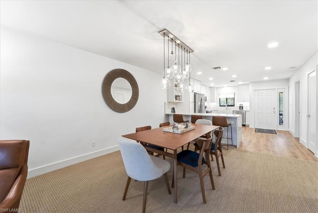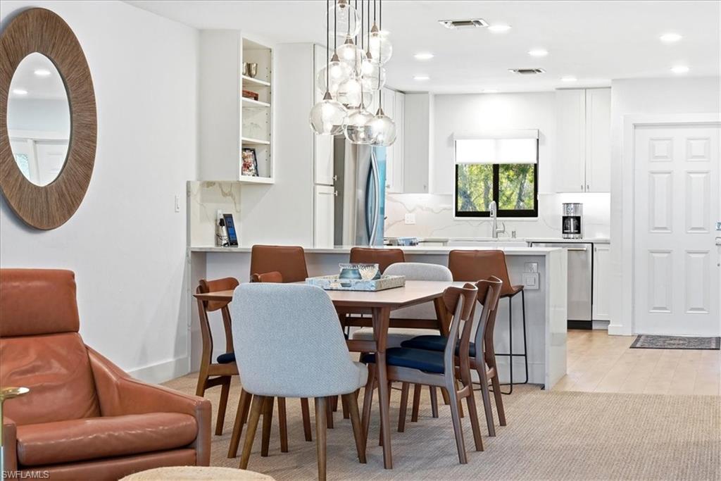 Welcome to your FURNISHED, dream coastal retreat! Nestled in the heart of Naples, 4062 Belair offers the perfect blend of modern comfort and serene Florida living. This beautifully RENOVATED unit boasts 2 spacious bedrooms and 2 bathrooms, designed to provide both style and functionality. Step inside to discover a light-filled open layout, complemented by sleek finishes and warm tones. The chef's kitchen features quartz countertops, stainless steel appliances, and ample storage perfect for entertaining or whipping up your favorite meals. The living area flows seamlessly into a private screened lanai, where you can sip your morning coffee or unwind with evening cocktails while enjoying sunset colors and lush tropical views. Your primary suite is a true sanctuary, complete with a walk-in closet and an en-suite bathroom. A generously sized second bedroom and additional full bathroom offer plenty of space for family or guests. Highlights include luxury plank flooring throughout, a brand-new HVAC system (2024), sleek recessed high-hat lighting, and a chic shiplap-trimmed living room TV wall that adds a designer touch. The updated EcoBee thermostat lets you control your environment with ease, while impact windows and doors provide peace of mind. The lanai features fresh flooring, a new screen, and NEW electric hurricane shutters. Plus, the dedicated carport adds convenience, and the property comes with access to Park Shore’s exclusive amenities for a fee. This community also offers a heated swimming pool to enjoy year-round. Whether you're looking for a luxurious getaway or a low-maintenance dream condo, this property has it all.
