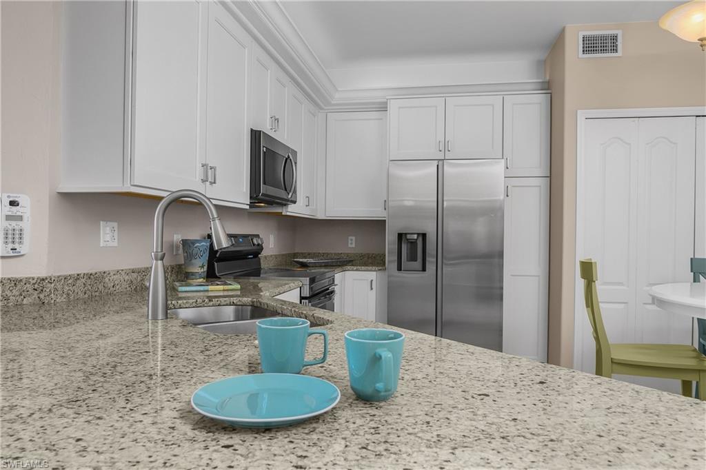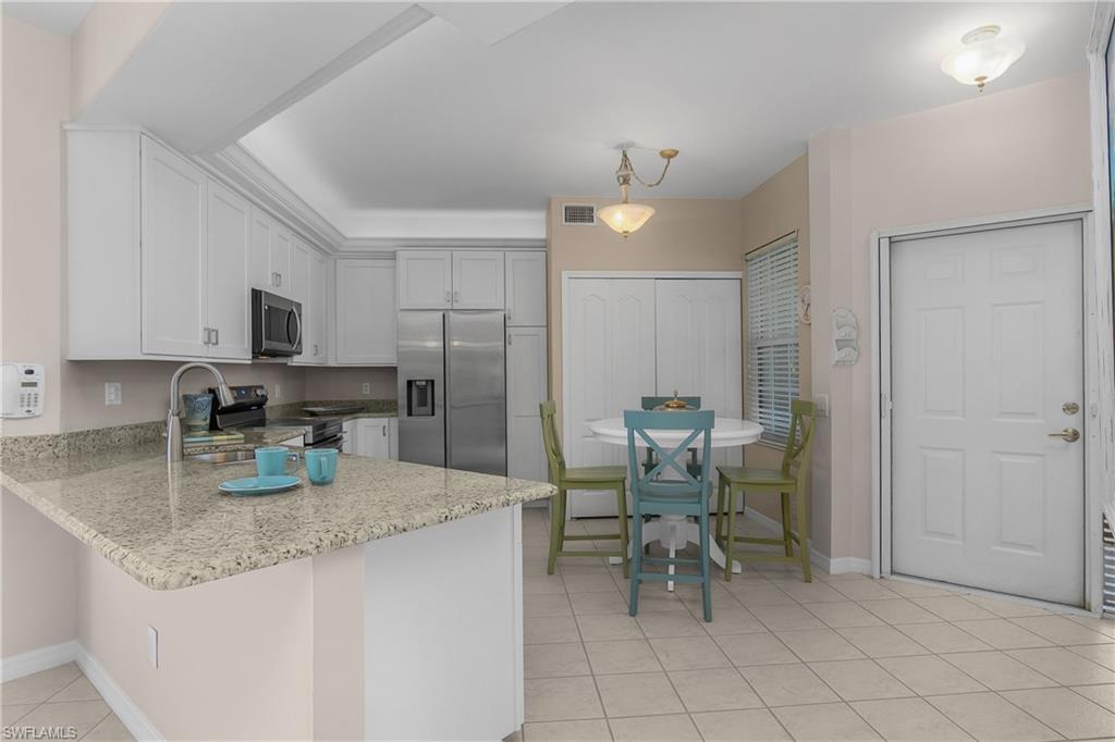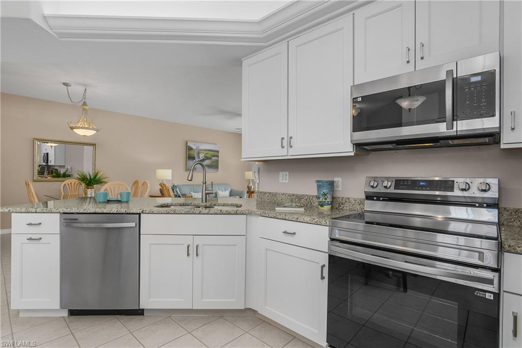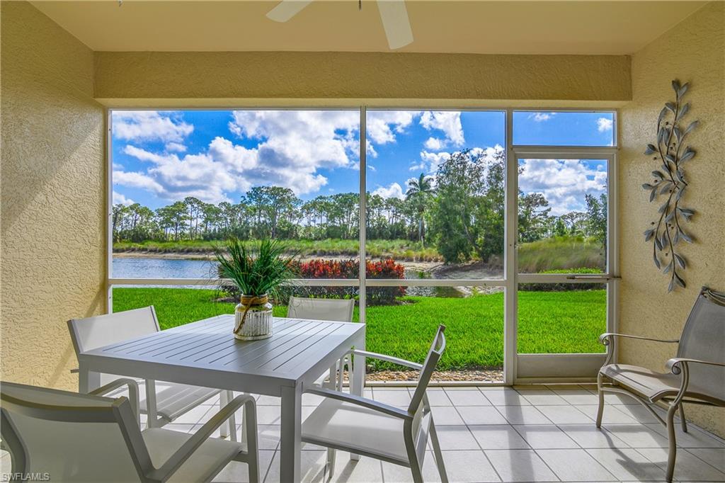 The friendly Country Club lifestyle of Spring Run at The Brooks, a private golf community, is waiting for you! This move-in-ready, renovated Gardenia Model Condominium will meet your expectations, featuring granite countertops and new Stainless Steel Appliances in the kitchen, updated baths with new vanities with granite, newer AC, impact windows and newer roof. Enjoy the serenity of the lake and golf course views as you sip your morning beverage contemplating your very active, fun filled day. The Primary Bedroom is en-suite featuring a walk-in-closet. The 2022 renovated John Sanford 18 hole golf course can be fun and yet a challenge. Spring Run has 4 brand new Har-Tru Tennis courts and 3 new Lighted Har-Tru Bocce courts. The newly renovated 22,000 sq. ft. clubhouse has a fitness center, pro shop, library, full service dining room (where there are many events). Just outside the clubhouse doors enjoy the beautiful and inviting resort style pool area, complete with outdoor dining and beverages. There is something for everyone at Spring Run! A short drive to RSW Airport, shopping, dining and our pristine beaches. A private Beach Club Membership is also available through The Commons Club.