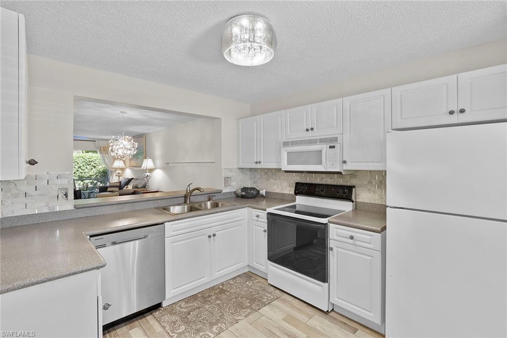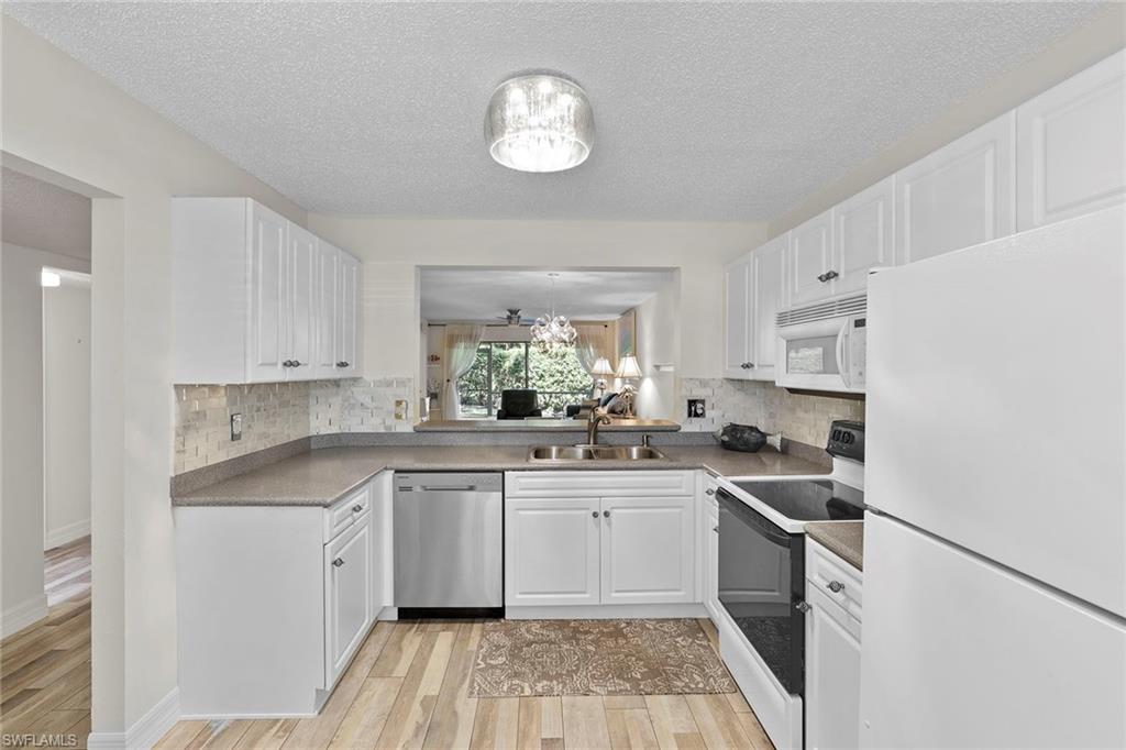 First-floor updated condominium in Berkshire Lakes! Go inside this two-bedroom, two-bath light and bright condominium. Turnkey furnished with everything you'd need to start enjoying the best Naples lifestyle. Updated flooring, kitchen, backsplash and baths. The primary bedroom features a walk-in closet and en-suite bath. Open-concept living and dining area with split bedrooms and an oversized storage/laundry room, along with a convenient carport only a short distance from the front door. Go outside to your private screened-in lanai overlooking lush tropical landscaping and quiet tranquil preserve. Berkshire Lakes is minutes from beaches and downtown Naples for dinner and shopping. Community pool that is a short distance, as well as bike and jog paths, a community recreation room and sparkling blue lakes that fill the community. Come live your best life!