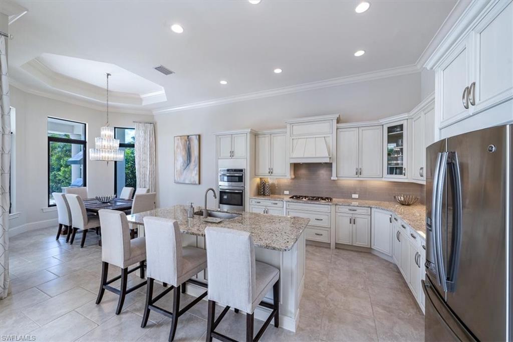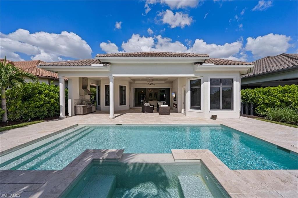 TRANSFERABLE GOLF MEMBERSHIP INCLUDED!! - Welcome to this beautiful sought after Joliette model by Stock Signature Homes offering 4 spacious bedrooms plus an office (which can easily be converted into a 5th bedroom with closet, if needed) and 4 full baths. The property is designed for effortless indoor/outdoor living, with wide openings that seamlessly connect the main living areas to the enhanced backyard. Enjoy a south-facing lanai with full sun on the pool all day, views down the 4th hole of the Lakes Course, and optional privacy with tall Clusia hedges. The outdoor space was updated in 2021 and features multiple seating areas, a summer kitchen, and a sparkling pool and spa. Interior highlights include soaring ceilings, refined finishes, upscale lighting, and elegant wainscoting in the dining room. Recent upgrades include new HVAC systems (2024), a new pool pump (2024), and enhanced landscaping. The Escala HOA provides landscaping, pool maintenance, pest control, and additional services, offering true peace of mind for residents year-round. An oversized three-car garage provides abundant space for vehicles, bikes, and golf carts. And as a member of Quail West, enjoy the convenience of private golf cart access throughout the community and arrive at either of the 2 Arthur Hills designed golf courses within minutes of leaving your garage. Indulge in luxury amenities, including a beautiful clubhouse, three distinctive dining venues, a state-of-the-art fitness complex, full-service spa, tennis, pickle ball, bocce, and an exceptional year-round social calendar offering the ultimate country club lifestyle. This is luxury living at its finest!