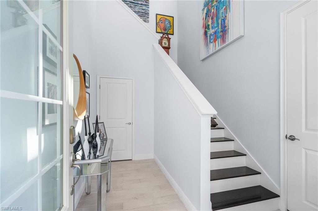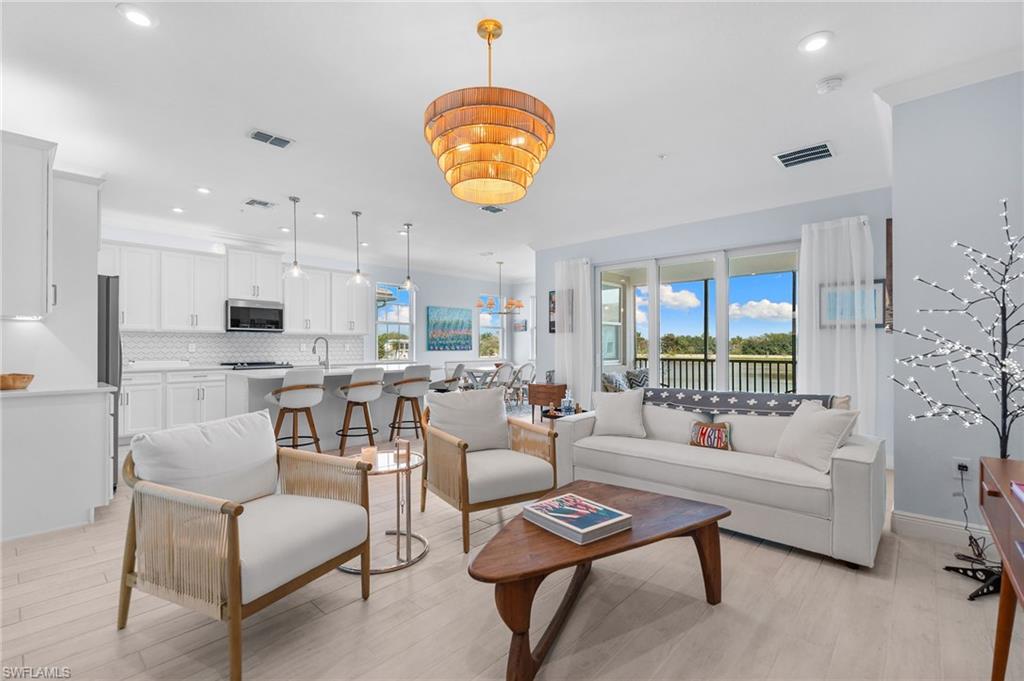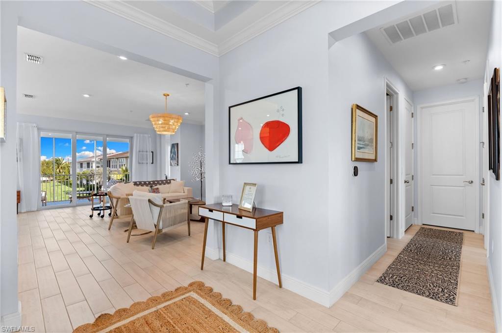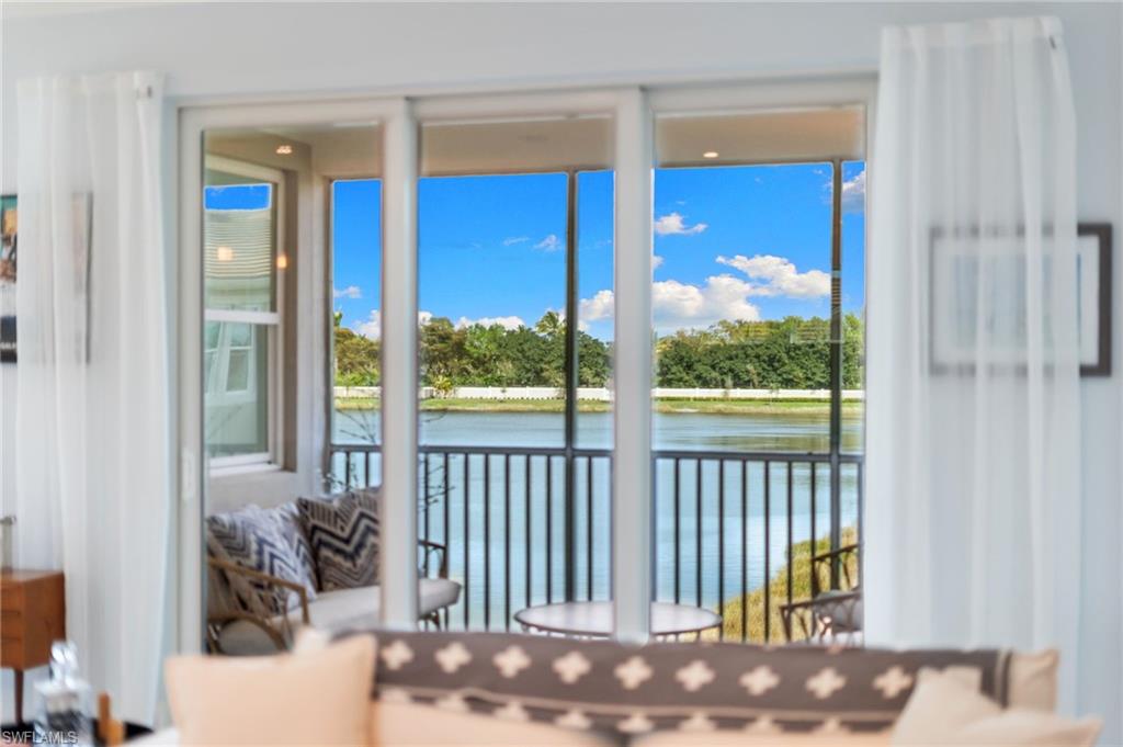 Nestled along the waters of the community's largest lake, this home is the perfect retreat for those seeking a balance of relaxation, convenience, and lifestyle. As the largest floor plan in the carriage homes, the Ocean Grove floor plan is coveted. This 2-bedroom + den condo is a dream for young couples, dog lovers, or part-time snowbirds looking for their Naples haven. Start your day with a stroll along the scenic walking paths or head down the boardwalk to nearby Sugden Park. Whether it’s an outing to the dog park or to grab your favorite morning beverage from Bean to Cup. The community embraces outdoor living, creating an idyllic retreat for you and your furry companion. The unit is a light-filled space that combines modern elegance with thoughtful functionality. Cool toned wood plank tile flooring flows throughout, complemented by custom organic lighting that provides a soft, inviting ambiance in every corner. The kitchen is a true showpiece, featuring sleek finishes, custom cabinetry, and both under-cabinet and top-of-cabinet ambient lighting. Perfect for creating the ideal atmosphere whether you’re hosting dinner or enjoying a quiet evening in. The den offers flexibility to design your perfect work-from-home space, while custom closets throughout the home, including file cabinet-height drawers, make staying organized effortless for remote professionals. Slide open the doors to your private balcony, where breathtaking west- and north-facing lake views set the stage for sunsets, morning coffee, or quiet moments of reflection. Whether you’re spending winters indulging in Naples’ charm or settling in full-time, this home offers an unparalleled blend of sunlight, zen finishes, and a floor plan adjustable to your needs. Your lakeside sanctuary awaits, don’t miss the chance to make it yours!