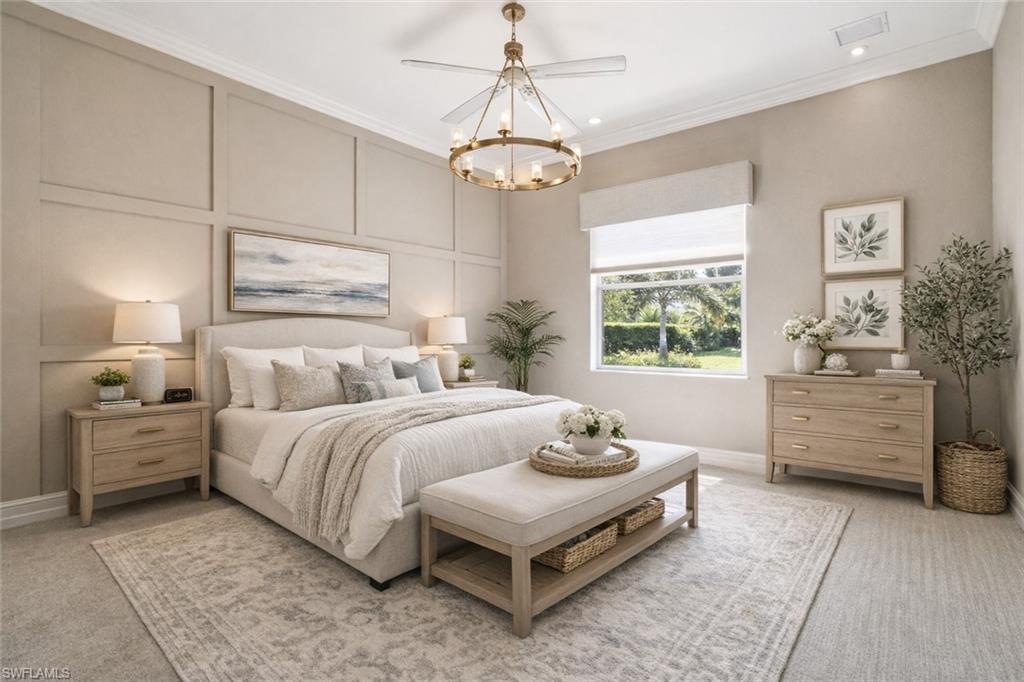Soaring high ceilings and abundant natural light immediately set the tone in this beautifully crafted 3-bedroom plus den, 3-full-bath residence built by luxury homebuilder Stock Development. Perfectly positioned on an extra-wide estate lot for enhanced privacy, this home offers a rare combination of spaciousness, architectural detail, and thoughtful design. From the grand foyer to the open-concept living areas, detailed woodworking, elegant tray ceilings, and designer lighting create a refined yet welcoming atmosphere. The layout feels expansive while maintaining warmth and functionality. The kitchen is both sophisticated and practical, featuring granite countertops, upgraded appliances, elevated finishes, and generous prep space — ideal for entertaining or everyday living. Hurricane impact doors and windows provide peace of mind, while maintaining the home’s light and bright ambiance. The primary suite serves as a true retreat, offering a spa-inspired bath and two spacious walk-in closets. Two additional bedrooms, a den and three full bathrooms provide comfort and flexibility for guests or family. A dedicated den with French doors offers the perfect home office or private lounge space, and the well-appointed laundry room includes built-ins for added convenience. Located within the exclusive, gated Black Bear Ridge, a boutique North Naples community, residents enjoy resort-style amenities including a scenic lakeside pool, clubhouse, fitness center, and playground. Even better, the location offers everyday convenience — you are within walking distance to restaurants, supermarkets, and shopping, making it easy to enjoy the best of Naples living right outside your gates.