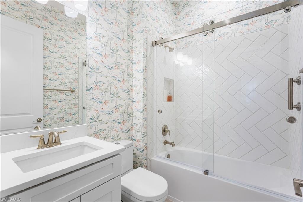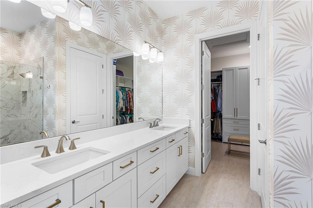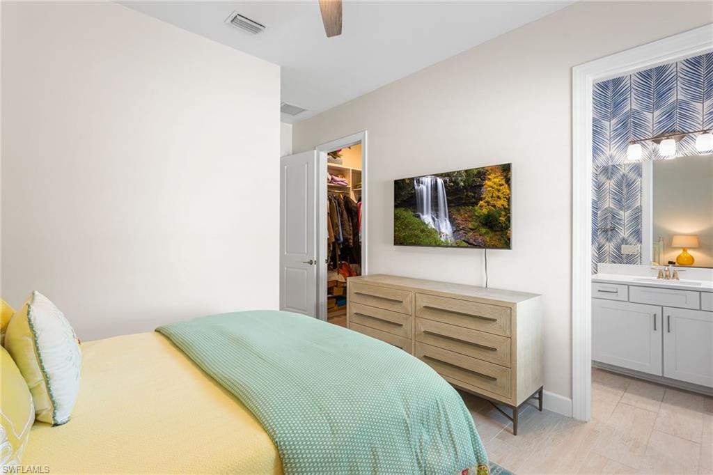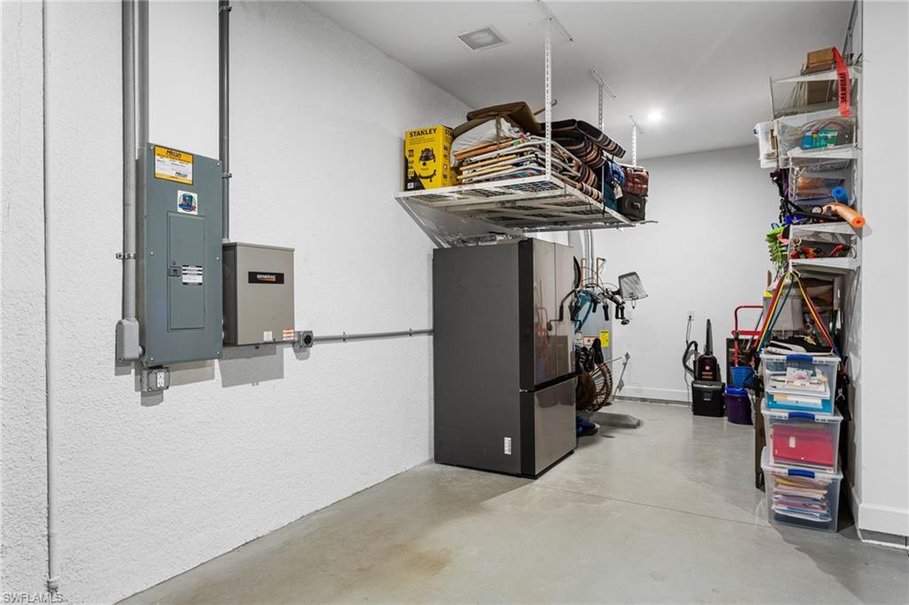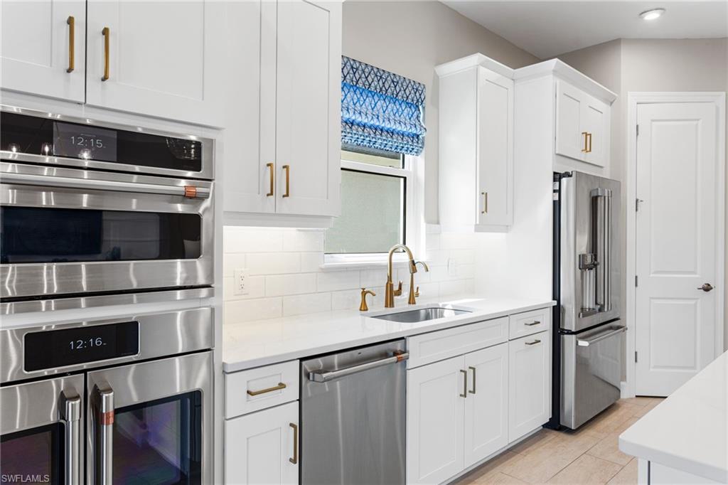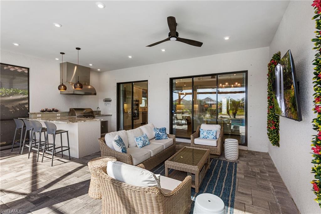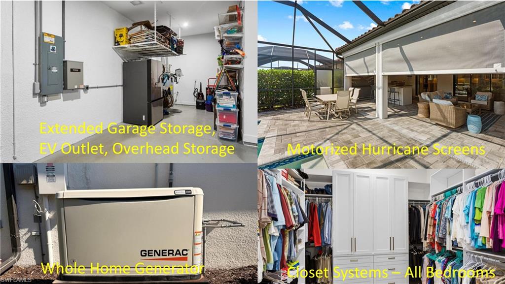 The “Better-Than-New” Lazio Advantage: Move-In Ready Luxury Without the Wait Why wait 12+ months for a base model when you can own a professionally decorated, move-in-ready Lazio today—without the post-closing projects? This highly sought-after floorplan (3 BR + Den, 3 BA, 2,400+ sq ft) offers coveted South East exposure and sits on an extraordinary 150-foot deep homesite—a premium oversized lot, along with an extended tandem garage (ideal for a golf cart/storage) and a bay window in the primary bedroom, all of which the builder NO LONGER offers. Ideally positioned away from Tamiami Trail noise and ongoing construction, you can skip the dust and enjoy major upgrades already completed, including impact windows, a whole-house Generac generator (2025), and three motorized hurricane shades on the lanai. Inside, a decorative glass front door opens to 10-foot ceilings and high-end tile flooring with the look of natural wood. The chef’s kitchen is the heart of the home, featuring an extended gourmet layout, rare gas range, double ovens, a premium GE Café appliance package, and a wine fridge, plus a dedicated bar area perfect for cocktails or an espresso station. Designer lighting, upgraded cabinetry, and tasteful finishes—including Serena & Lily wallpaper—create a refined, elevated feel. The home is truly “life-ready” with whole-house interior paint (2025), custom closet systems in all bedrooms and the laundry room, custom designer drapes, and new plantation shutters (2025). Outdoor living is private and impressive with an extended covered lanai offering ample seating, a large TV area, and space for entertaining. Unlike many new construction homesites, the backyard is fully finished with professional landscaping: privacy hedges and mature trees, creating a secluded tropical retreat. The gas-heated pool and spa are showcased inside a picture-frame lanai enclosure for unobstructed lake views. The outdoor kitchen is a true entertaining station with an extended peninsula (seating for 4) plus gas grill, hood, refrigerator, and separate ice maker/freezer. The garage includes an EV charging outlet and professional storage racks. Key maintenance is already handled, with driveway and pool pavers cleaned and sealed (2026). Modern touches include a new security alarm system (2025) and frameless barn-door tub sliders (2026). Esplanade by the Islands is an amenities-first community featuring a resort-style pool, Bahama Bar for poolside dining, a full-service spa, fitness center, and pickleball, tennis, and bocce—supported by a dedicated lifestyle team. The Venue for cards, pool, and fun activities just opened and the Culinary Center opens soon with fine dining, wine, tasting, pizza restaurant, and Demo kitchen.Perfectly located in the South/East Naples corridor, you’re minutes to Gulf beaches, 5th Avenue South shopping and dining, and Marco Island. Secure the “Better-Than-New” advantage today—upgraded, finished, and ready for immediate enjoyment.