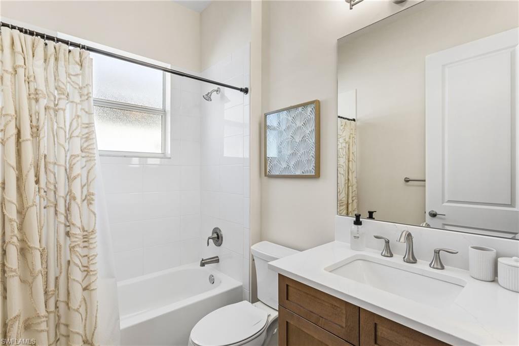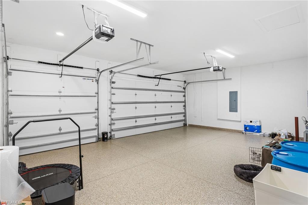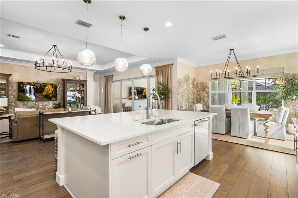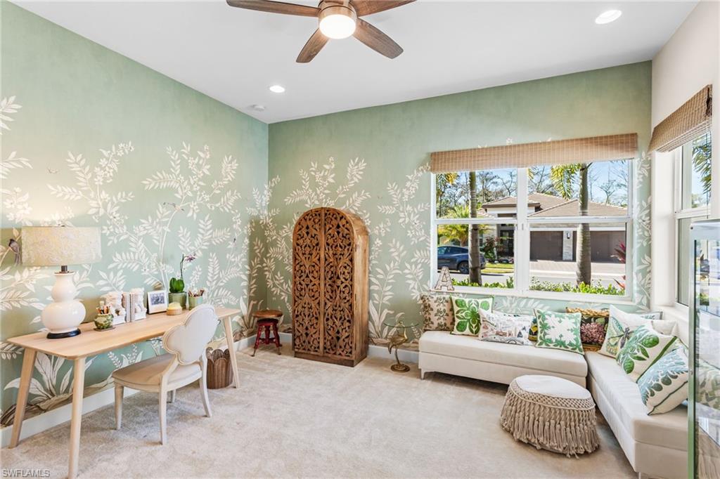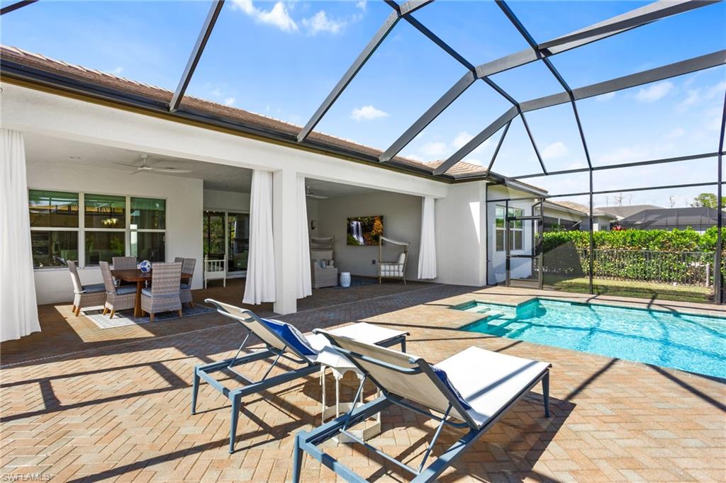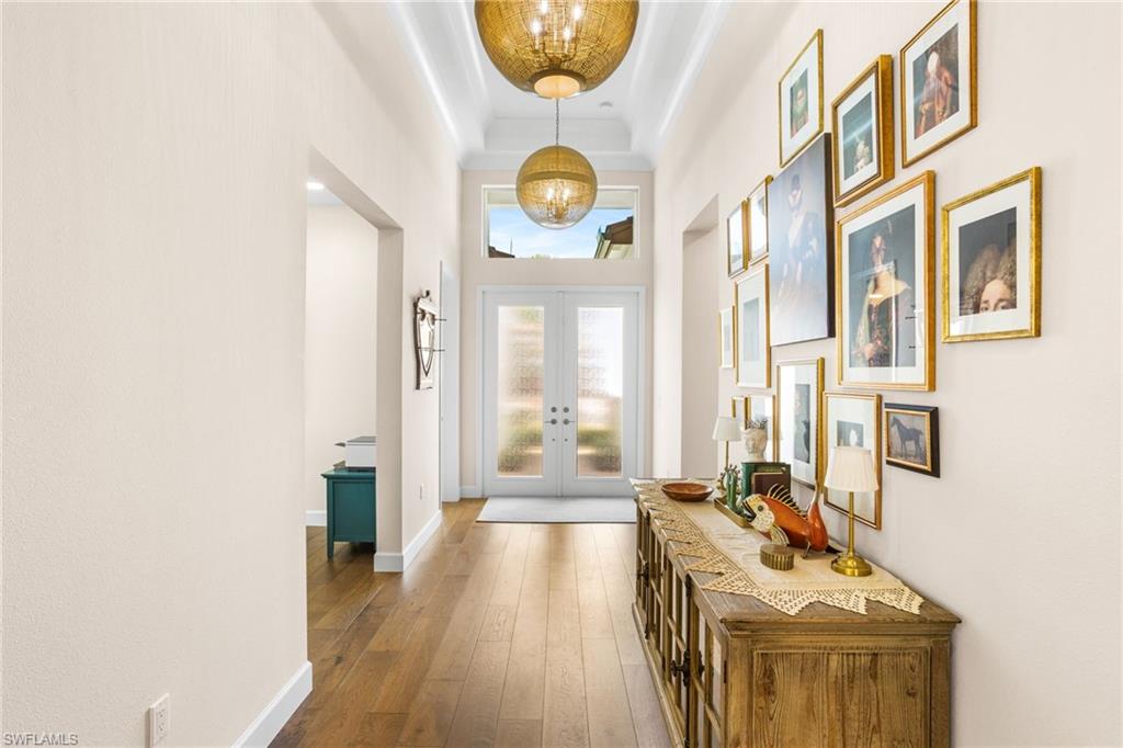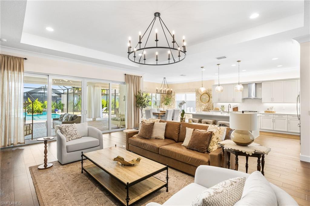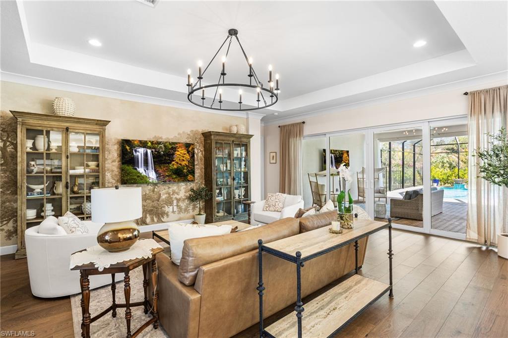 This 2023 Sunrise model delivers the Florida lifestyle the way it’s meant to be lived—move-in ready, beautifully upgraded, and built around true indoor-outdoor living. Meticulously maintained, impeccably clean, and genuinely feels brand new. The showstopper is the extra-large outdoor living space. A huge extended covered lanai and expansive pool deck create the perfect setting for outdoor dining, entertaining, or quiet morning coffee. The heated saltwater pool is accented by two elegant spillover fountain bowls, adding the sound and sparkle of flowing water for a true resort-style feel. The lanai is also pre-plumbed for an outdoor kitchen, making it easy to finish your dream backyard exactly the way you want it. Inside, the home shines with an elevated level of finish: impact windows and doors, hardwood flooring, crown molding, custom wallpaper, and designer window treatments throughout. Comfort and quality extend beyond what you see, with the added benefit of a whole home air purifier and a Culligan water system for cleaner air and better-tasting water every day. Storage has been thoughtfully upgraded, with custom closets in the bedrooms and primary suite plus additional laundry room cabinetry to keep everything organized and out of sight. The 3-car garage is a rare and valuable bonus—complete with an epoxy floor and plenty of room for vehicles, a golf cart, and all the extras that come with the Naples lifestyle. The primary suite is a true retreat, anchored by a spa-like bath featuring an oversized frameless-glass shower, a separate soaking tub, and beautiful windows that fill the space with natural light—an ideal start and finish to your day. As the most popular home in the Coastal Collection, the Sunrise is loved for its open, livable design—and this home adds even more curb appeal with an upgraded front elevation and corner wraparound windows in the front bedroom that bring in abundant natural light. All of this is located in Valencia Trails, one of Naples’ most sought-after 55+ communities, where resort-style amenities make every day feel like a vacation: a stunning clubhouse, resort pool, lap pool, resistance pool, fitness center, racquet sports, walking trails, and a full calendar of clubs, dining, and social events. Agent note: Please add community amenity photos to the MLS listing (clubhouse/pools/fitness/racquet sports) to match what buyers are seeing in competing Valencia Trails listings. If you’re looking for a home that’s already upgraded, already perfected, and ready to enjoy from day one—this is it.