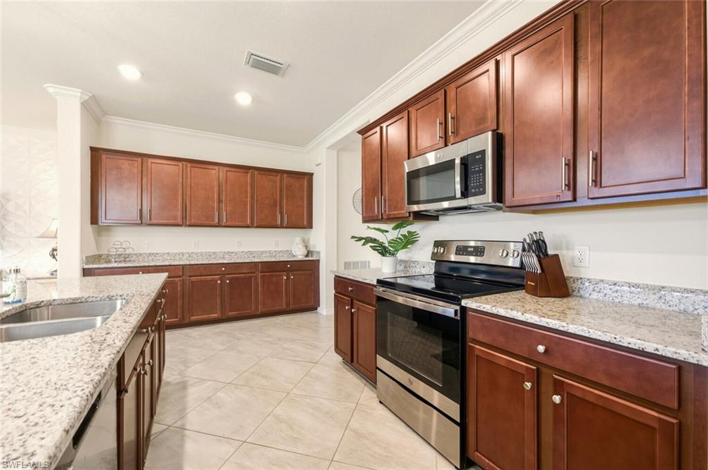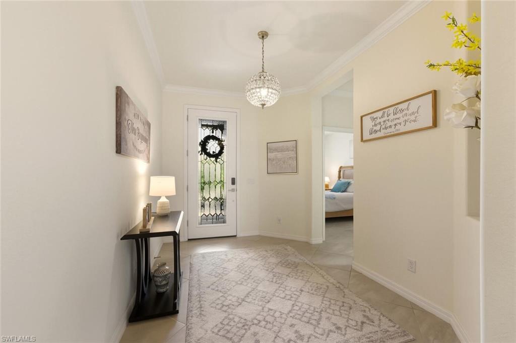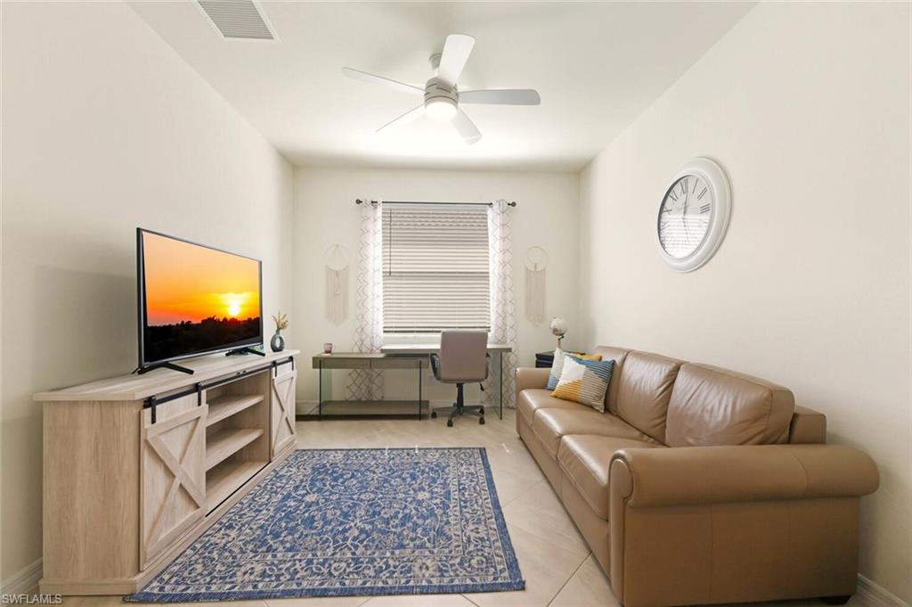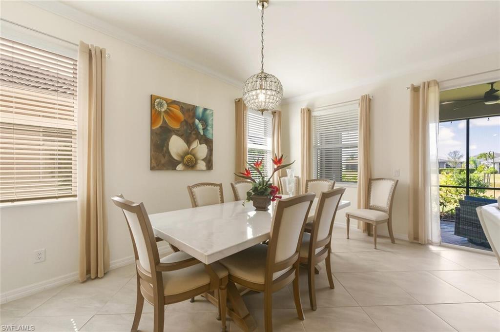 PANORAMIC SUNSETS, SPARKLING WATER VIEWS & TURNKEY FURNISHED - This is your opportunity to have it all! Welcome to this highly sought after, Lennar built, Marsala floor plan featuring 3 bedrooms + den, 3 bathrooms, beautiful turnkey furnishings and ready to move right into! This stunning home allows you to effortlessly enjoy your little piece of paradise by simply packing your bags and arriving to your new home! The elegant foyer space leaves an immediate impression as you enter the home and the spacious hallway leading into the great room provides an element of separation for residents or guests in the guest-rooms or den. The hallway opens into a gorgeous great room, where the kitchen, featuring three walls of beautiful cabinetry, an expansive quartz counter top island, walk-in pantry and stainless steel appliances give way to the impressive living and dining space, featuring an attractive accent wall with electric fireplace. Step into the spacious primary suite, a haven of warm sunlit views, two walk-in closets, a soaking bathtub and separate shower. Orange Blossom Ranch is also home to two resort-style pools, tennis and basketball courts, a modern fitness center, volleyball, bocce, a playground, and plenty of other recreational opportunities, including Big Corkscrew Island Regional Park, which is just a short drive away. A recreational enthusiast's delight! The surrounding area offers convenient access to A-rated schools, shopping, dining, and the immaculate beaches and attractions of Southwest Florida.
