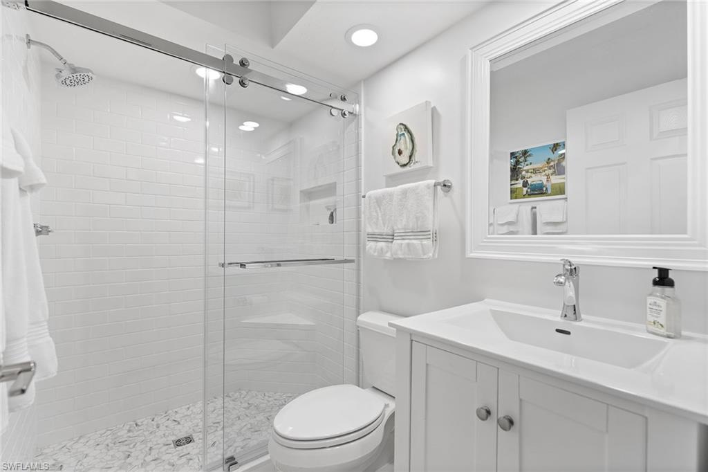 Impeccably in one of Pelican Bay’s desirable villa enclaves, Bay Villas, this beautifully renovated single-level residence offers refined coastal living with seamless indoor-outdoor flow. The three-bedroom, two-bath home features a bright open floor plan, updated flooring, fresh finishes and clean architectural lines throughout. The updated kitchen and baths reflect a crisp coastal contemporary aesthetic, blending style and livability with thoughtful design. Custom closet systems by California Closets and additional built-in freestanding cabinetry enhance function and storage. French doors and expansive glass invite natural light and open to a private tropical setting with a sparkling pool and tranquil patio designed for relaxed afternoons and effortless entertaining. Life in Pelican Bay extends well beyond the front door. Residents enjoy exclusive access to private beachfront dining, attended beach services, tennis and fitness facilities, and miles of scenic pathways that wind from your neighborhood to the Gulf. Spend mornings walking the shoreline, afternoons at the beach club, and evenings enjoying the best of Naples just minutes away at Waterside Shops and Artis–Naples.